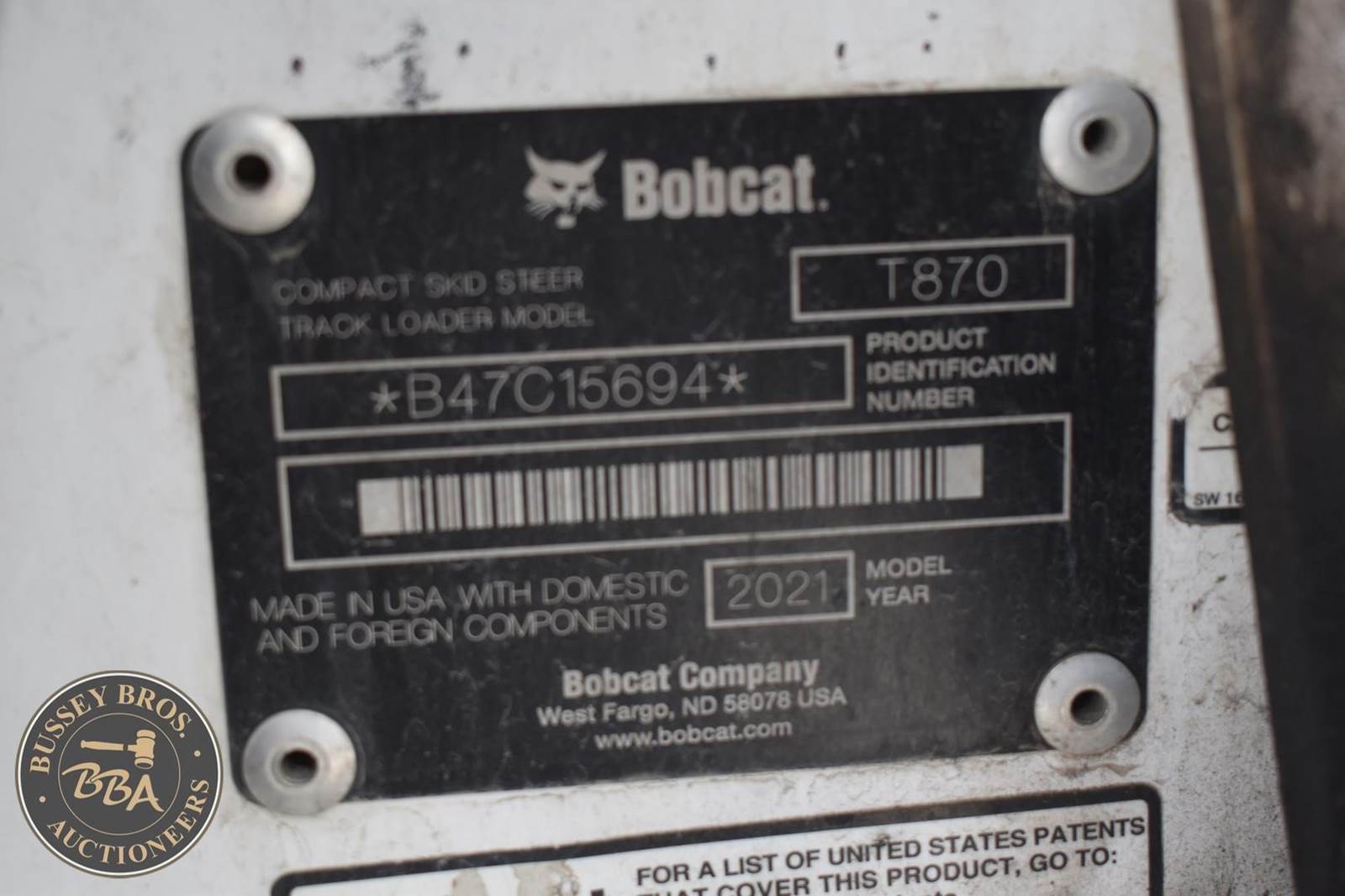 2021 BOBCAT T870 SKID STEER- 3765HR. 2 speed, Hi Flow hydraulics, selectable joystick controls, R/C Ready, hydraulic quick attach, rubber tracks, automatic ride control, Runs and Operates, SN#B47C15694