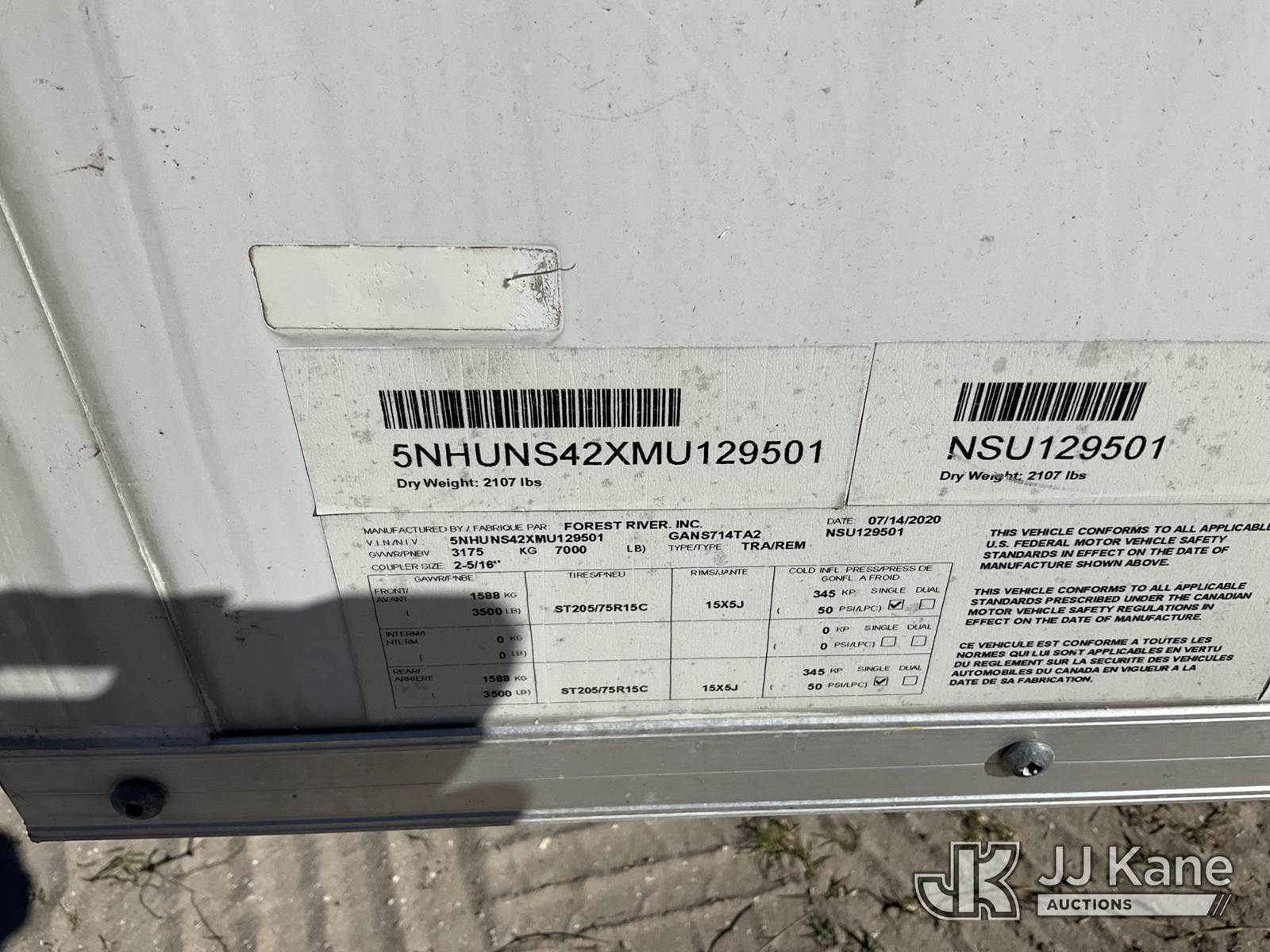 2021 Cargo Mate GANS714TA2 T/A Enclosed Cargo Trailer, with fold down rear door & side entry door, Pinellas County BOCC Unit (Moves)(Paint Damage) This is a Titled Item NOTE: This unit is being sold AS IS/WHERE IS via Timed Auction and is located in Thonotosassa, FL. Inspection & preview days for this unit are the 2 business days prior to the first day of items closing for this auction, item is located at 11720 N US 301 Thonotosassa, Fl 33592 and hours of operations are 8a-4p. For pre-sale questions, please contact Office Staff @ (813) 986-2485. (Buyer is responsible for removal. Assistance by consignor or JJ Kane Auctions is not assured.)