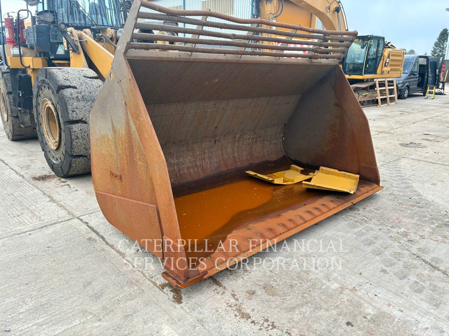 Ulrich bucket. Some damage to spill guard rails.