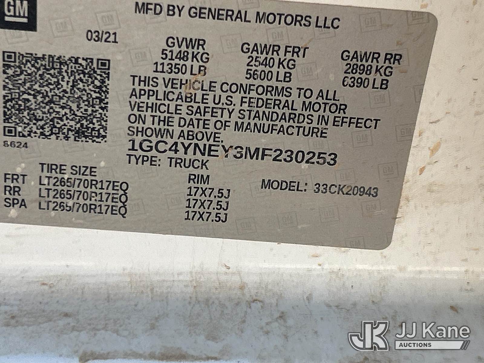 2021 Chevrolet Silverado 2500HD 4x4 Crew-Cab Pickup Truck, 6.6L diesel, Auto, A/C, (128,381 miles) (Not Running, Condition Unknown, Body Damage) (Seller States: Bad Fuel Pump) This is a Titled Item NOTE: This unit is being sold AS IS/WHERE IS via Timed Auction and is located in Midland, TX. For pre-sale questions please call EJ Brown at (915) 341-2565. (Buyer is responsible for removal. Assistance by consignor or JJ Kane Auctions is not assured.)