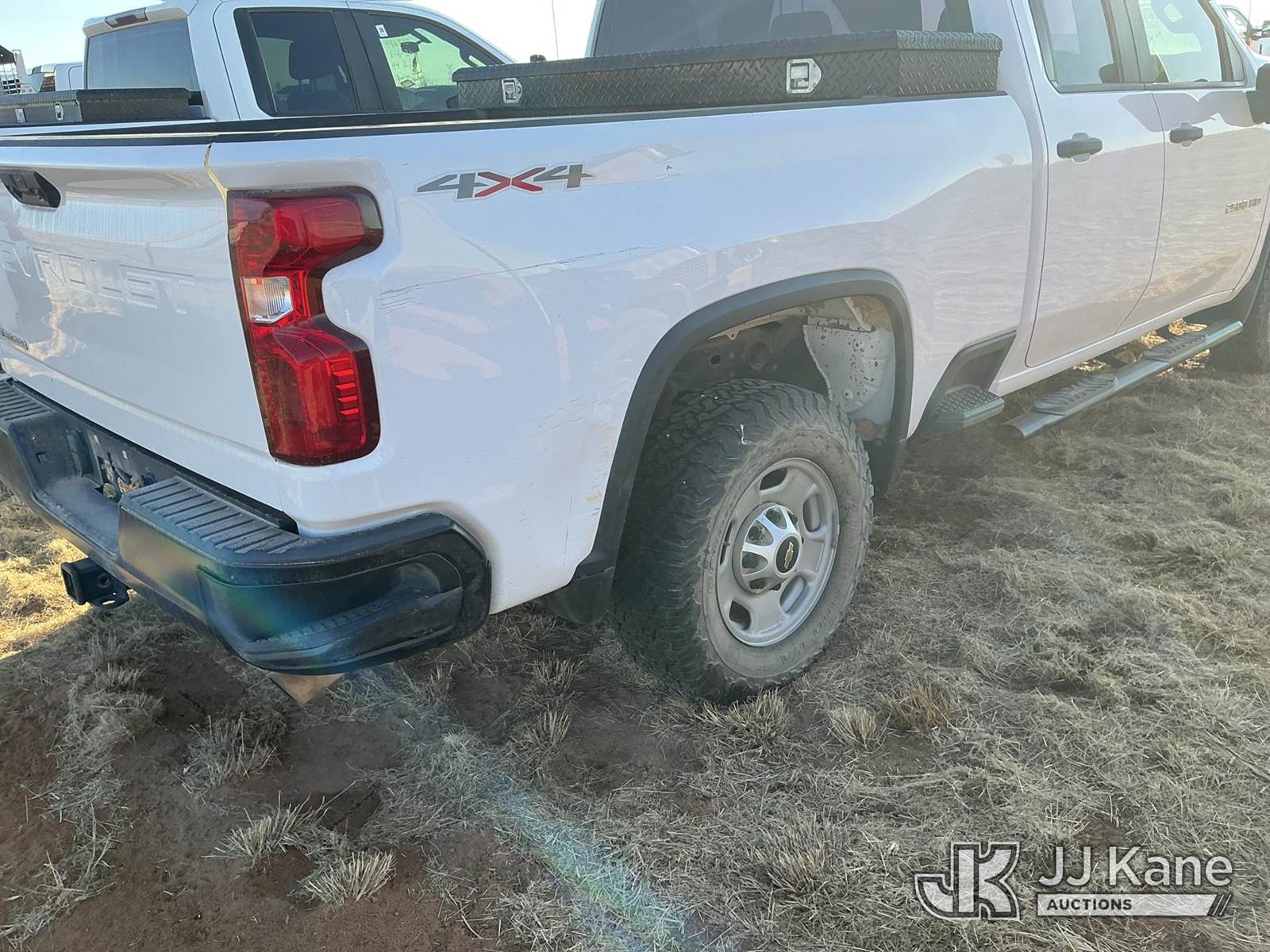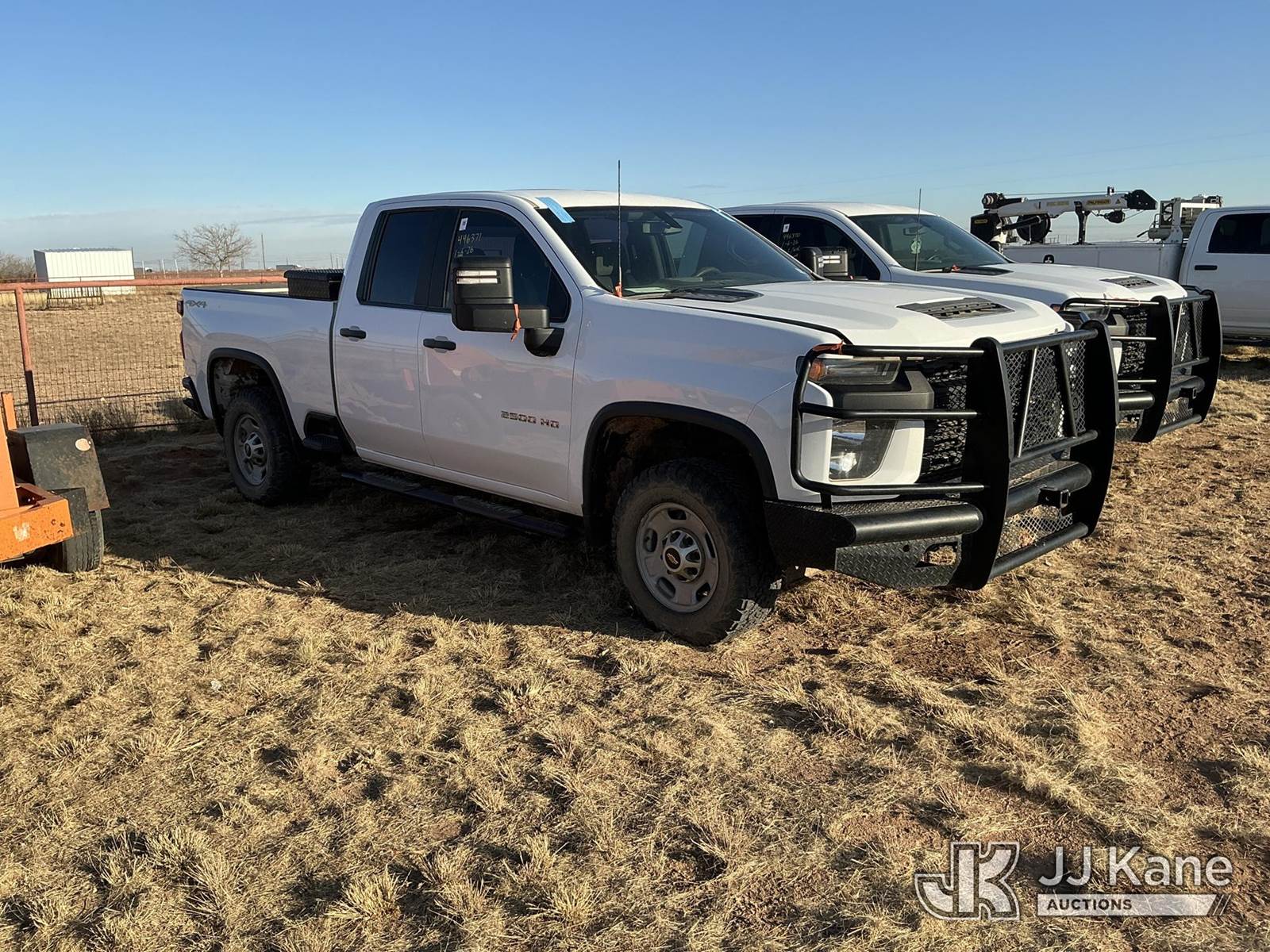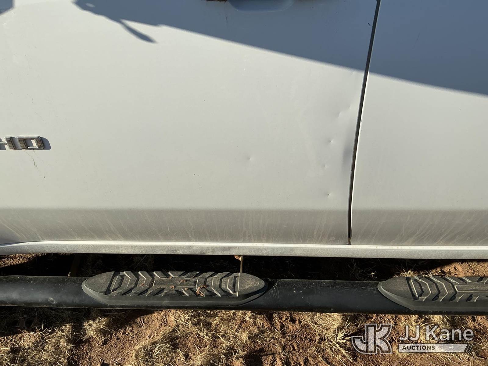 2021 Chevrolet Silverado 2500HD Extended-Cab Pickup Truck, 6.6L V8 16V OHV, Gas 6-Speed Automatic, 4wd, with Front Bumper Brush Guard, Bed Mounted Toolbox , True Mileage Unknown (Not Running, Condition Unknown, No Battery, Passenger Mirror Assembly Exterior Is Damaged, Right Rear Body Damage Dents And Scratches, Both Left And Right Side of Rear Bumper Is Damaged, Driver Side Body Damage Dents On Both Doors) This is a Titled Item NOTE: This unit is being sold AS IS/WHERE IS via Timed Auction and is located in Stanton, TX. For more information & removal arrangements please contact James Wilmes @ 432-697-8697 (Buyer is responsible for removal. Assistance by consignor or JJ Kane Auctions is not assured.)