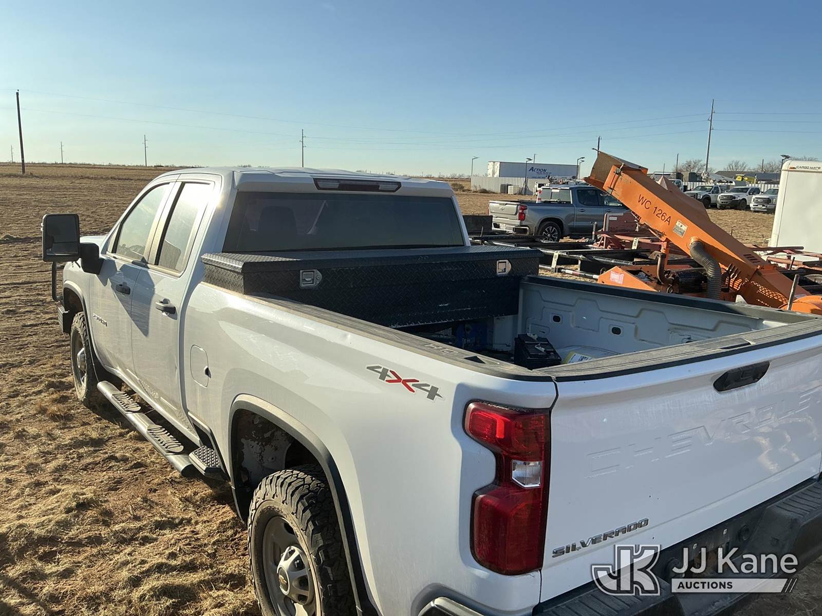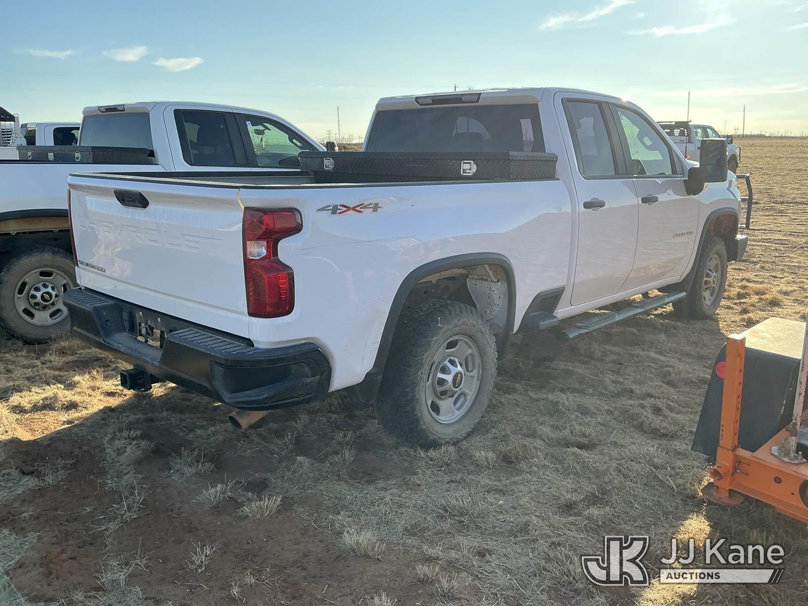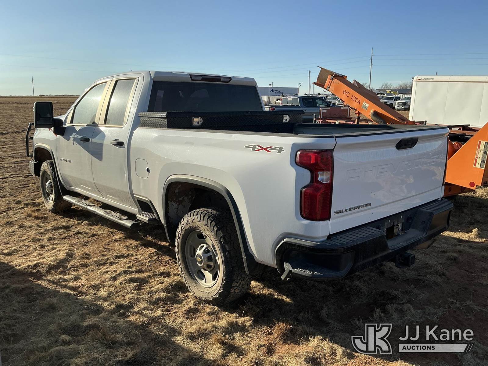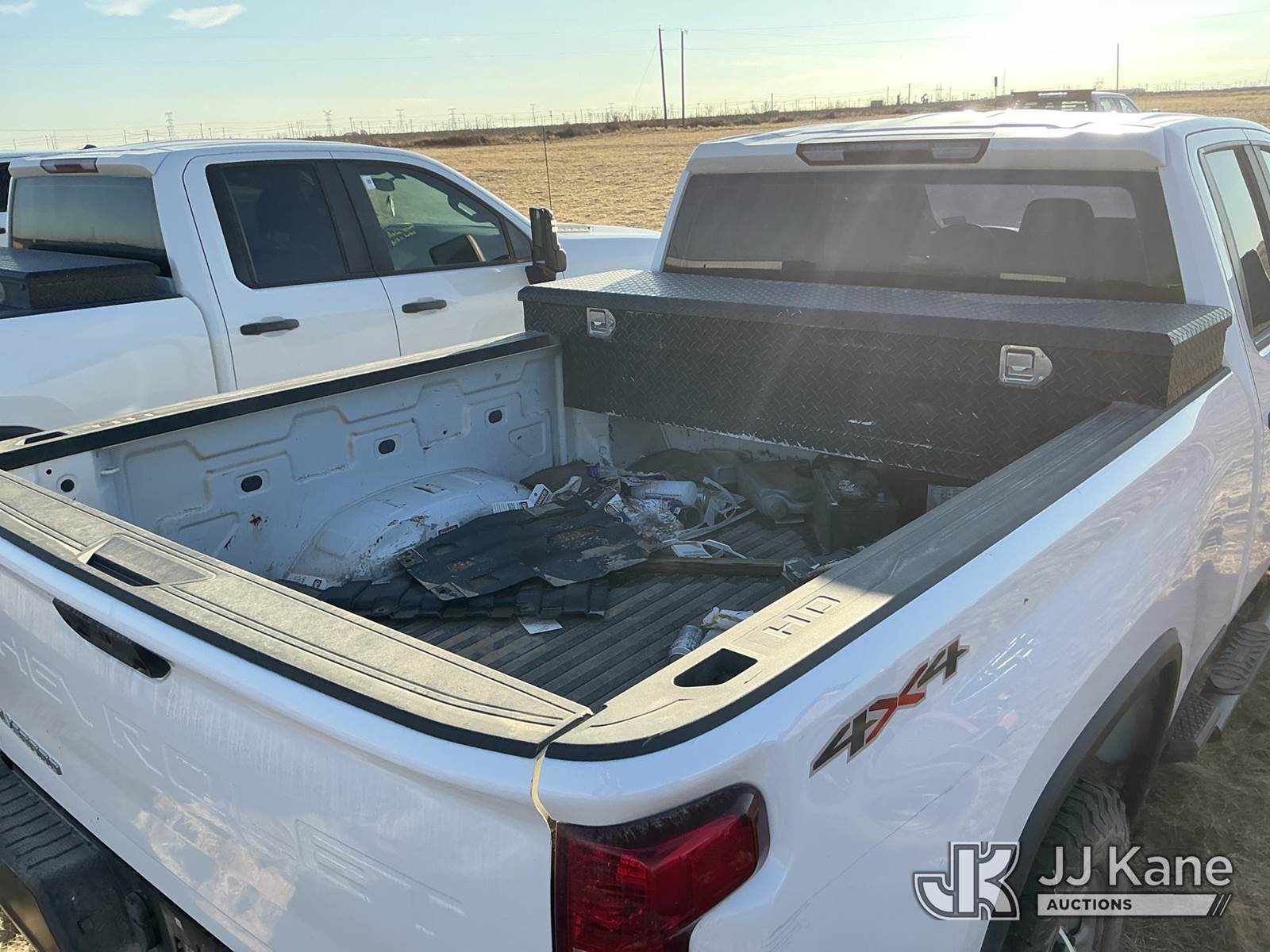 2021 Chevrolet Silverado 2500HD Extended-Cab Pickup Truck, 6.6L V8 16V OHV, Gas 6-Speed Automatic, 4wd, with Front Bumper Brush Guard, Bed Mounted Toolbox , True Mileage Unknown (Not Running, Condition Unknown, No Battery, Passenger Mirror Assembly Exterior Is Damaged, Right Rear Body Damage Dents And Scratches, Both Left And Right Side of Rear Bumper Is Damaged, Driver Side Body Damage Dents On Both Doors) This is a Titled Item NOTE: This unit is being sold AS IS/WHERE IS via Timed Auction and is located in Stanton, TX. For more information & removal arrangements please contact James Wilmes @ 432-697-8697 (Buyer is responsible for removal. Assistance by consignor or JJ Kane Auctions is not assured.)