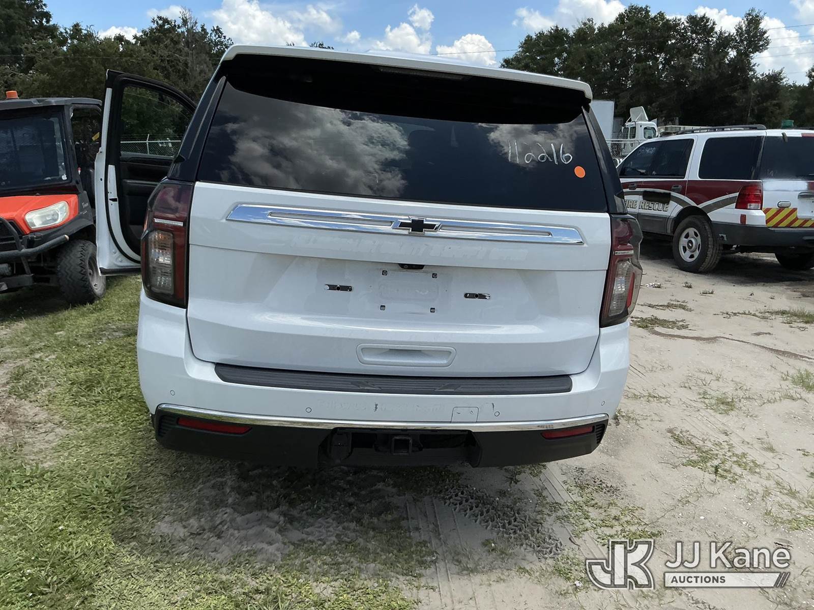 2021 Chevrolet Tahoe 4-Door Sport Utility Vehicle, 8-cyl gas, Auto, A/C, (31,200 miles) Hillsborough County Sheriff's Office Unit, Former Police Vehicle (Runs & Moves) (Paint & Body Damage) This is a Titled Item NOTE: This unit is being sold AS IS/WHERE IS via Timed Auction and is located in Thonotosassa, FL. For more information & removal arrangements please contact Office Staff @ 813-986-2485. (Buyer is responsible for removal. Assistance by consignor or JJ Kane Auctioneers is not assured.)