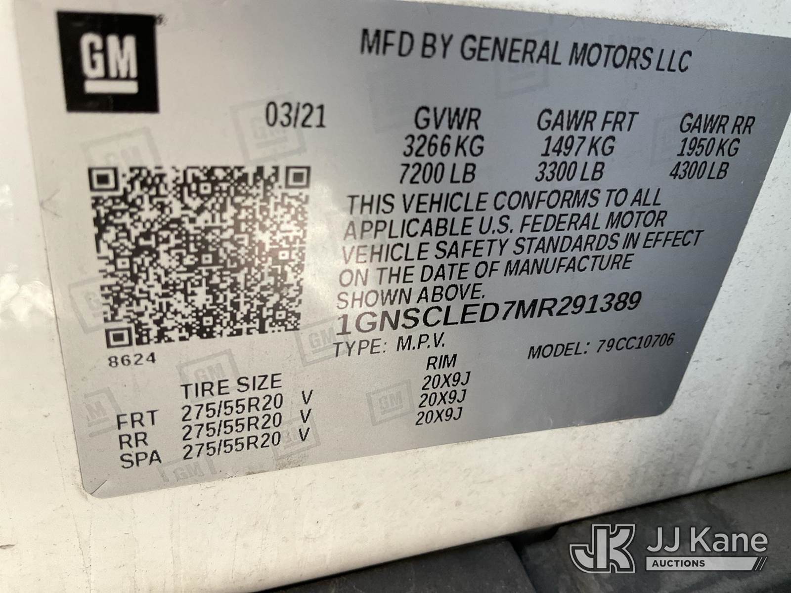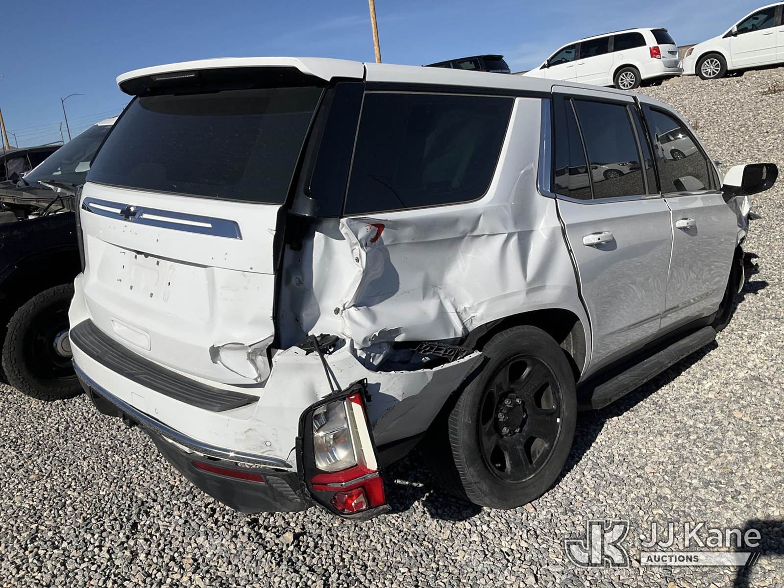 2021 Chevrolet Tahoe Sport Utility Vehicle, 8-cyl gas, RWD, 10-Speed Automatic, A/C, True Mileage Unknown (Not Running, Condition Unknown, Wrecked, Airbags Deployed) This is a Titled Item NOTE: This unit is being sold AS IS/WHERE IS via Timed Auction and is located in Las Vegas, NV. Inspection & preview days for this unit are the 2 business days prior to the first day of items closing for this auction, item is located at 14655 Grand Valley Pkwy Las Vegas, NV 89165 and hours of operations are 8a-4p. Titles executed exactly as bidder registered. Ensure your name and/or business name and address in JJ Kane and/or ProxiBid is correct before bidding. For pre-sale questions, please contact Office Staff @ (801) 519-0123 and provide sale date and lot number. Las Vegas Dealer License Number DLR000053086 / OHV000053094. (Buyer is responsible for removal. Assistance by consignor or JJ Kane Auctions is not assured.)
