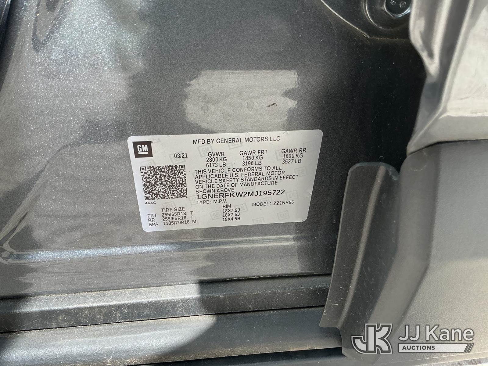 2021 Chevrolet Traverse 4-Door Sport Utility Vehicle, 3.6L V6 DOHC 24V gas, FWD, 9-Speed Automatic, A/C, (7,119 miles) Hillsborough County Sheriff's Office Unit (Runs & Moves) (FL Residents Purchasing Titled Items – tax, title & registration fees will be collected at the maximum rate of $400.00 under 25,999 and $800.00 for Over 26,000 and $250.00 trailers – Proof of insurance is mandatory; Out of State Residents Purchasing Title Items – tax will be collected based upon your state rate.) This is a Titled Item NOTE: This unit is being sold AS IS/WHERE IS via Timed Auction and is located in Thonotosassa, FL. Inspection & preview days for this unit are the 2 business days prior to the first day of items closing for this auction, item is located at 11720 N US 301 Thonotosassa, Fl 33592 and hours of operations are 8a-4p. For pre-sale questions, please contact Office Staff @ (813) 986-2485. (Buyer is responsible for removal. Assistance by consignor or JJ Kane Auctions is not assured.)