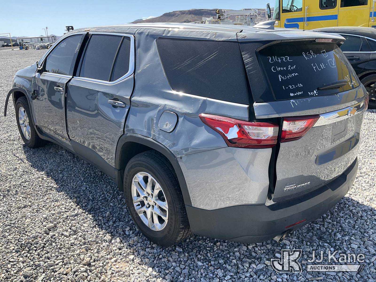 2021 Chevrolet Traverse Sport Utility Vehicle, 6-cyl gas, FWD, Auto, A/C, True Mileage Unknown (Wrecked, Air Bags Deployed, Not Running, Condition Unknown, No Key) This is a Titled Item NOTE: This unit is being sold AS IS/WHERE IS via Timed Auction and is located in Las Vegas, NV. Inspection & preview days for this unit are the 2 business days prior to the first day of items closing for this auction, item is located at 14655 Grand Valley Pkwy Las Vegas, NV 89165 and hours of operations are 8a-4p. Titles executed exactly as bidder registered. Ensure your name and/or business name and address in JJ Kane and/or ProxiBid is correct before bidding. For pre-sale questions, please contact Office Staff @ (801) 519-0123 and provide sale date and lot number. Las Vegas Dealer License Number DLR000053086 / OHV000053094. (Buyer is responsible for removal. Assistance by consignor or JJ Kane Auctions is not assured.)