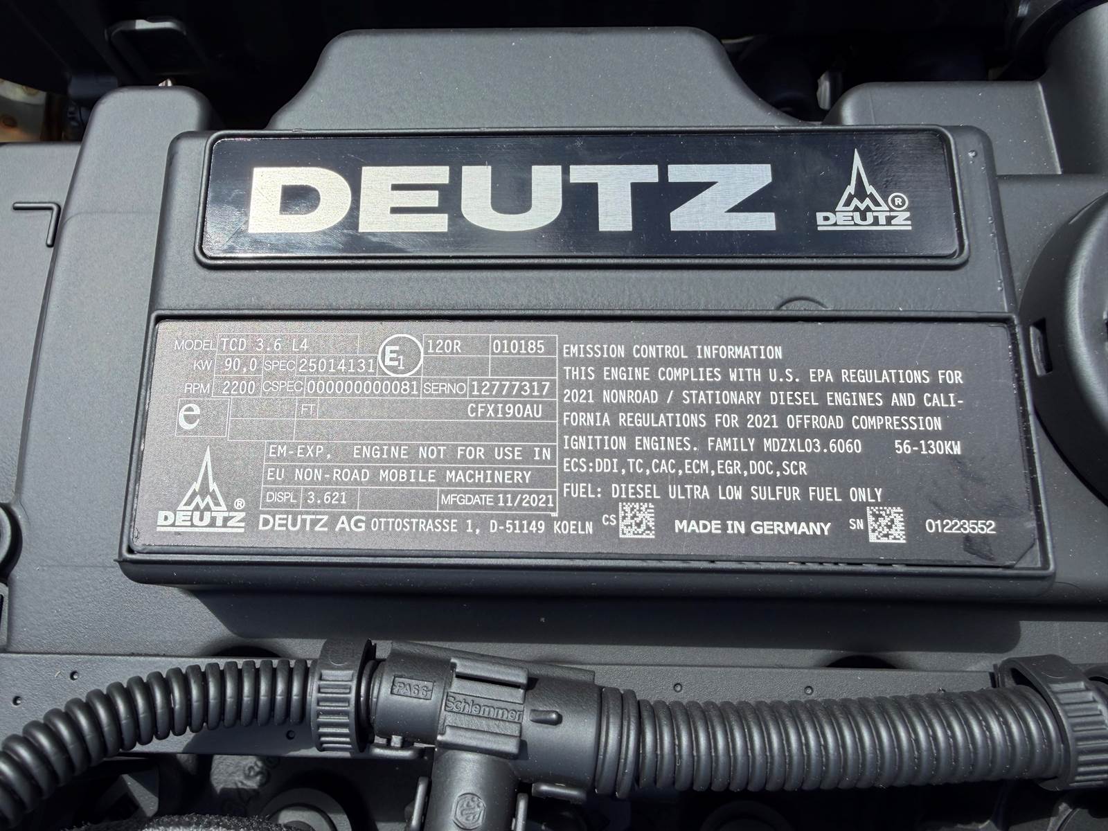 2021 Deutz TCD3.6L4 Engine