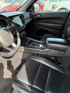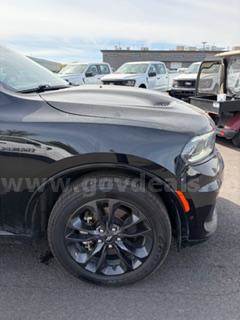 2021 DODGE DURANGO R/T 4 DOOR AWD SUV. UNLEADED -- BLACK -- 110,732 MILES. LEATHER UPHOLSTERY - 2ND ROW BUCKET SEATS. DINGS - SCRATCHES - LIGHTLY STAINED 2ND ROW - INTERIOR IN GOOD CONDITION. STALL 9. SOLD AS IS, WHERE IS.