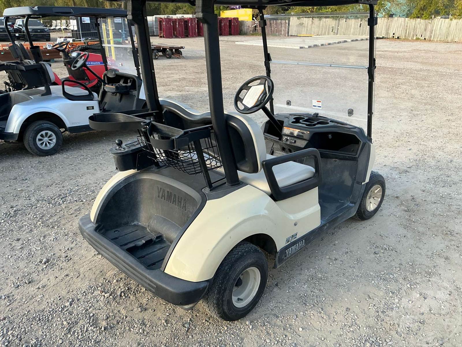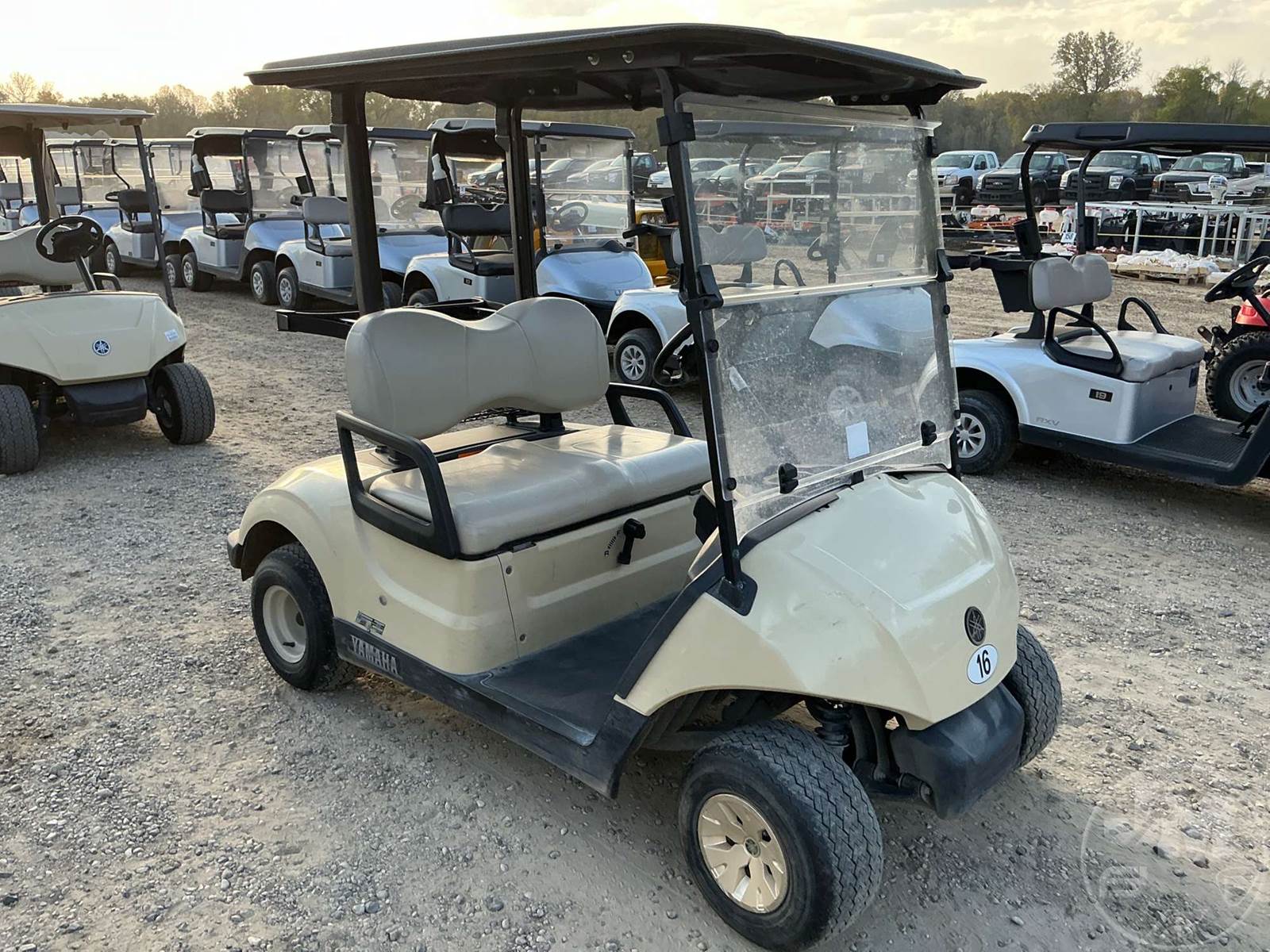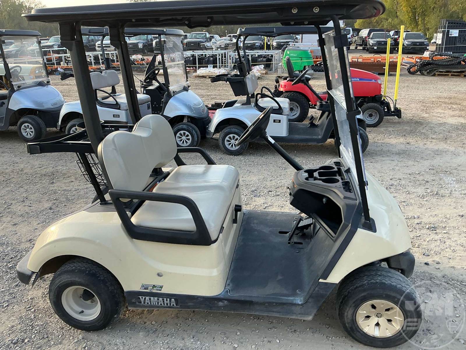 YAMAHA GOLF CART, GAS, TAN, 2 SEAT, CANOPY, WINDSHIELD, BALL WASHER