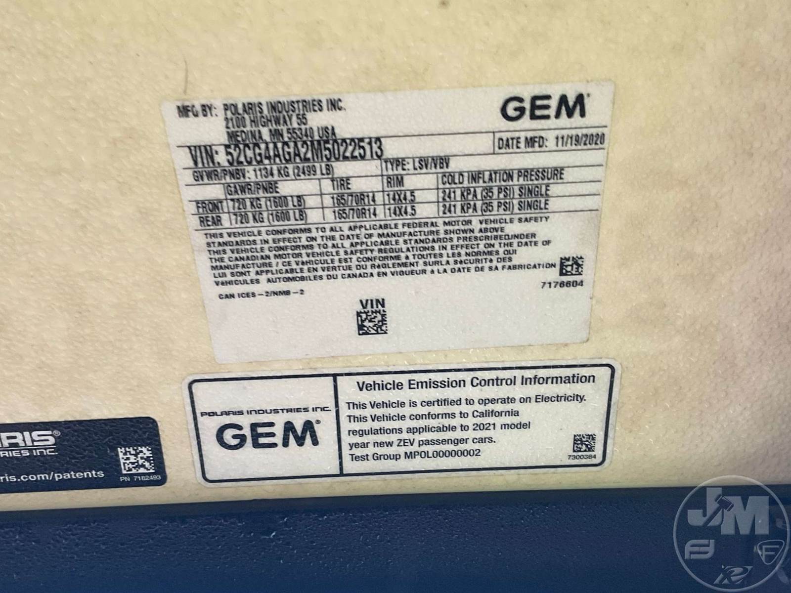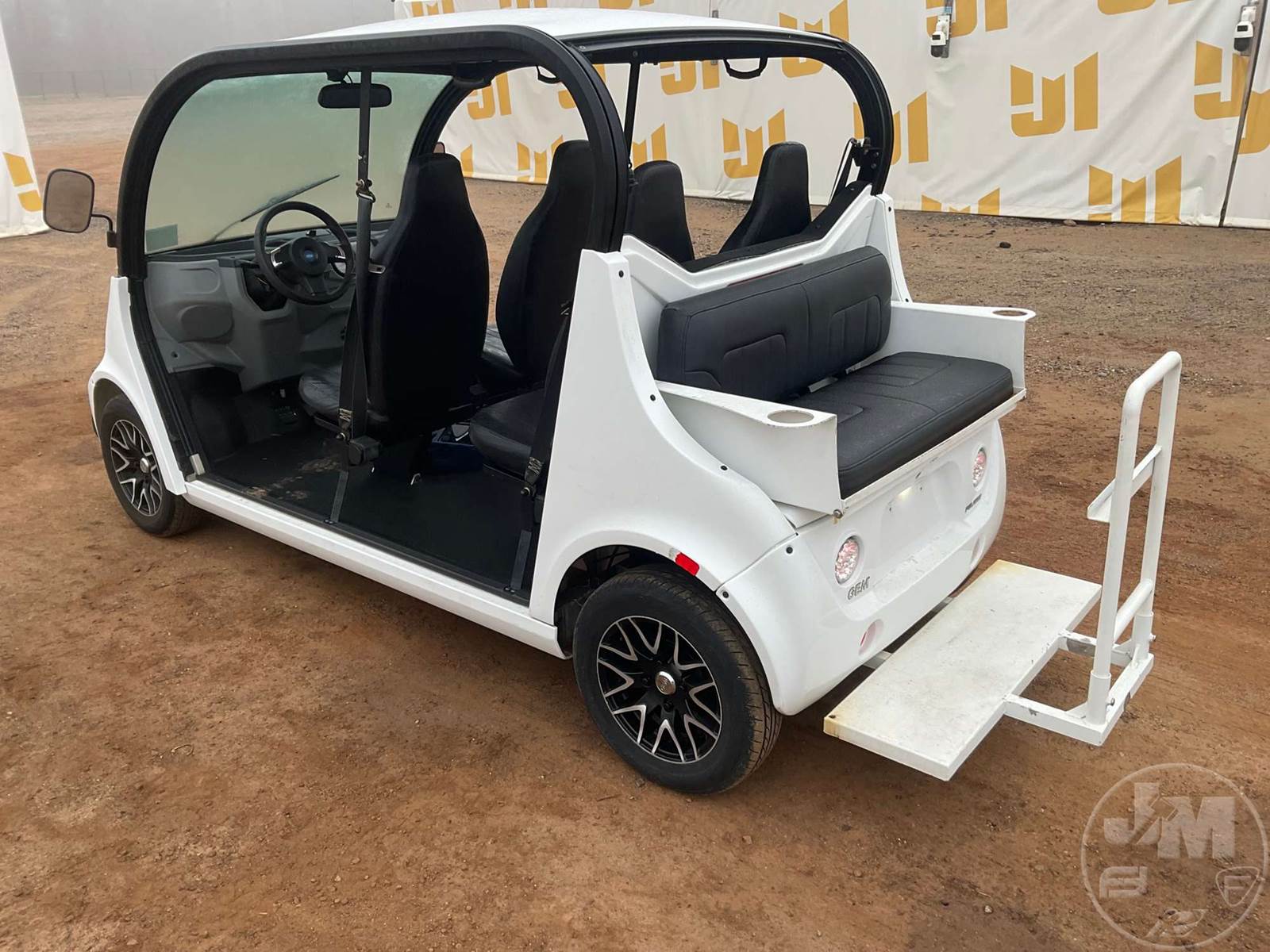 GEM GOLF CART, ELECTRIC, WHITE, 6 SEAT, WINDSHIELD, LIGHTS, ON BOARD CHARGER, DIRECT FWD, 48V AC INDUCTION MOTOR WITH 6.7HP, DELIVERING A TOP SPEED OF 25 MPH, POWER IS SUPPLIED BY A BANK OF EIGHT 6V, 224AH MAINTENANCE-FREE BATTERIES, ALL-ALUMINUM CHASSIS AND SUPERSTRUCTURE, SAFETY FEATURES INCLUDE A CERTIFIED OCCUPANT PROTECTION SYSTEM, 3-POINT SEAT BELTS, & AN AUTOMOTIVE GLASS WS, ***CHARGING CORD LOCATED AT CHECKOUT***