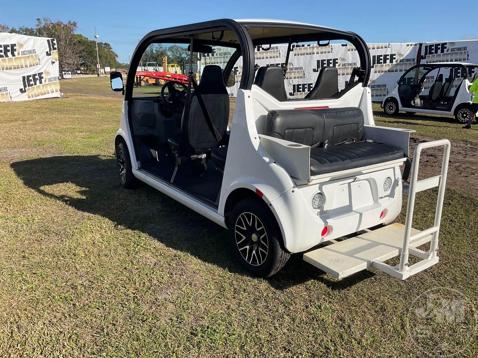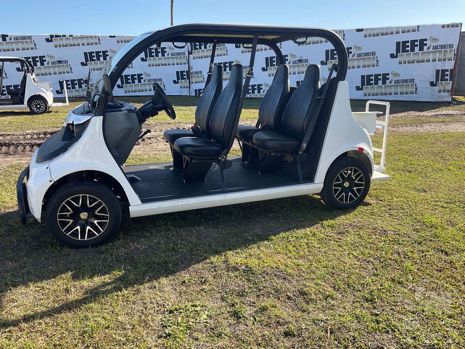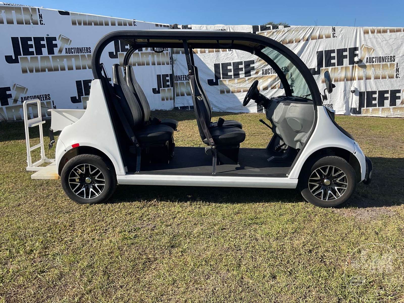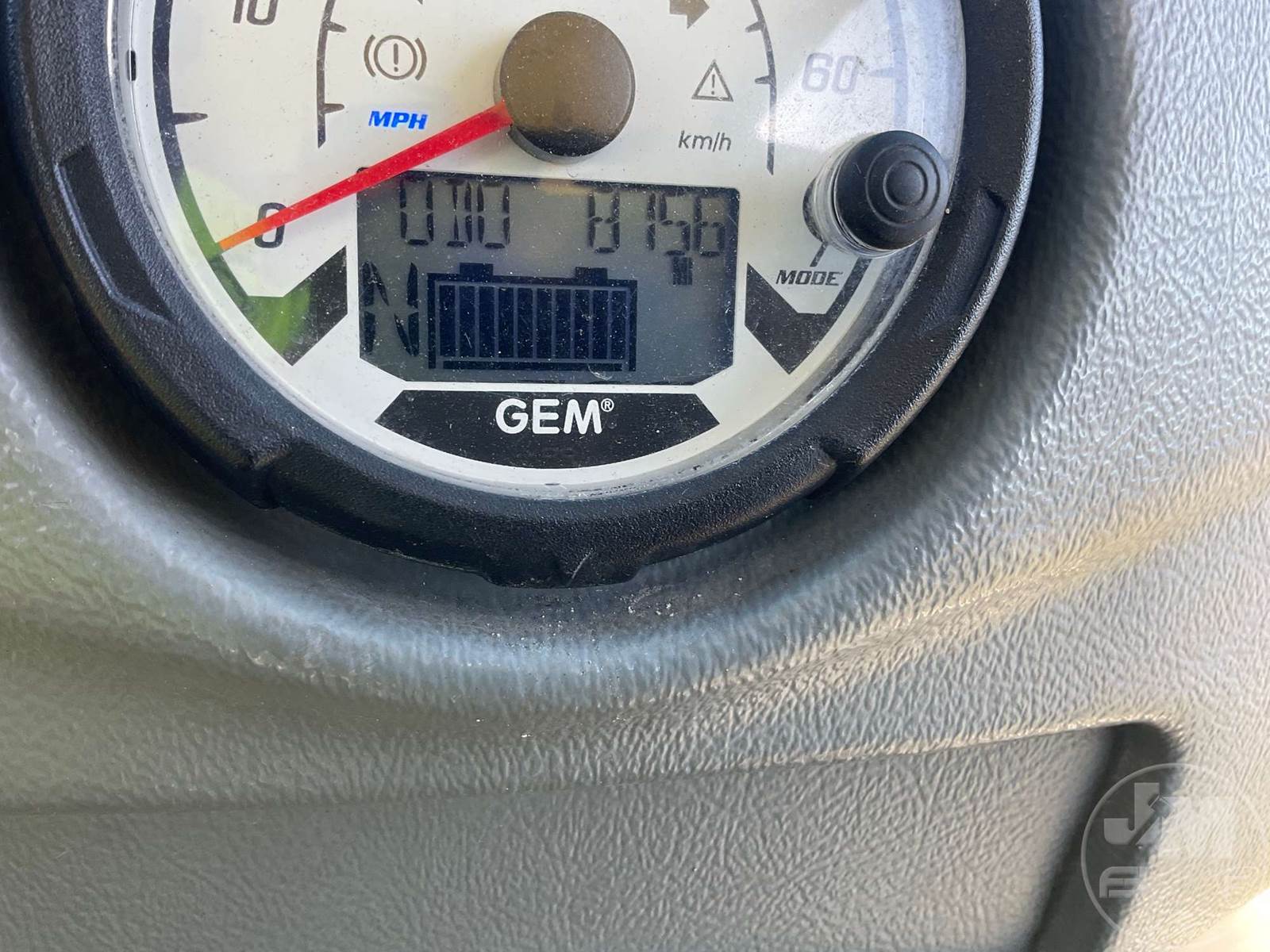 GEM GOLF CART, ELECTRIC, WHITE, 6 SEAT, CANOPY, WINDSHIELD, LIGHTS, ON BOARD CHARGER, DIRECT FWD, 48V AC INDUCTION MOTOR WITH 6.7HP, DELIVERING A TOP SPEED OF 25 MPH, POWER IS SUPPLIED BY A BANK OF EIGHT 6V, 224AH MAINTENANCE-FREE BATTERIES, ALL-ALUMINUM CHASSIS AND SUPERSTRUCTURE, SAFETY FEATURES INCLUDE A CERTIFIED OCCUPANT PROTECTION SYSTEM, 3-POINT SEAT BELTS, & AN AUTOMOTIVE GLASS WS, ODOMETER READS: 8156