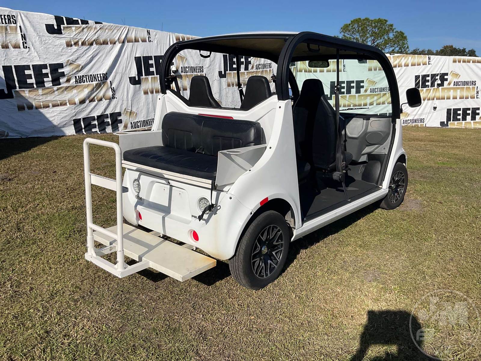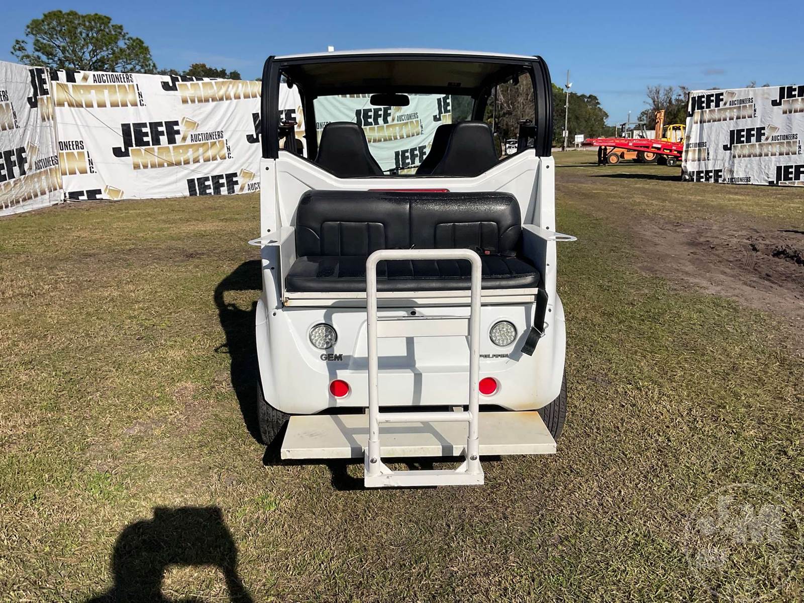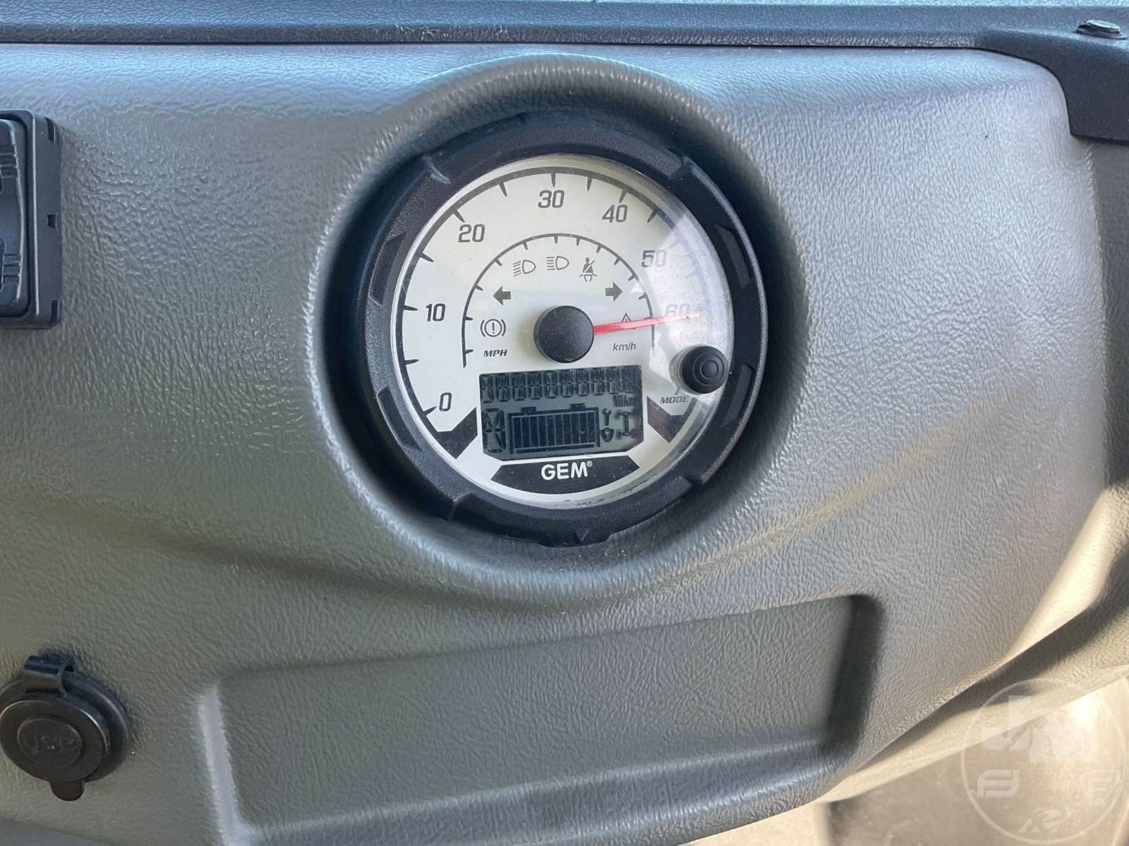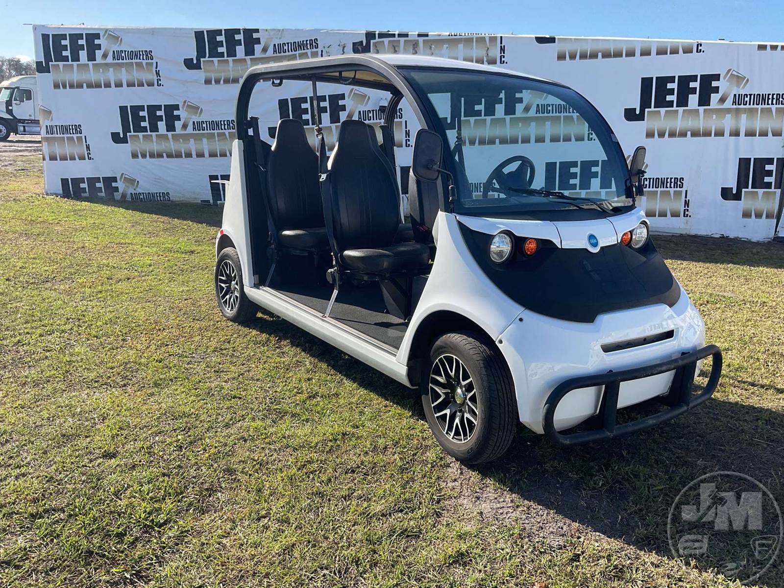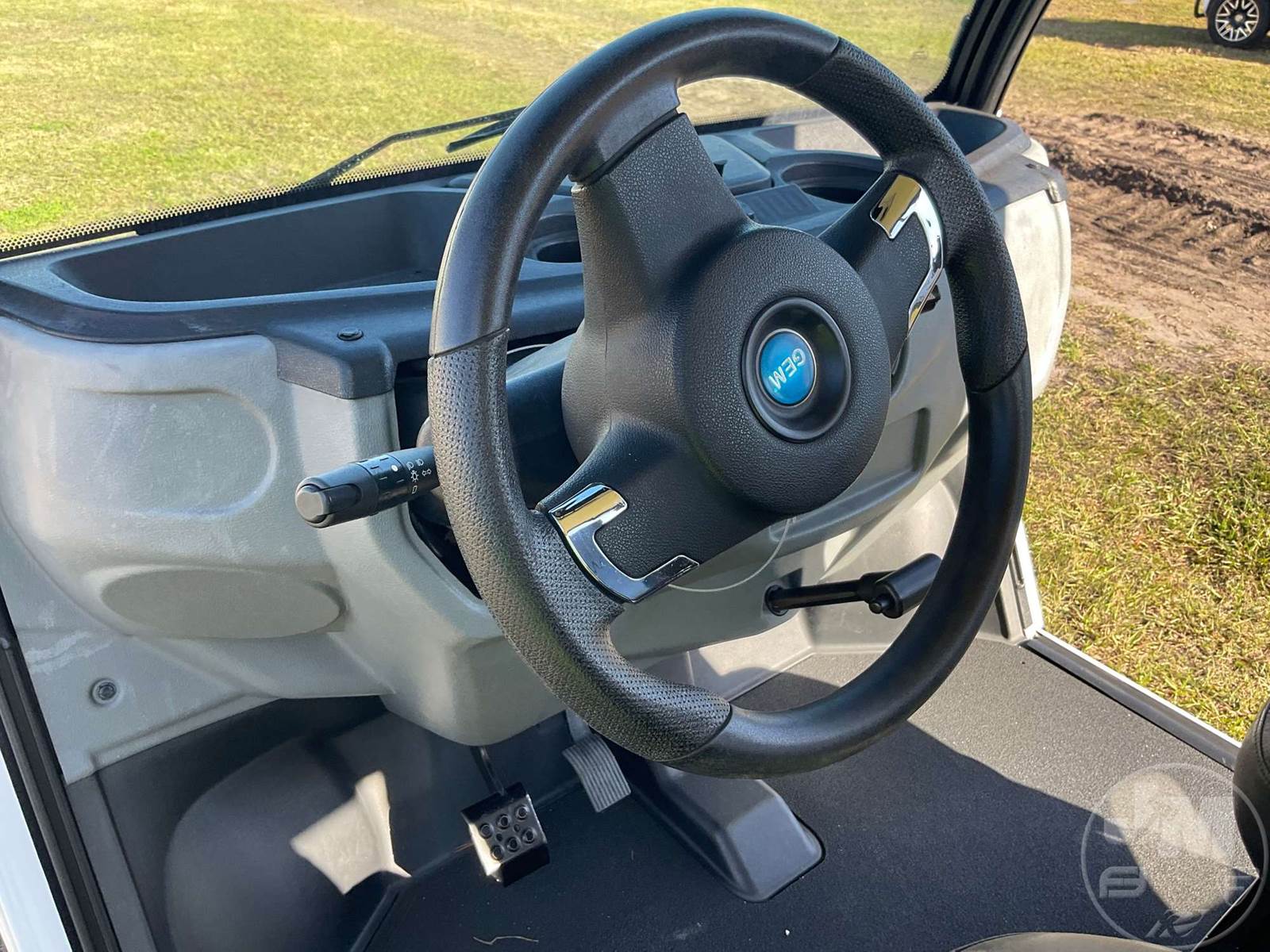 GEM GOLF CART, ELECTRIC, WHITE, 6 SEAT, CANOPY, WINDSHIELD, LIGHTS, ON BOARD CHARGER, DIRECT FWD, 48V AC INDUCTION MOTOR WITH 6.7HP, DELIVERING A TOP SPEED OF 25 MPH, POWER IS SUPPLIED BY A BANK OF EIGHT 6V, 224AH MAINTENANCE-FREE BATTERIES, ALL-ALUMINUM CHASSIS AND SUPERSTRUCTURE, SAFETY FEATURES INCLUDE A CERTIFIED OCCUPANT PROTECTION SYSTEM, 3-POINT SEAT BELTS, & AN AUTOMOTIVE GLASS WS, ODOMETER READS: 8156