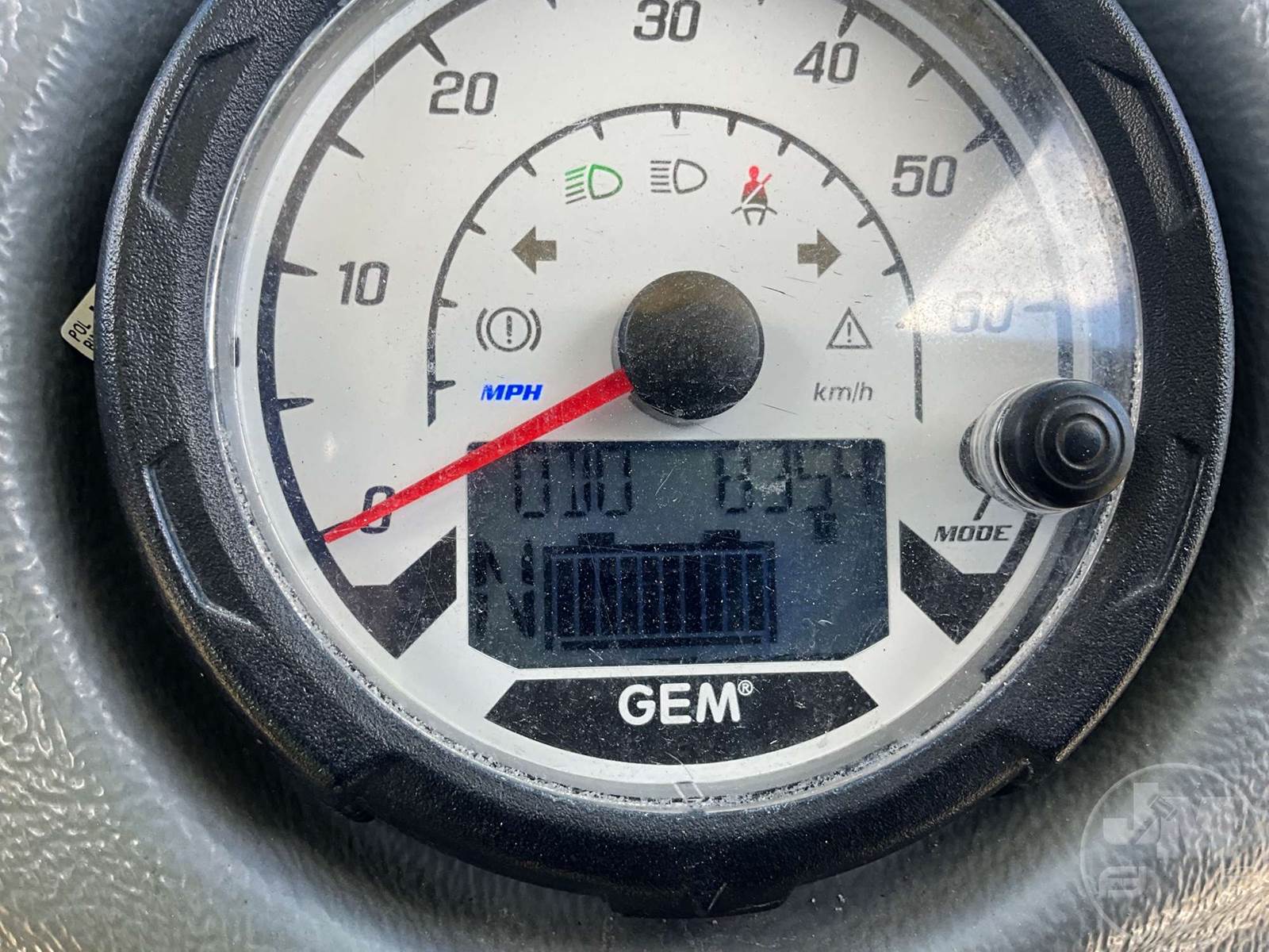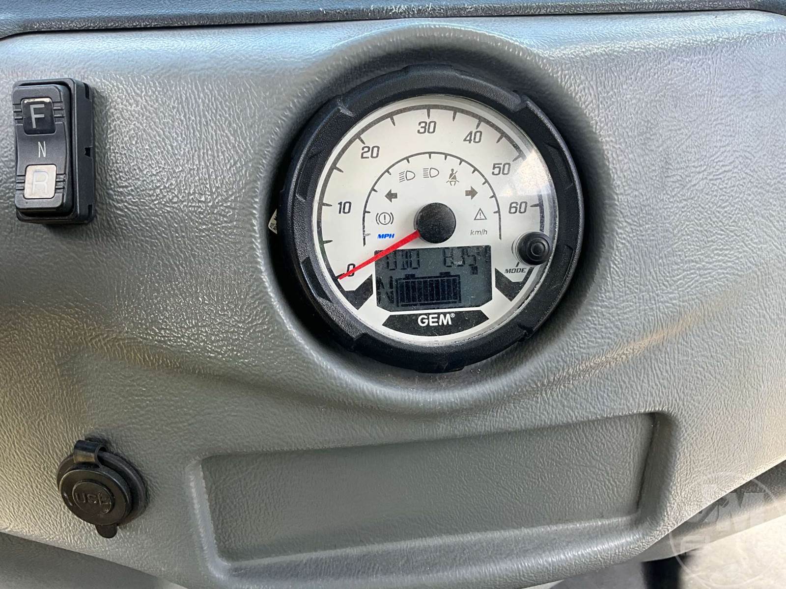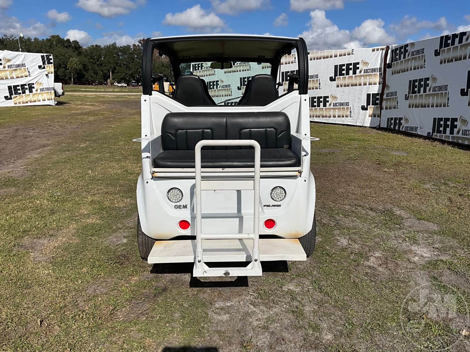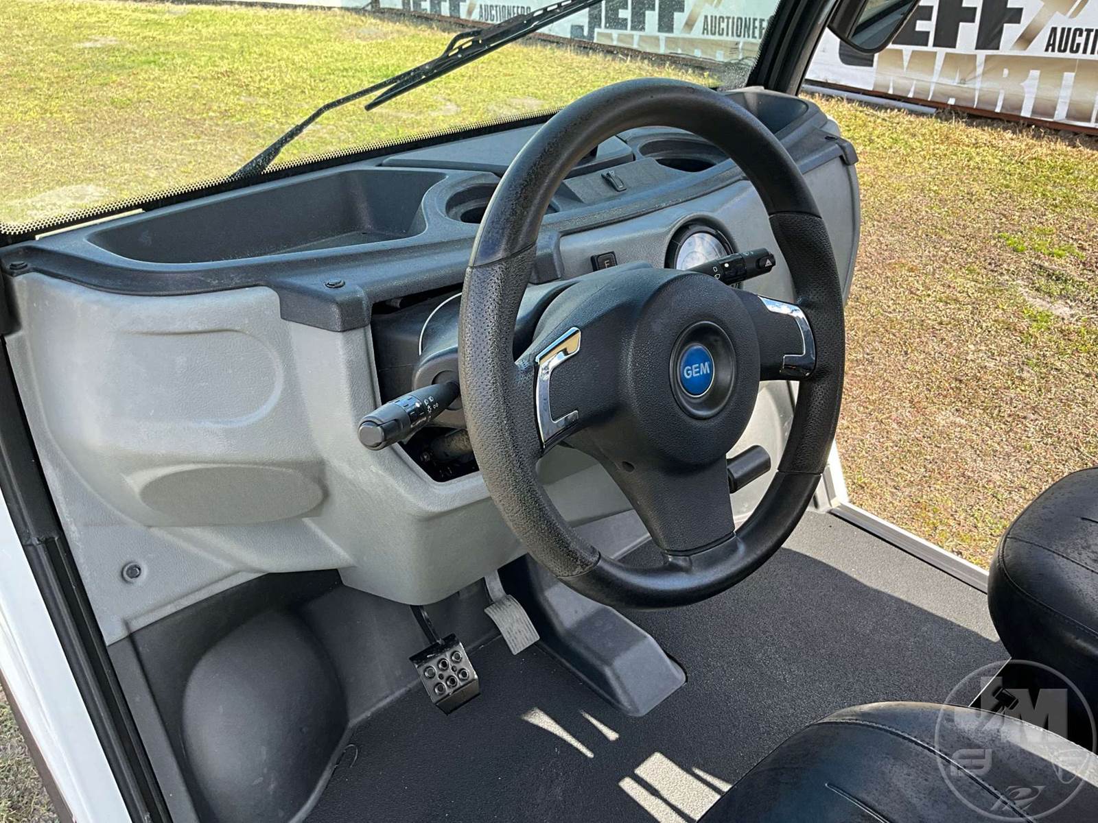 GEM GOLF CART, ELECTRIC, WHITE, 6 SEAT, CANOPY, WINDSHIELD, LIGHTS, ON BOARD CHARGER, DIRECT FWD, 48V AC INDUCTION MOTOR WITH 6.7HP, DELIVERING A TOP SPEED OF 25 MPH, POWER IS SUPPLIED BY A BANK OF EIGHT 6V, 224AH MAINTENANCE-FREE BATTERIES, ALL-ALUMINUM CHASSIS AND SUPERSTRUCTURE, SAFETY FEATURES INCLUDE A CERTIFIED OCCUPANT PROTECTION SYSTEM, 3-POINT SEAT BELTS, & AN AUTOMOTIVE GLASS WS, ODOMETER READS: 8354