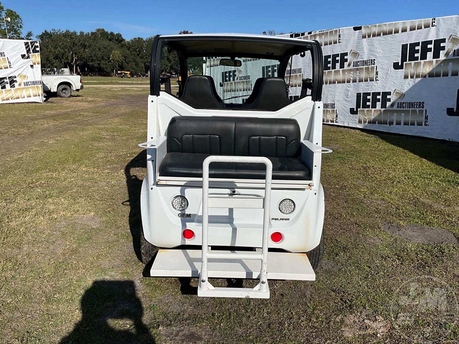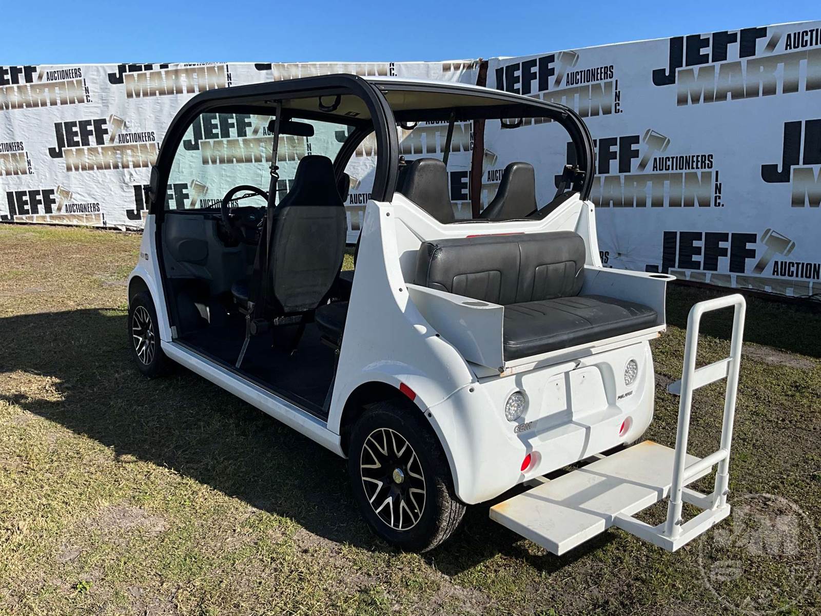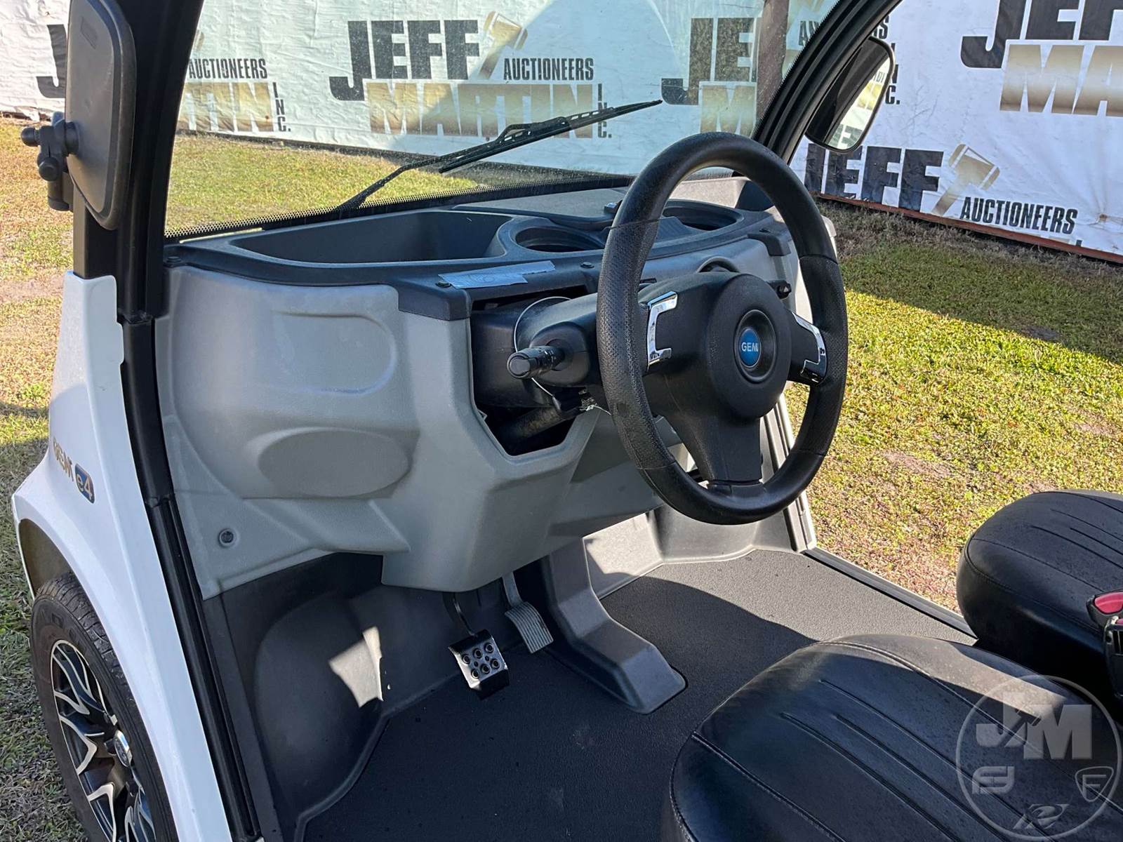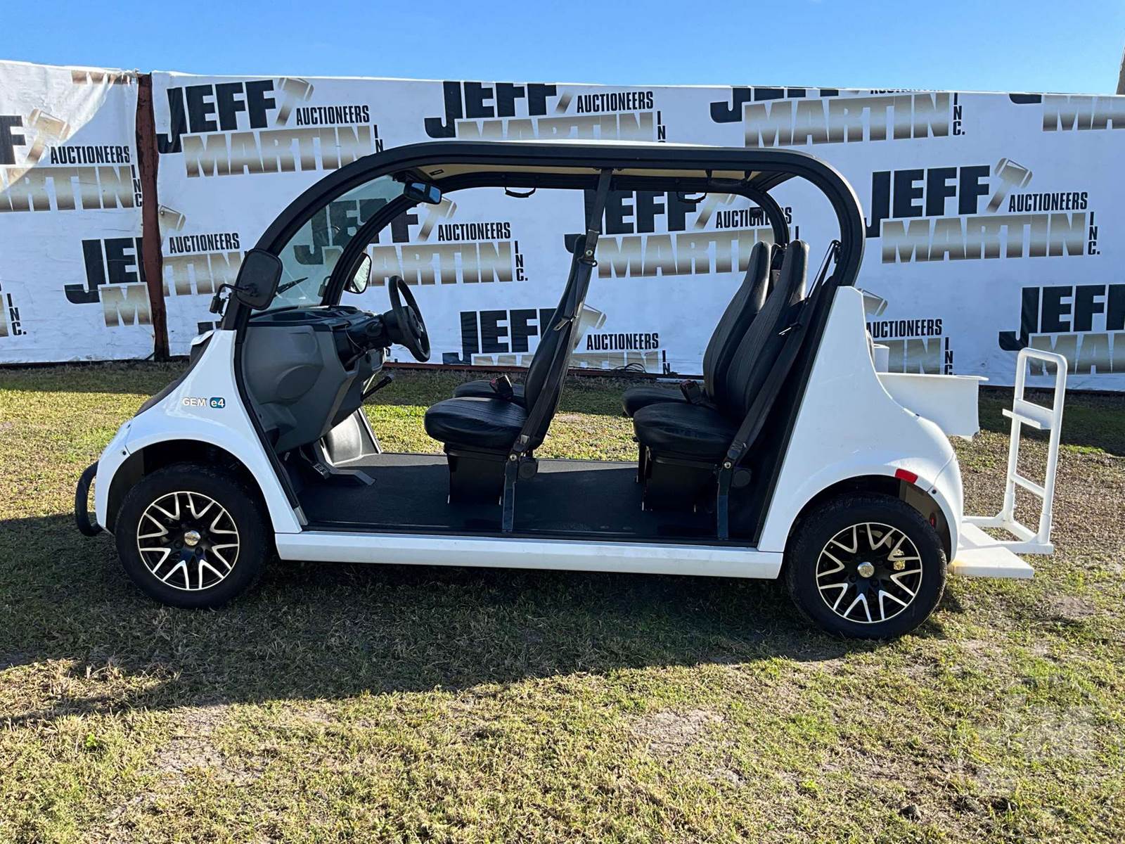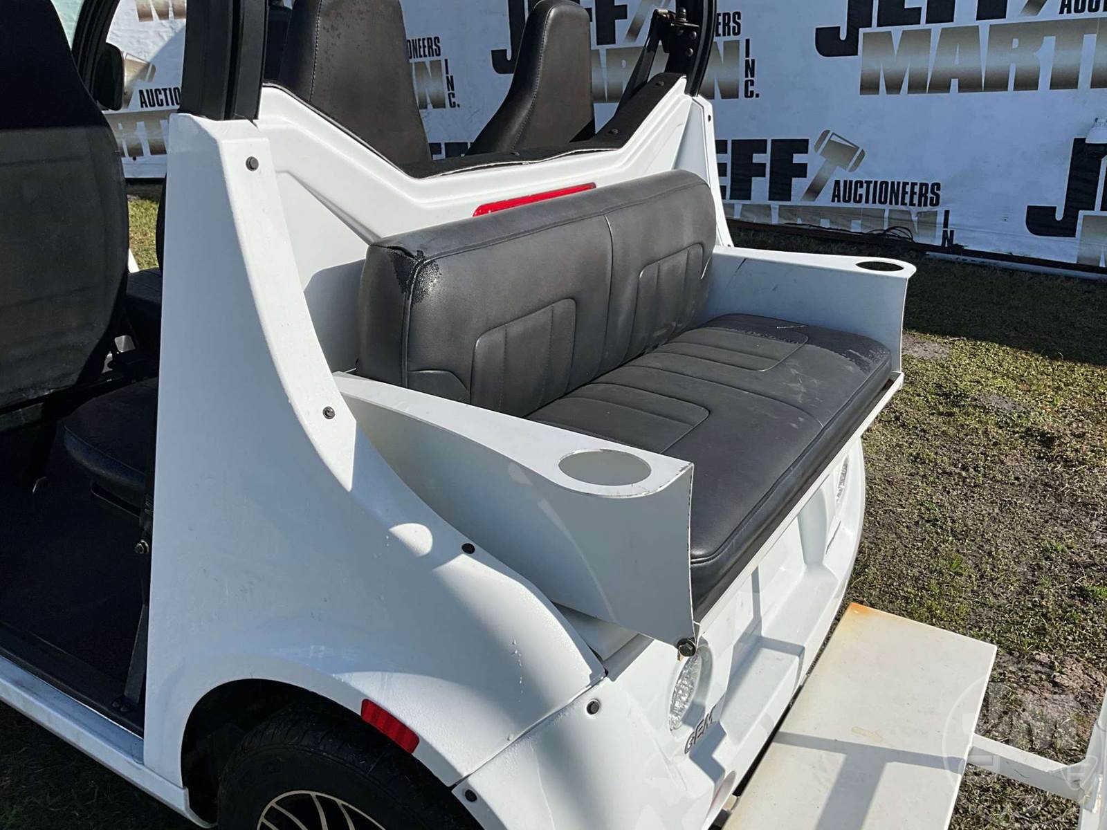 GEM GOLF CART, ELECTRIC, WHITE, 6 SEAT, CANOPY, WINDSHIELD, LIGHTS, ON BOARD CHARGER, DIRECT FWD, 48V AC INDUCTION MOTOR WITH 6.7HP, DELIVERING A TOP SPEED OF 25 MPH, POWER IS SUPPLIED BY A BANK OF EIGHT 6V, 224AH MAINTENANCE-FREE BATTERIES, ALL-ALUMINUM CHASSIS AND SUPERSTRUCTURE, SAFETY FEATURES INCLUDE A CERTIFIED OCCUPANT PROTECTION SYSTEM, 3-POINT SEAT BELTS, & AN AUTOMOTIVE GLASS WS, ODOMETER READS: 7879