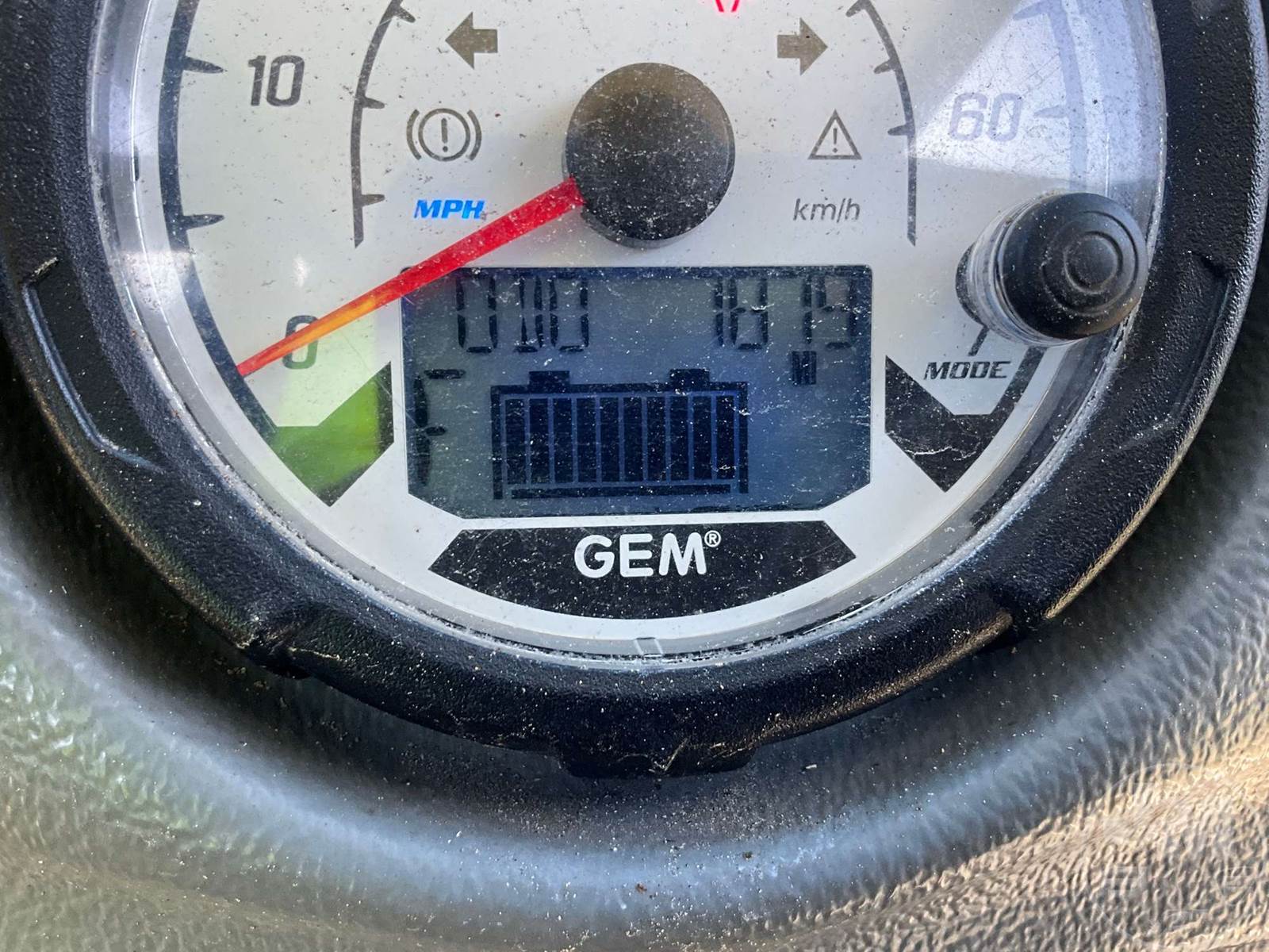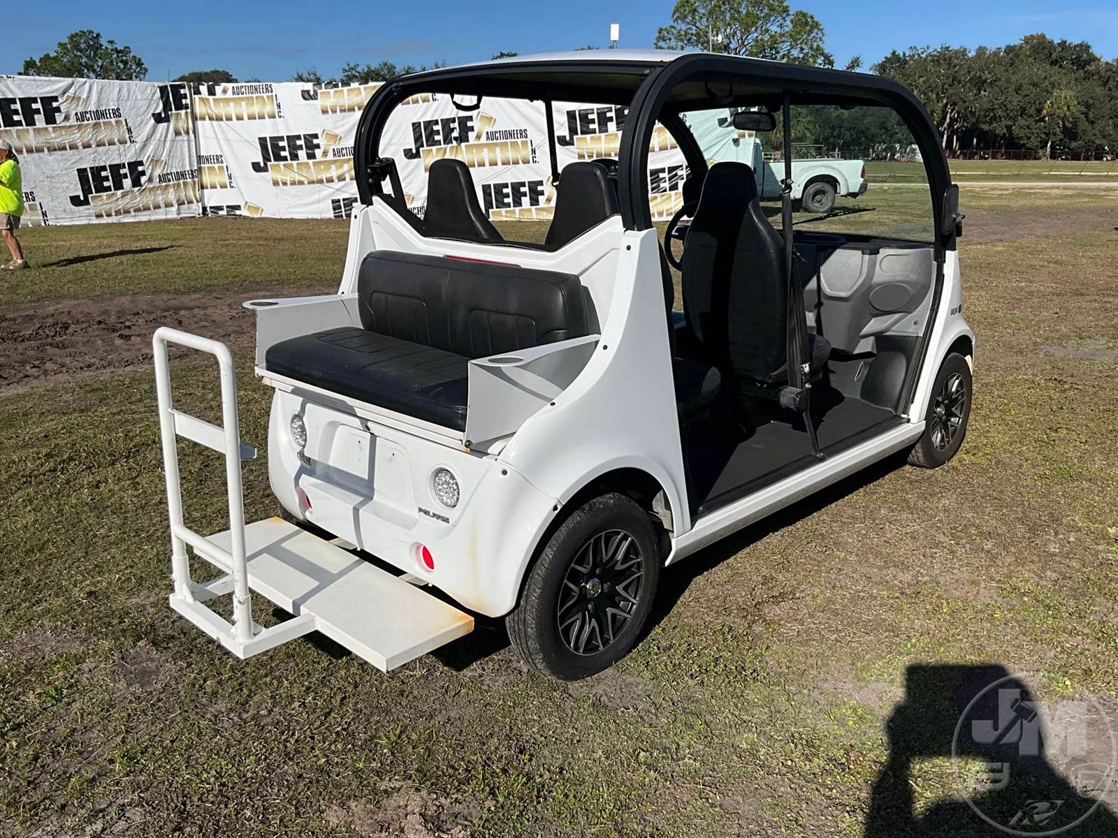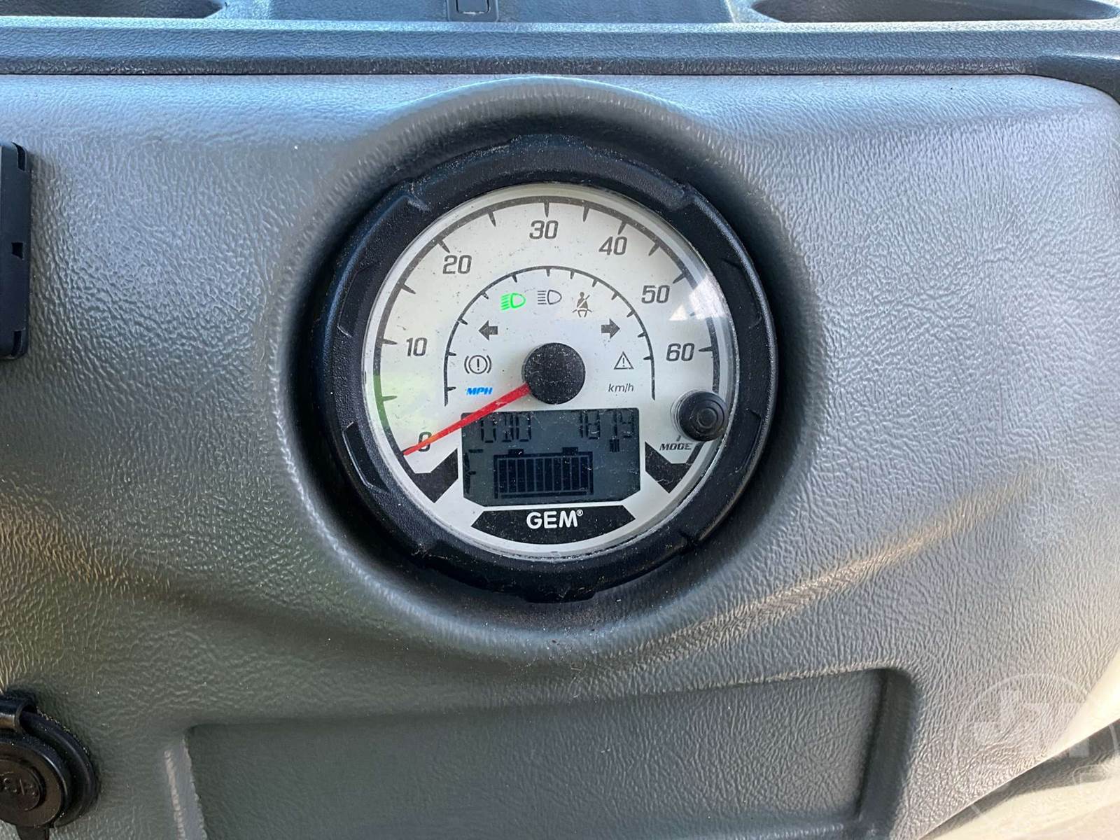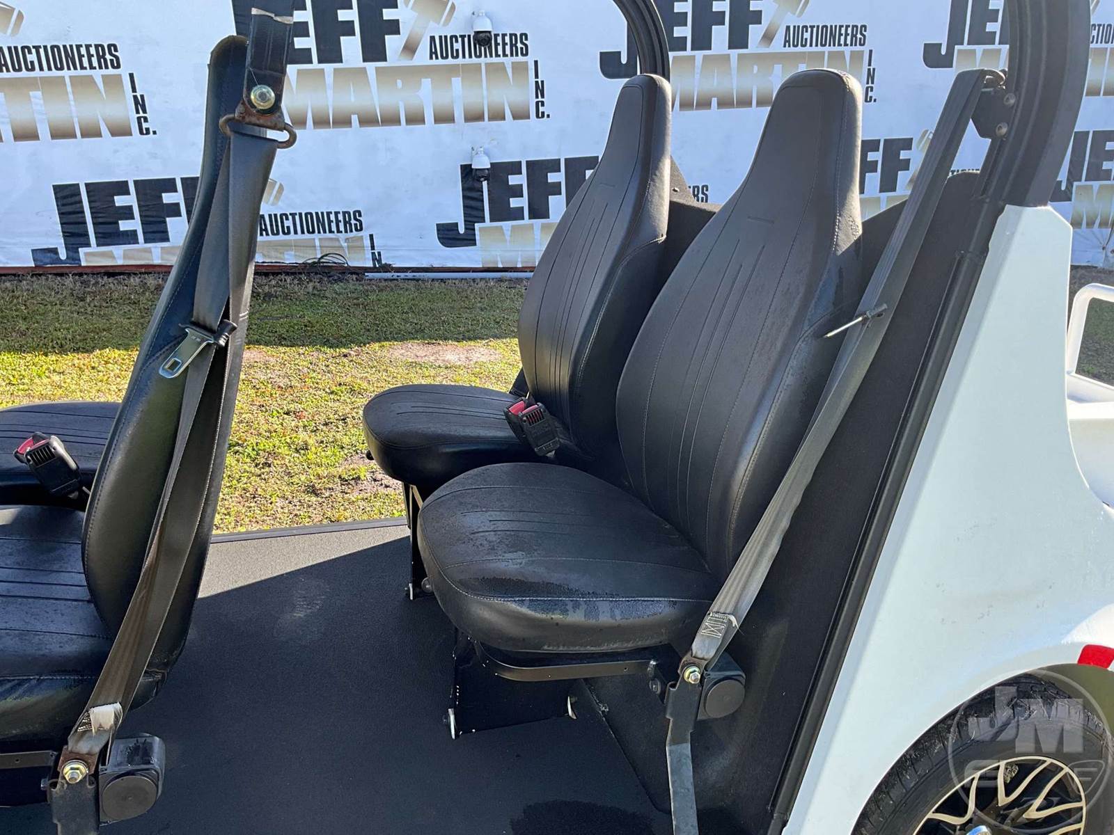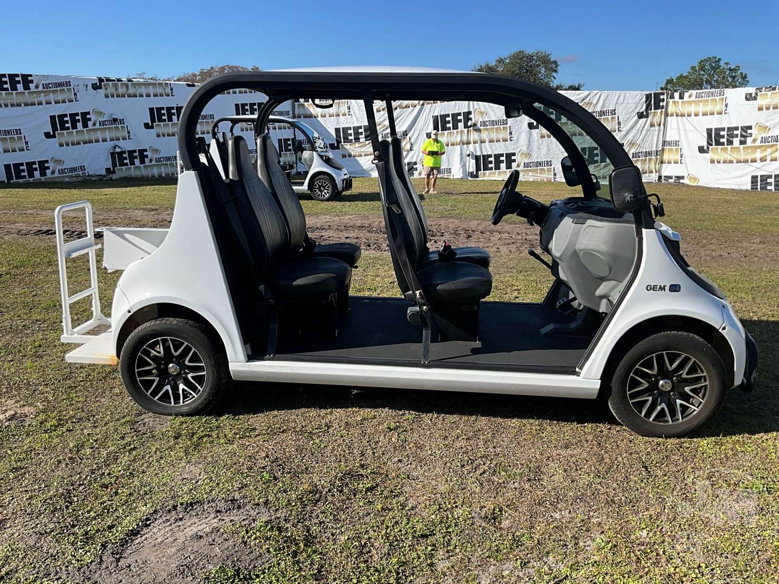 GEM GOLF CART, ELECTRIC, WHITE, 6 SEAT, CANOPY, WINDSHIELD, LIGHTS, ON BOARD CHARGER, DIRECT FWD, 48V AC INDUCTION MOTOR WITH 6.7HP, DELIVERING A TOP SPEED OF 25 MPH, POWER IS SUPPLIED BY A BANK OF EIGHT 6V, 224AH MAINTENANCE-FREE BATTERIES, ALL-ALUMINUM CHASSIS AND SUPERSTRUCTURE, SAFETY FEATURES INCLUDE A CERTIFIED OCCUPANT PROTECTION SYSTEM, 3-POINT SEAT BELTS, & AN AUTOMOTIVE GLASS WS, ODOMETER READS: 7879