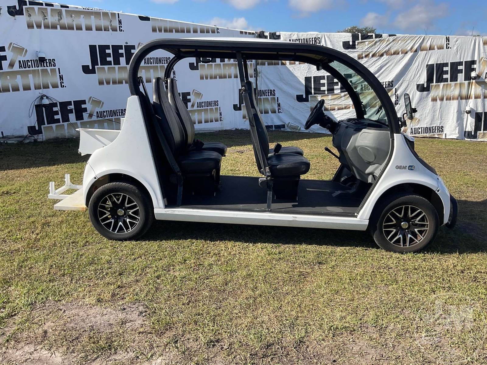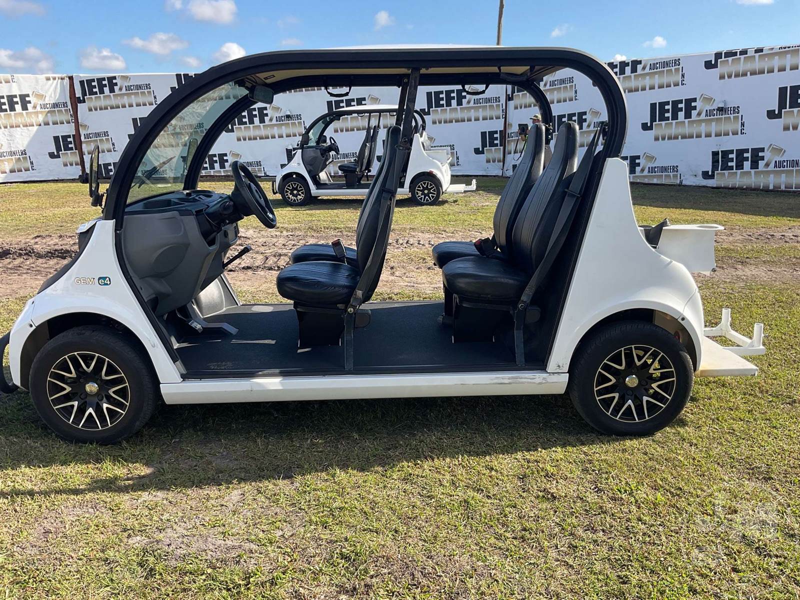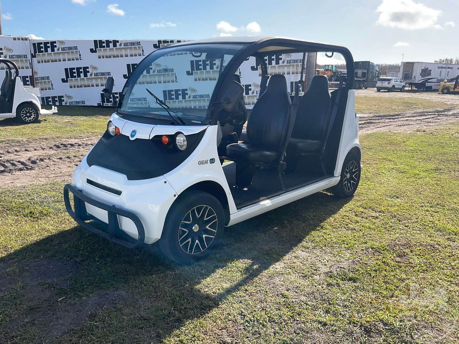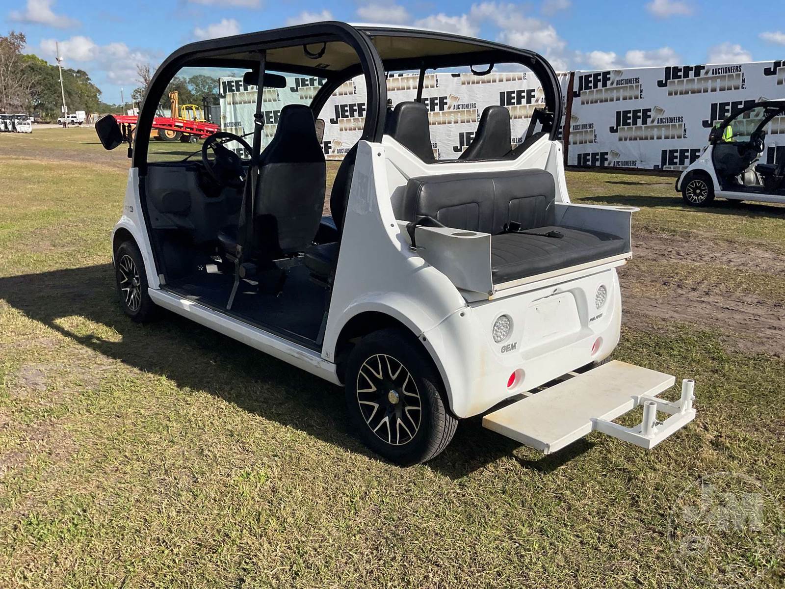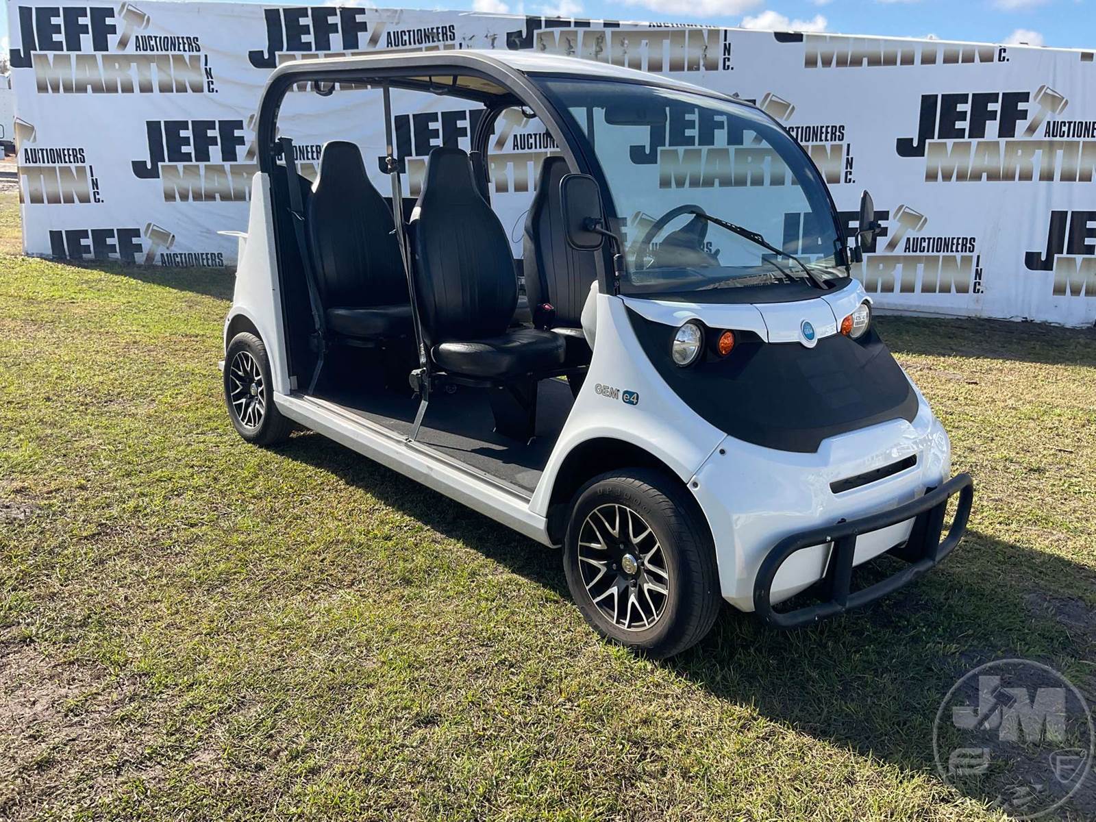 GEM GOLF CART, ELECTRIC, 6 SEAT, WINDSHIELD, LIGHTS, ON BOARD CHARGER, DIRECT FWD, 48V AC INDUCTION MOTOR WITH 6.7HP, DELIVERING A TOP SPEED OF 25 MPH, POWER IS SUPPLIED BY A BANK OF EIGHT 6V, 224AH MAINTENANCE-FREE BATTERIES, ALL-ALUMINUM CHASSIS AND SUPERSTRUCTURE, SAFETY FEATURES INCLUDE A CERTIFIED OCCUPANT PROTECTION SYSTEM, 3-POINT SEAT BELTS, & AN AUTOMOTIVE GLASS WS