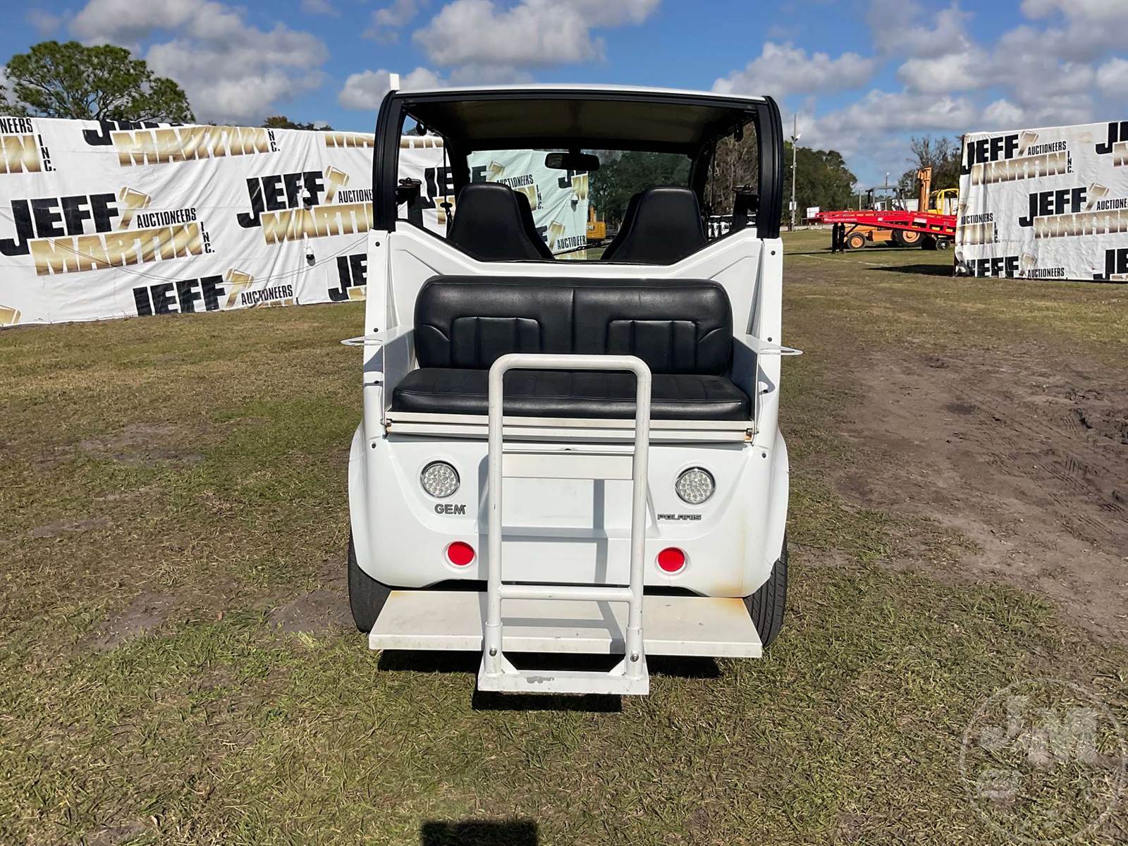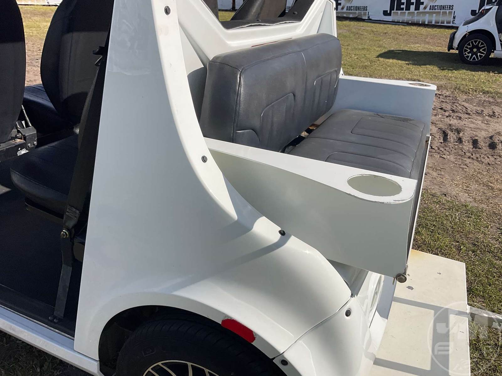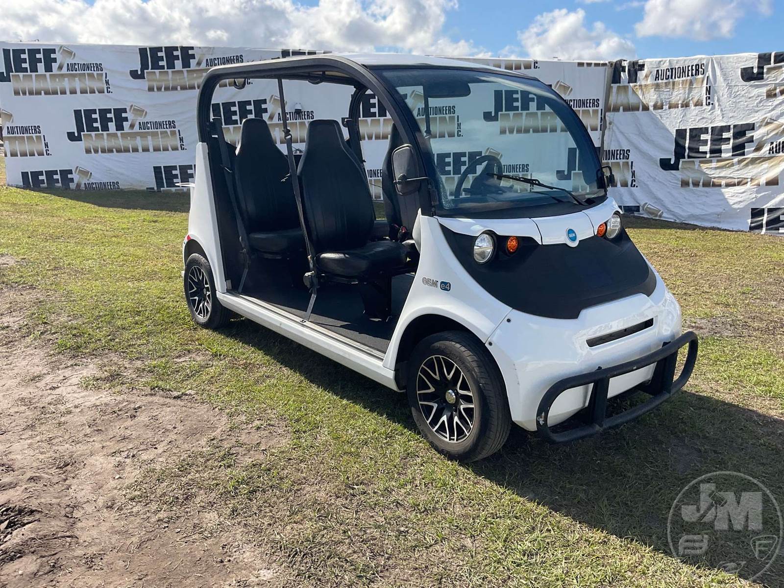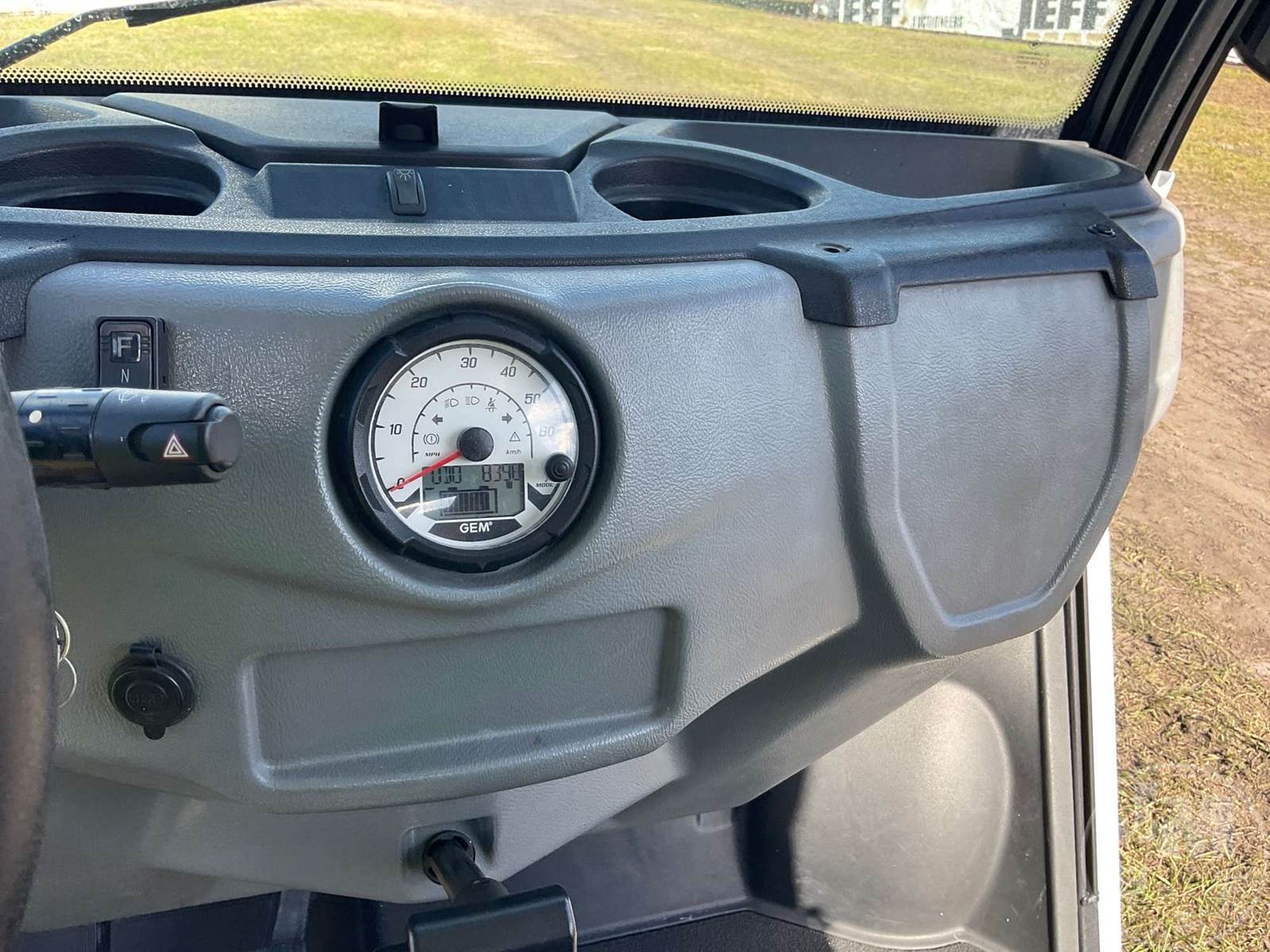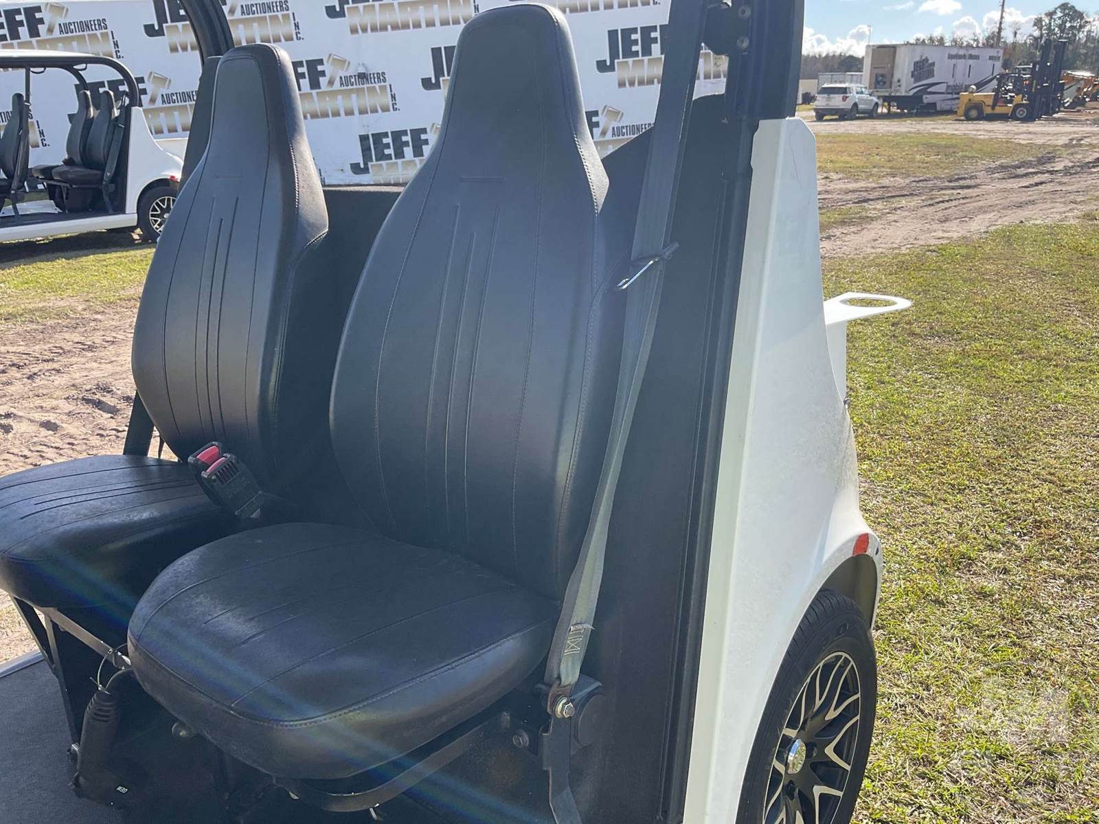 GEM GOLF CART, ELECTRIC, WHITE, 6 SEAT, CANOPY, WINDSHIELD, LIGHTS, ON BOARD CHARGER, DIRECT FWD, 48V AC INDUCTION MOTOR WITH 6.7HP, DELIVERING A TOP SPEED OF 25 MPH, POWER IS SUPPLIED BY A BANK OF EIGHT 6V, 224AH MAINTENANCE-FREE BATTERIES, ALL-ALUMINUM CHASSIS AND SUPERSTRUCTURE, SAFETY FEATURES INCLUDE A CERTIFIED OCCUPANT PROTECTION SYSTEM, 3-POINT SEAT BELTS, & AN AUTOMOTIVE GLASS WS, ODOMETER READS: 8398