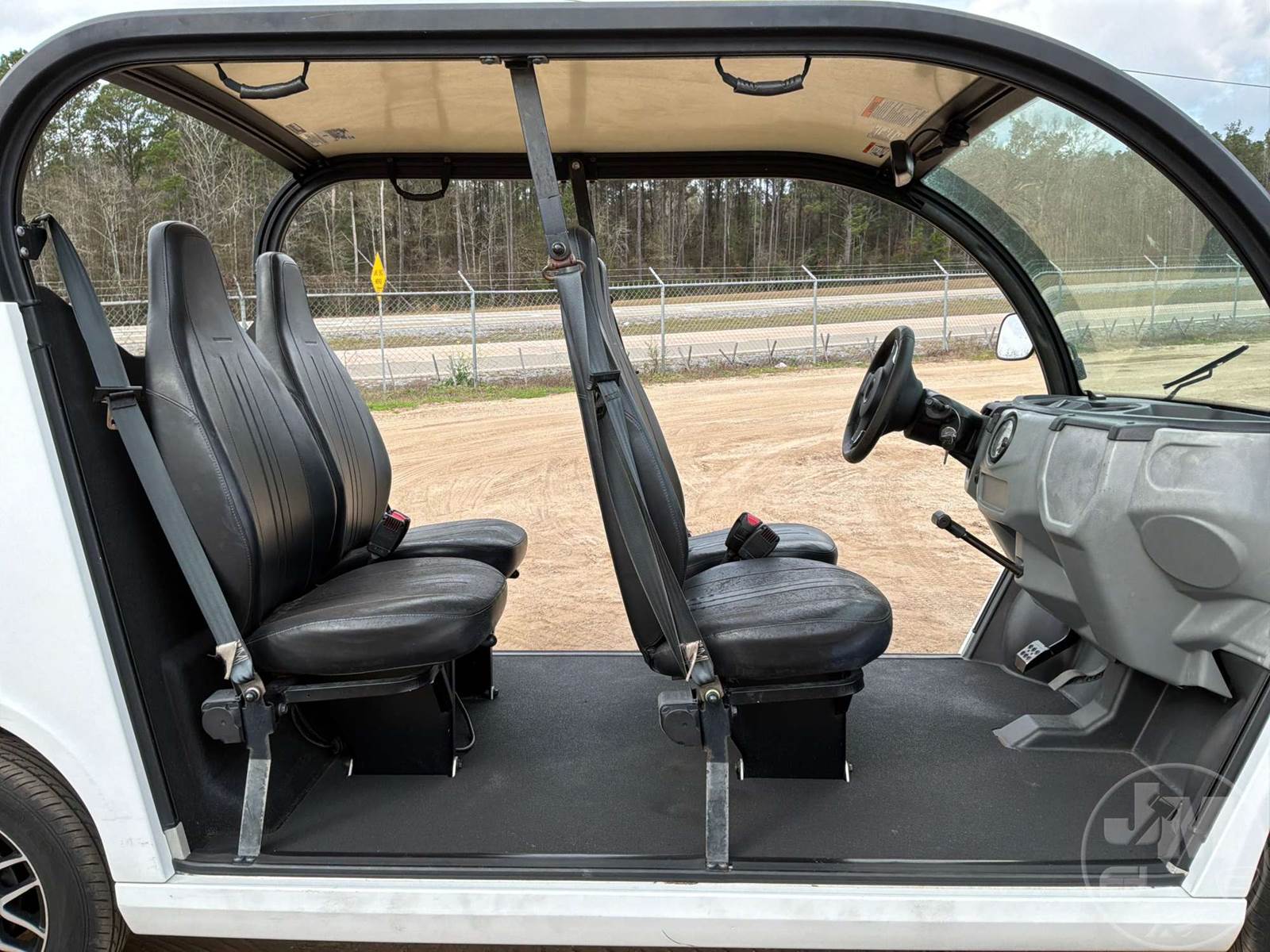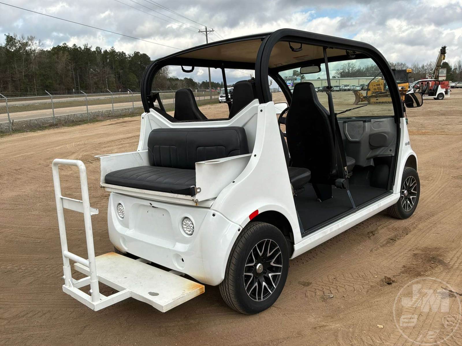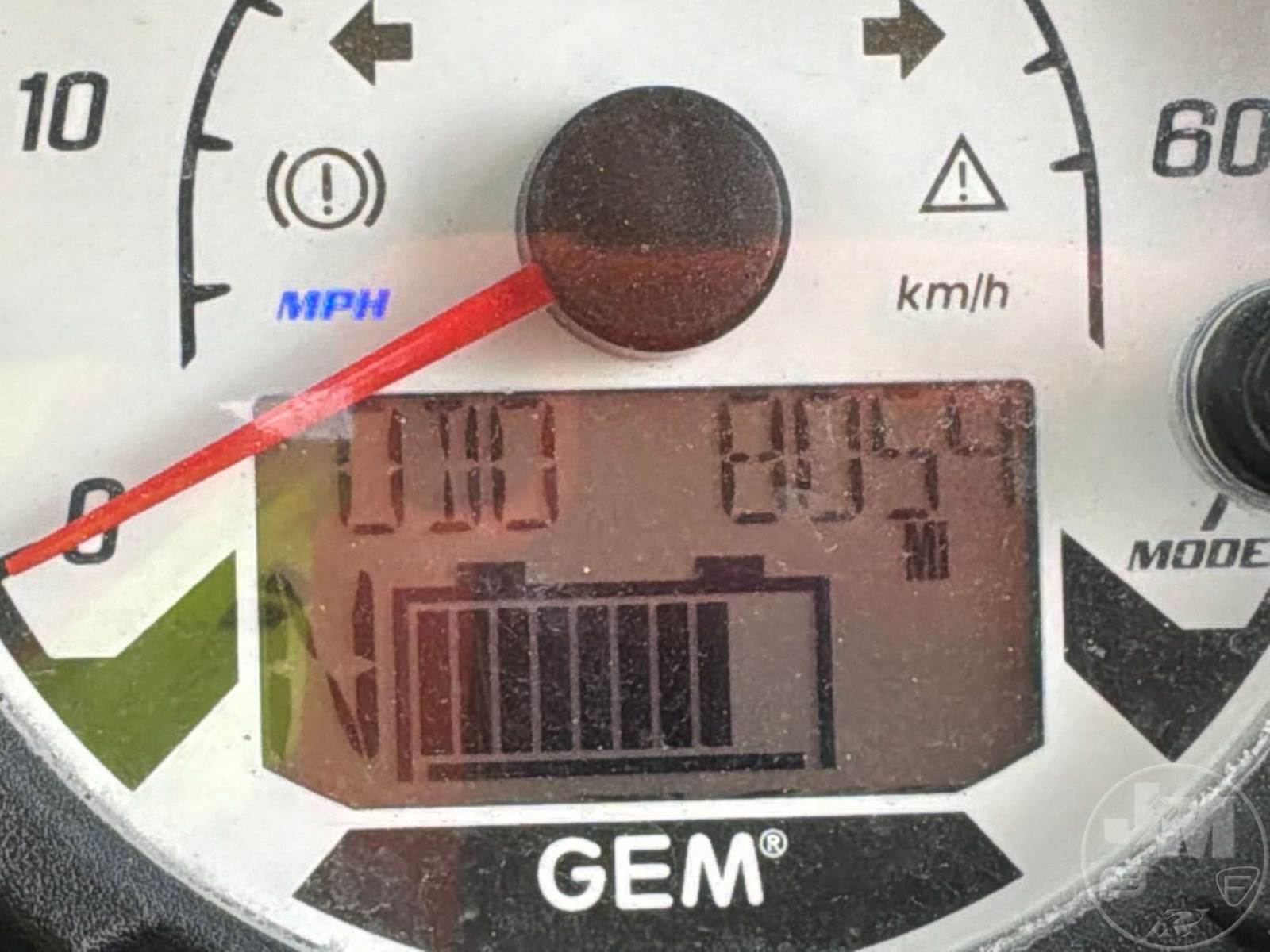 GEM GOLF CART, ELECTRIC, WHITE, 6 SEAT, CANOPY, WINDSHIELD, LIGHTS, ON BOARD CHARGER, DIRECT FWD, 48V AC INDUCTION MOTOR WITH 6.7HP, DELIVERING A TOP SPEED OF 25 MPH, POWER IS SUPPLIED BY A BANK OF EIGHT 6V, 224AH MAINTENANCE-FREE BATTERIES, ALL-ALUMINUM CHASSIS AND SUPERSTRUCTURE, SAFETY FEATURES INCLUDE A CERTIFIED OCCUPANT PROTECTION SYSTEM, 3-POINT SEAT BELTS, & AN AUTOMOTIVE GLASS WS, ODOMETER READS: 8054