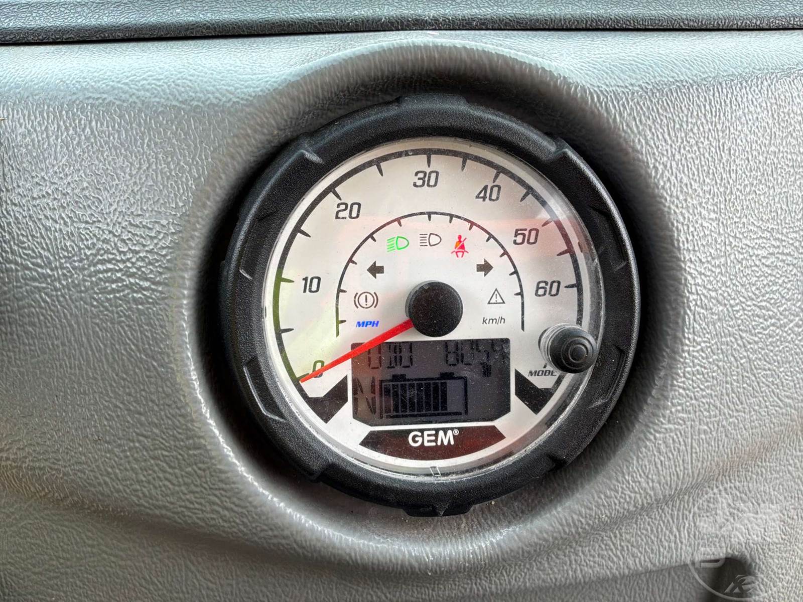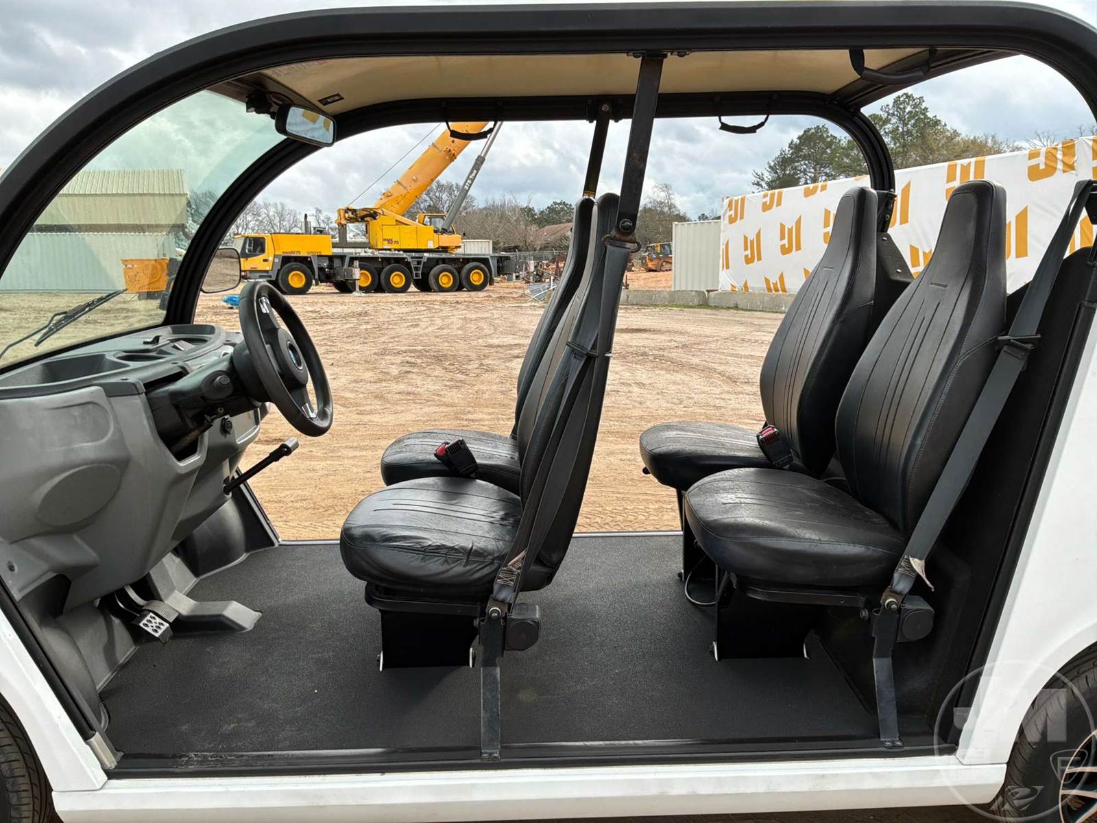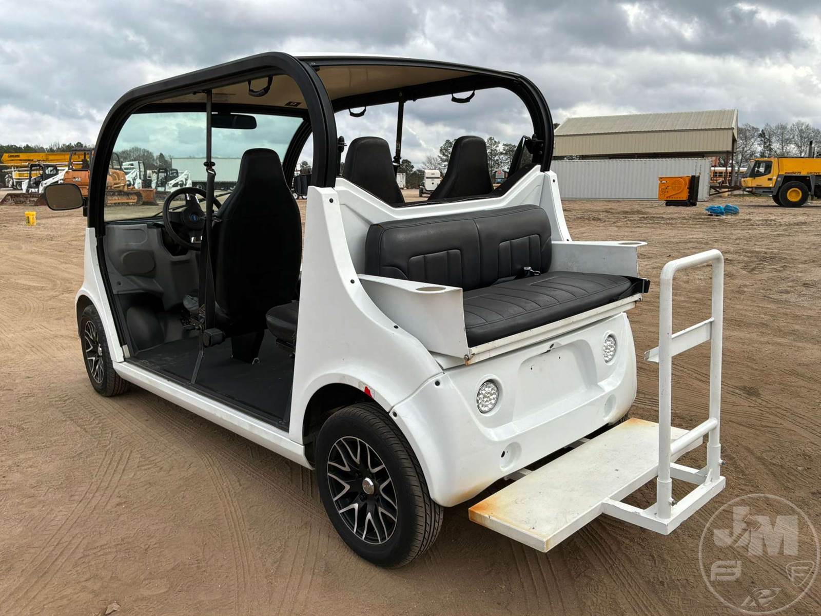 GEM GOLF CART, ELECTRIC, WHITE, 6 SEAT, CANOPY, WINDSHIELD, LIGHTS, ON BOARD CHARGER, DIRECT FWD, 48V AC INDUCTION MOTOR WITH 6.7HP, DELIVERING A TOP SPEED OF 25 MPH, POWER IS SUPPLIED BY A BANK OF EIGHT 6V, 224AH MAINTENANCE-FREE BATTERIES, ALL-ALUMINUM CHASSIS AND SUPERSTRUCTURE, SAFETY FEATURES INCLUDE A CERTIFIED OCCUPANT PROTECTION SYSTEM, 3-POINT SEAT BELTS, & AN AUTOMOTIVE GLASS WS, ODOMETER READS: 8054