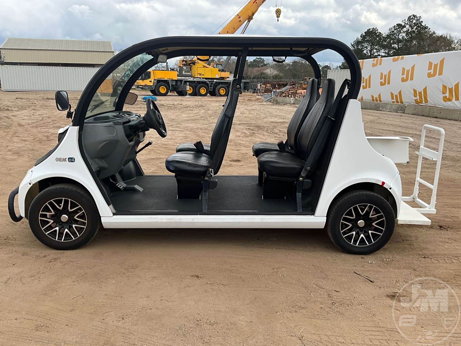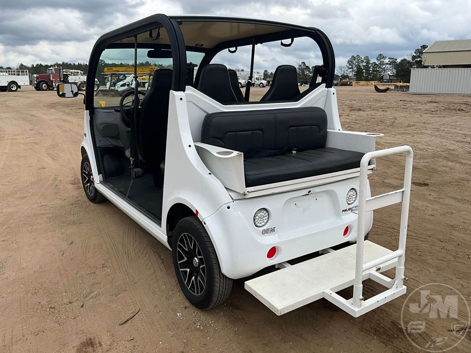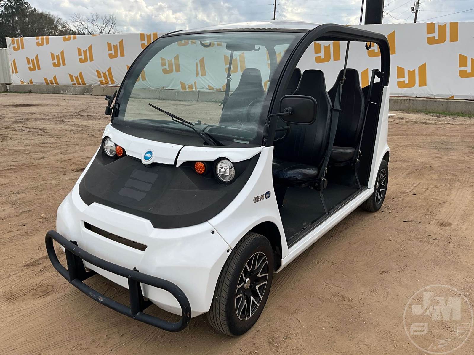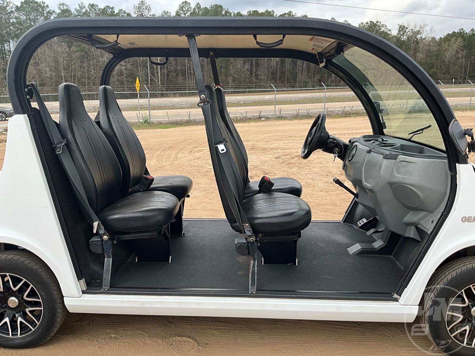 GEM GOLF CART, ELECTRIC, WHITE, 6 SEAT, CANOPY, WINDSHIELD, LIGHTS, ON BOARD CHARGER, DIRECT FWD, 48V AC INDUCTION MOTOR WITH 6.7HP, DELIVERING A TOP SPEED OF 25 MPH, POWER IS SUPPLIED BY A BANK OF EIGHT 6V, 224AH MAINTENANCE-FREE BATTERIES, ALL-ALUMINUM CHASSIS AND SUPERSTRUCTURE, SAFETY FEATURES INCLUDE A CERTIFIED OCCUPANT PROTECTION SYSTEM, 3-POINT SEAT BELTS, & AN AUTOMOTIVE GLASS WS, ODOMETER READS: 9083