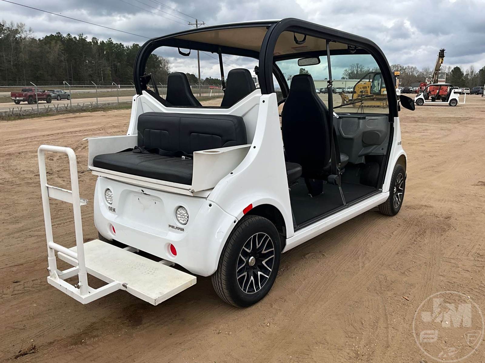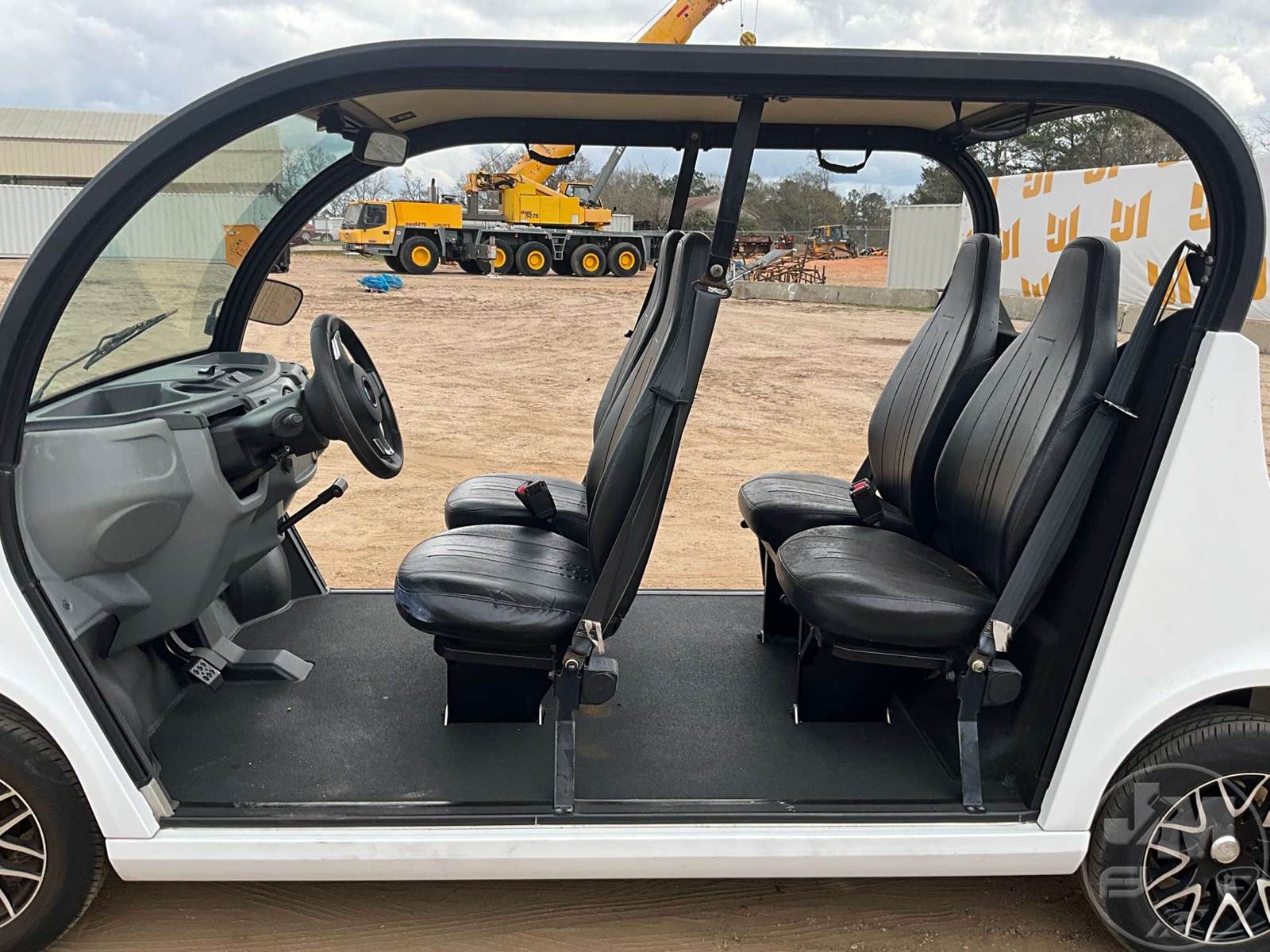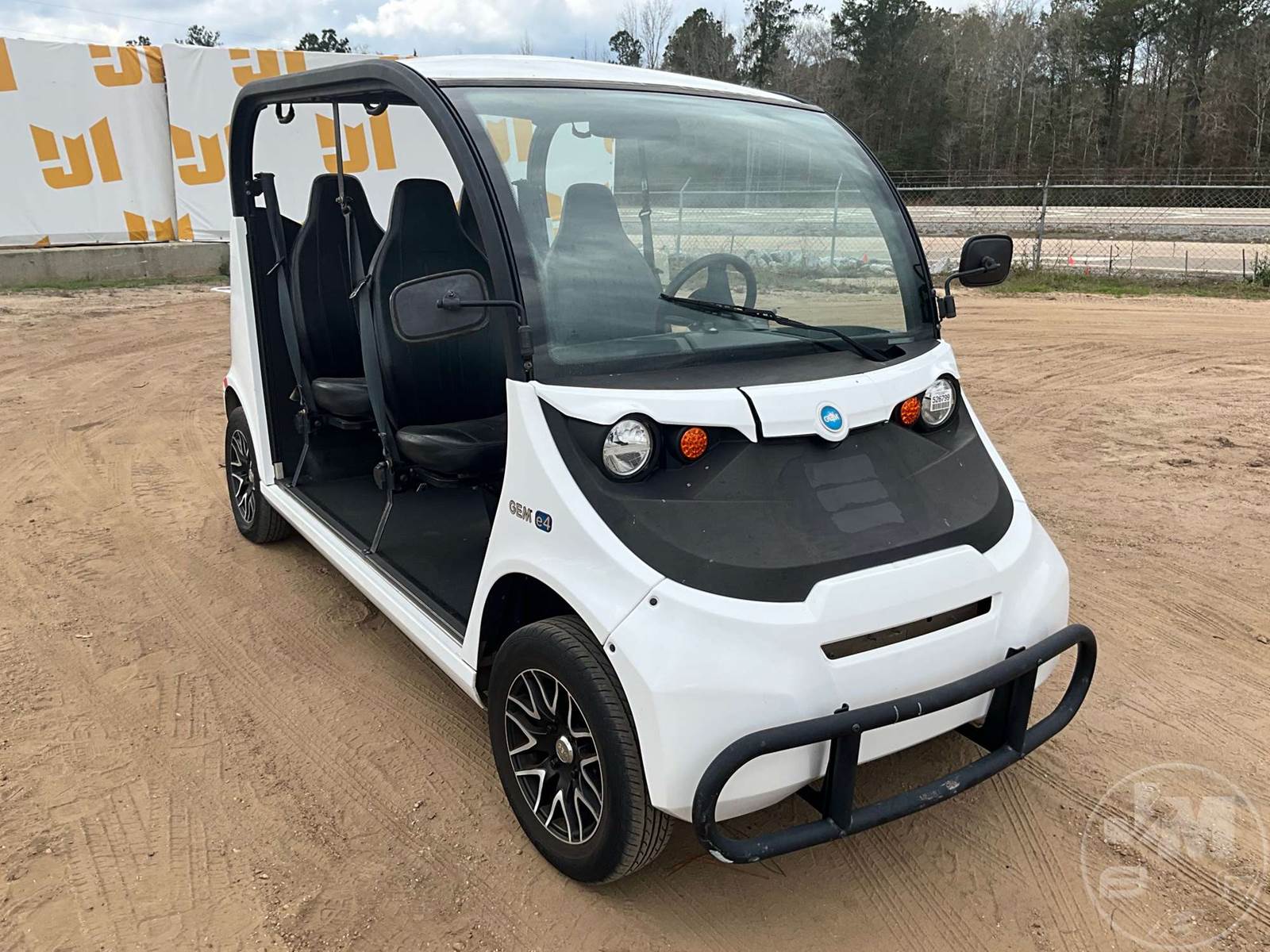 GEM GOLF CART, ELECTRIC, WHITE, 6 SEAT, CANOPY, WINDSHIELD, LIGHTS, ON BOARD CHARGER, DIRECT FWD, 48V AC INDUCTION MOTOR WITH 6.7HP, DELIVERING A TOP SPEED OF 25 MPH, POWER IS SUPPLIED BY A BANK OF EIGHT 6V, 224AH MAINTENANCE-FREE BATTERIES, ALL-ALUMINUM CHASSIS AND SUPERSTRUCTURE, SAFETY FEATURES INCLUDE A CERTIFIED OCCUPANT PROTECTION SYSTEM, 3-POINT SEAT BELTS, & AN AUTOMOTIVE GLASS WS, ODOMETER READS: 9083
