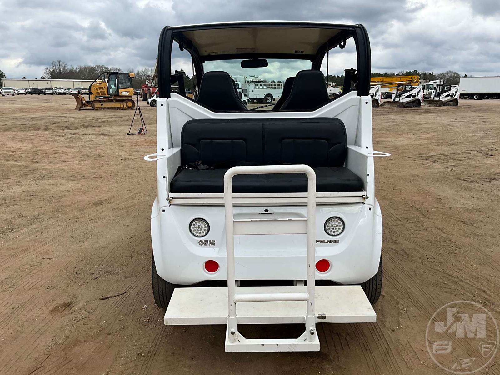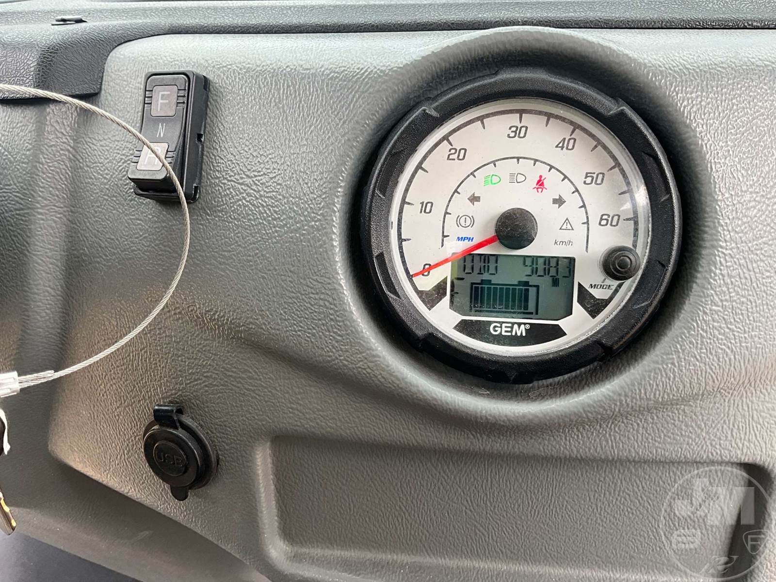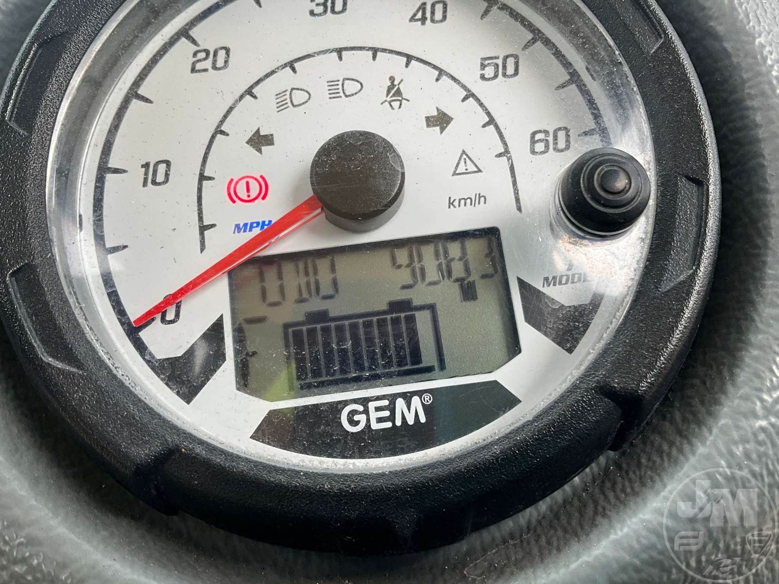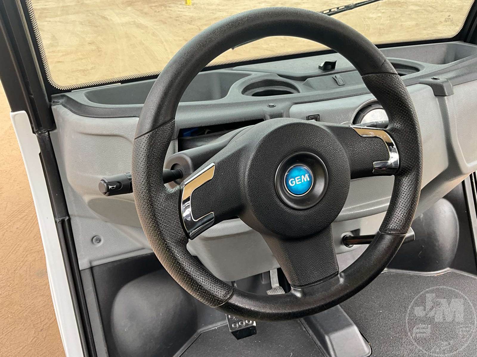 GEM GOLF CART, ELECTRIC, WHITE, 6 SEAT, CANOPY, WINDSHIELD, LIGHTS, ON BOARD CHARGER, DIRECT FWD, 48V AC INDUCTION MOTOR WITH 6.7HP, DELIVERING A TOP SPEED OF 25 MPH, POWER IS SUPPLIED BY A BANK OF EIGHT 6V, 224AH MAINTENANCE-FREE BATTERIES, ALL-ALUMINUM CHASSIS AND SUPERSTRUCTURE, SAFETY FEATURES INCLUDE A CERTIFIED OCCUPANT PROTECTION SYSTEM, 3-POINT SEAT BELTS, & AN AUTOMOTIVE GLASS WS, ODOMETER READS: 9083