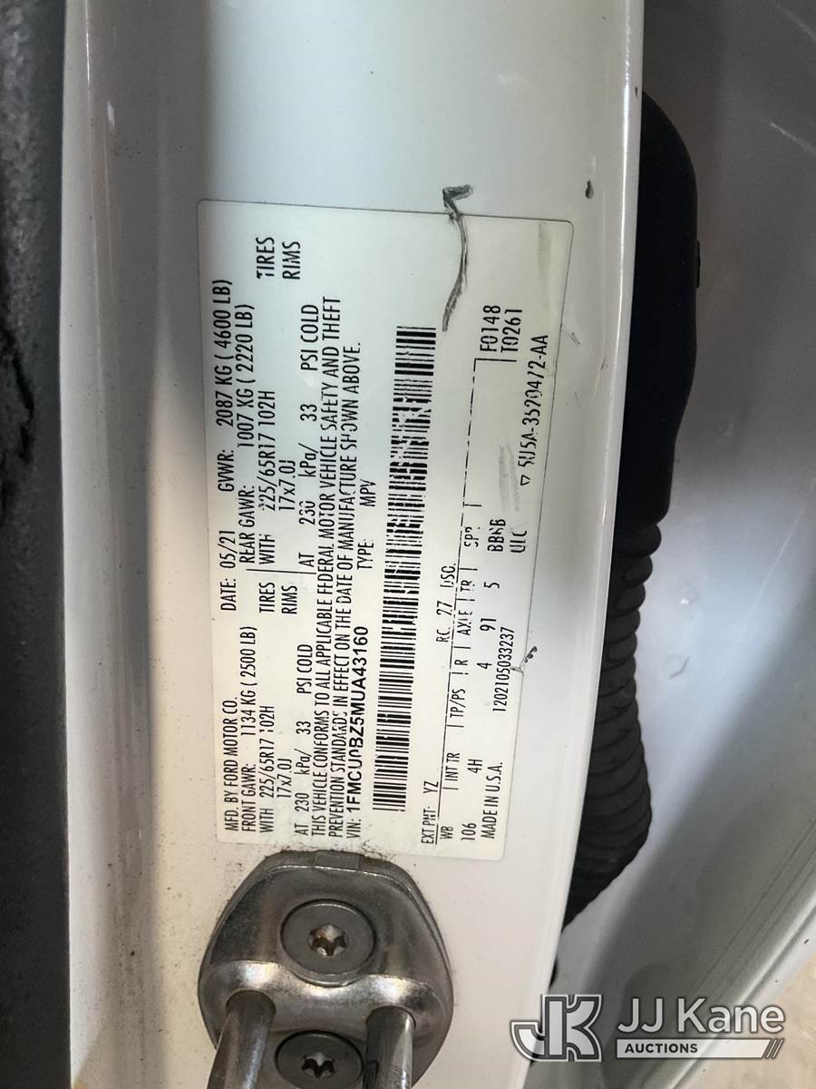 2021 Ford Escape 4-Door Sport Utility Vehicle, 4-cyl, HYBRID, 6-Speed Automatic, A/C, (89,025 miles) (Runs & Moves) (Has Open Recalls With Remedies Not Yet Available) (Bidding Restricted to Licensed Vehicle Dealers Only), This is a Titled Item NOTE: This unit is being sold AS IS/WHERE IS via Timed Auction and is located in Jurupa Valley, CA. Inspection & preview days for this unit are the 2 business days prior to the first day of items closing for this auction, item is located at 4510 Muth Way Jurupa Valley, CA 92509 and hours of operations are 8a-4p. For pre-sale questions, please contact please contact Office Staff @ (310) 353-7140. Dealer License Number 45696. (Buyer is responsible for removal. Assistance by consignor or JJ Kane Auctions is not assured.)