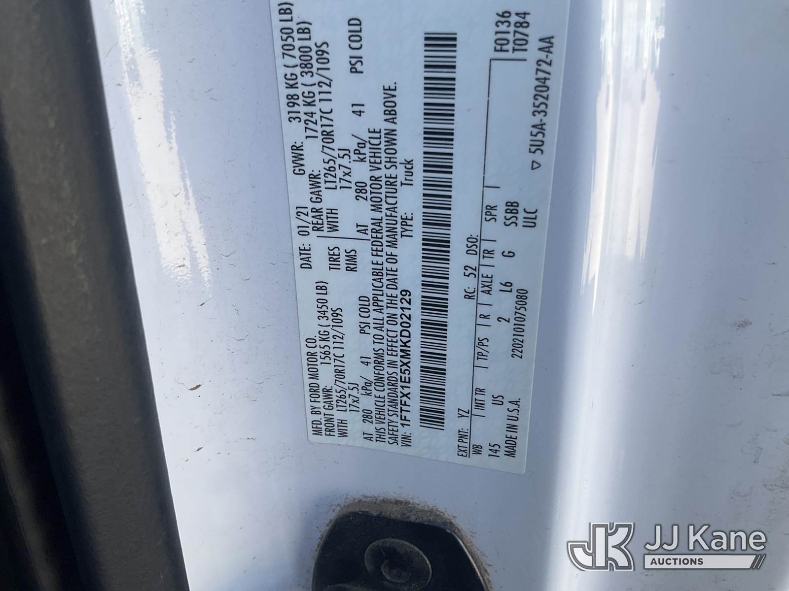 2021 Ford F-150 Crew-Cab Pickup Truck, 8-cyl gas, 6-Speed Automatic, 4WD, A/C, (95,918 miles) (Runs & Moves) This is a Titled Item NOTE: This unit is being sold AS IS/WHERE IS via Timed Auction and is located in Waxahachie, TX. Inspection & preview days for this unit are the 2 business days prior to the first day of items closing for this auction, item is located at 999 Solon Rd Waxahachie, TX 75165 and hours of operations are 8a-4p. For pre-sale questions, please contact Alex Bayless @ (469) 550-4938. (Buyer is responsible for removal. Assistance by consignor or JJ Kane Auctions is not assured.)