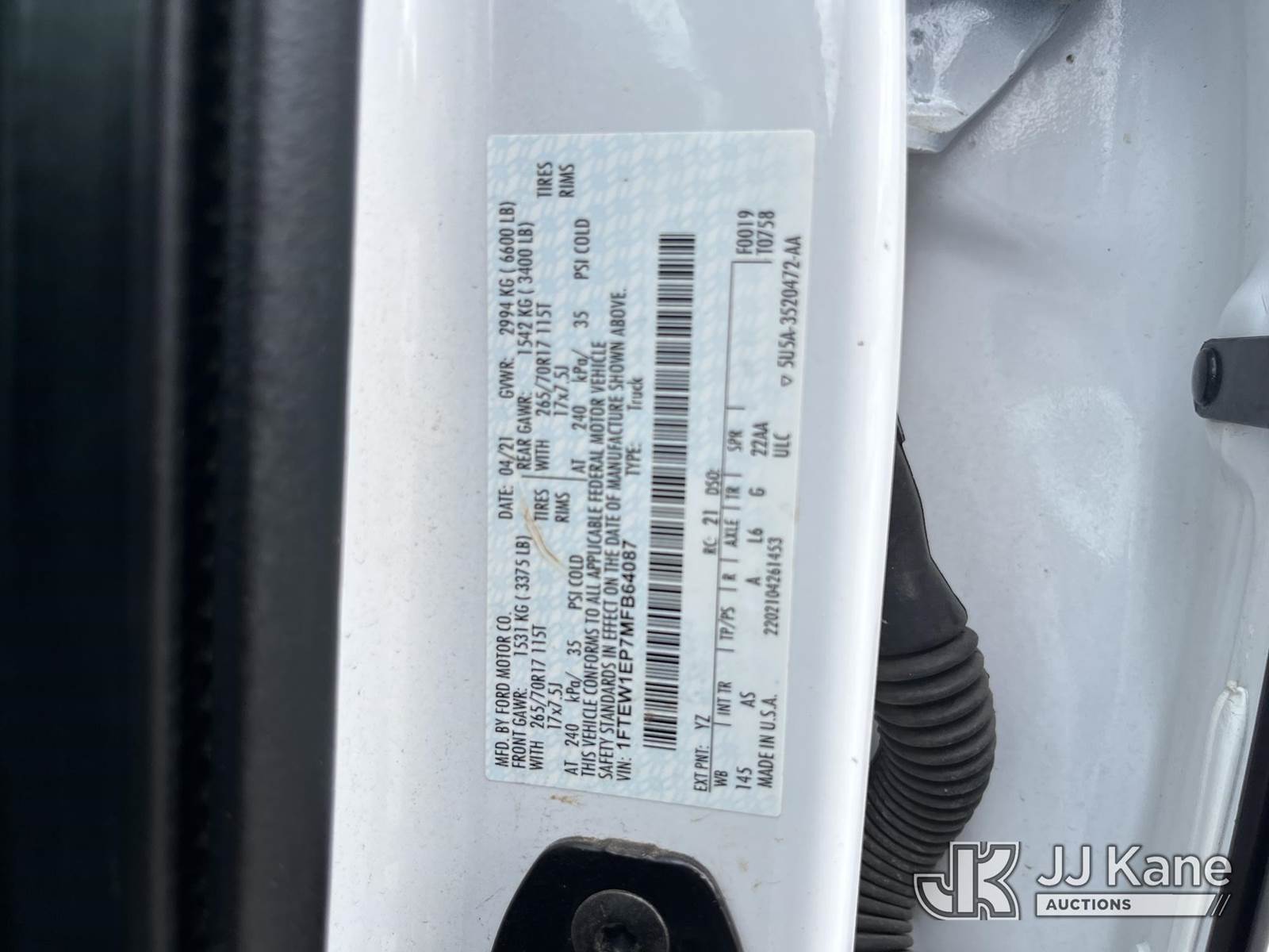 2021 Ford F-150 Crew-Cab Pickup Truck, s/n 1FTEW1EP7MFB64087, 6-cyl gas, 4WD, Auto, A/C, (187,542 miles) (Runs & Moves) (Check Engine Light On, Body Damage) This is a Titled Item NOTE: This unit is being sold AS IS/WHERE IS via Timed Auction and is located in Kingston Springs, TN. Inspection & preview days for this unit are by appointment only; please contact us at contact@jjkane.com or 84-Go-JJKane for more details. (Buyer is responsible for removal. Assistance by consignor or JJ Kane Auctions is not assured.)