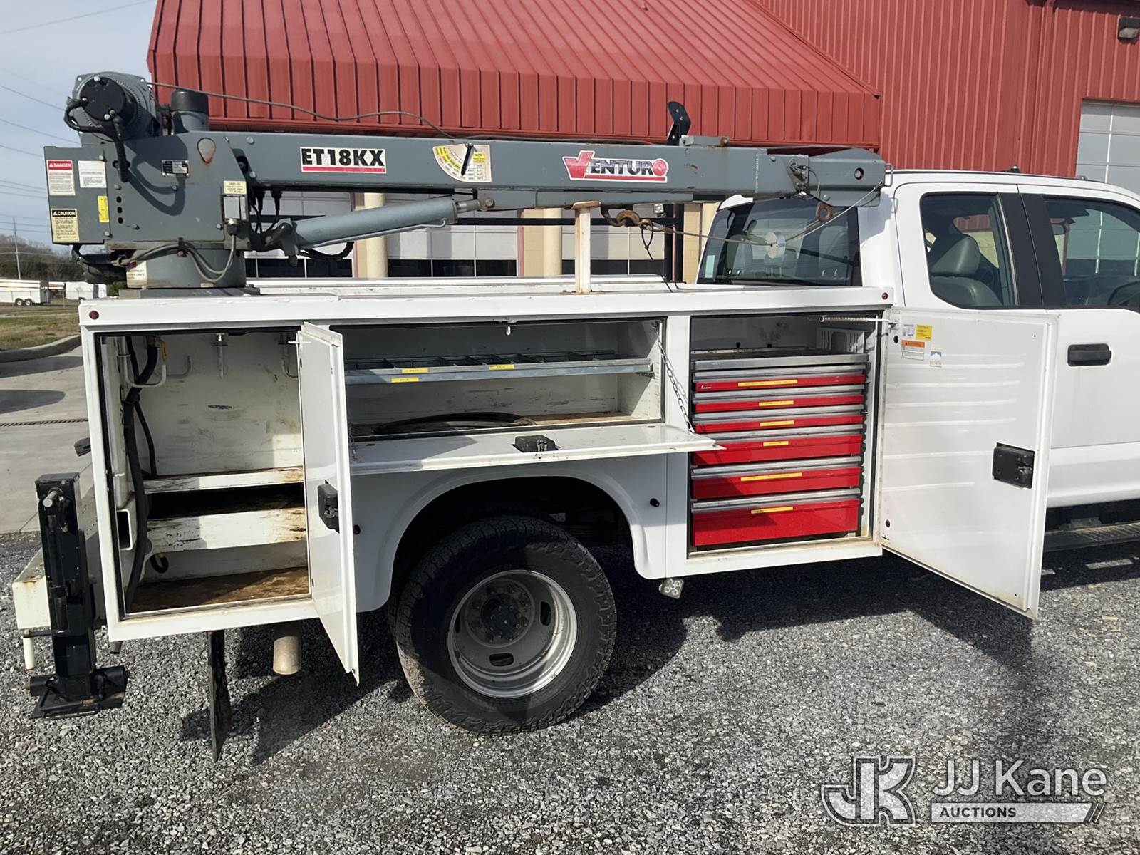 2021 Ford F-350 SD Extended-Cab Service Truck, 6.2L V8 OHV 16V Auto, 4wd, Gas, A/C, with Venturo ET18KX material crane, (54,603 miles) (Per Seller: FLOODED VEHICLE, Water Only Went Up To The Floorboard And Truck Still Runs And Moves, Crane Has Ground Issue But Operates (Runs & Moves) (Jump To Start) This is a Titled Item NOTE: This unit is being sold AS IS/WHERE IS via Timed Auction and is located in Newport, TN. Please contact Brandon Erhard (828) 461-1128 for pickup location. (Buyer is responsible for removal. Assistance by consignor or JJ Kane Auctions is not assured.)