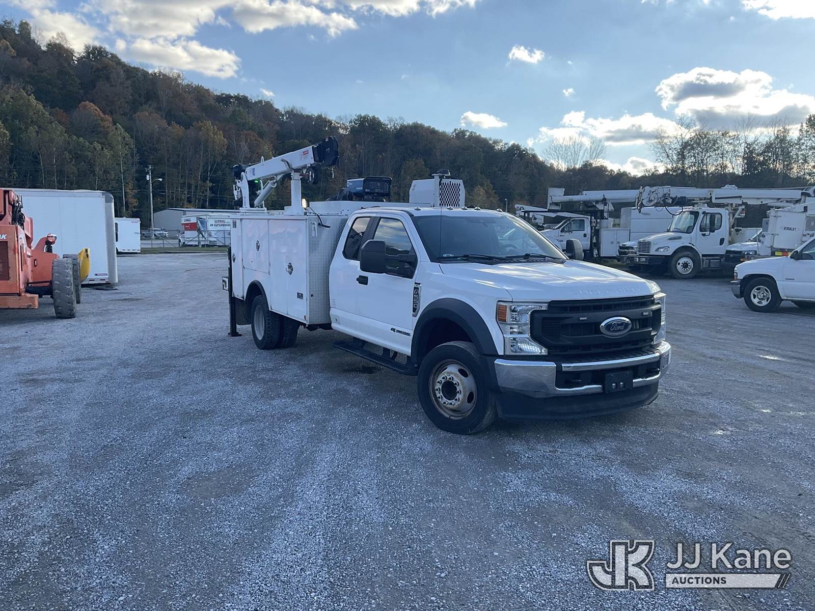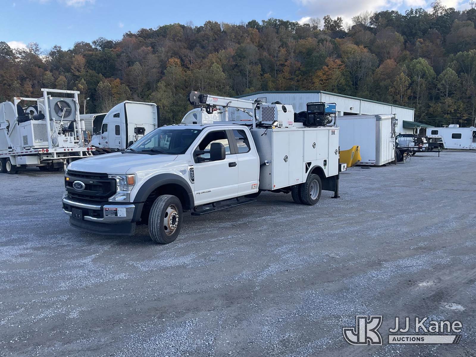 2021 Ford F-550 Extended-Cab Mechanics Service Truck, 6.7L diesel, Auto, A/C, with Auto Crane 6,000 lb material handling crane w/remote, Boss BR440 hyd air compressor & Miller Blue Star welder/generator, (184,041 miles) (Runs & Moves) This is a Titled Item NOTE: This unit is being sold AS IS/WHERE IS via Timed Auction and is located in Kingston Springs, TN. For more information & removal arrangements please contact Nick Keenum @ 256-444-5584. (Buyer is responsible for removal. Assistance by consignor or JJ Kane Auctioneers is not assured.)