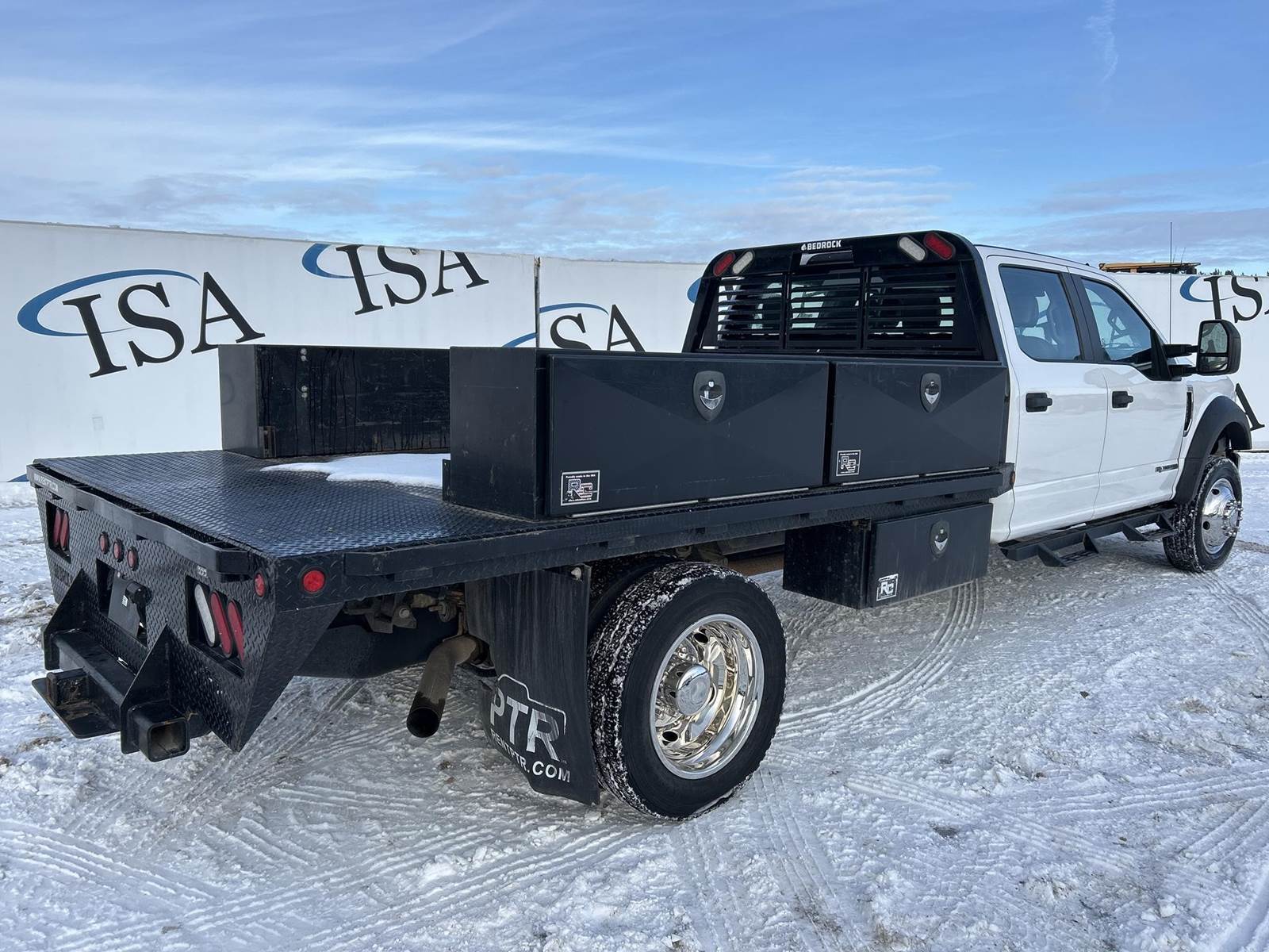 6.7L Power Stroke Turbo Diesel Engine, Automatic Transmission, 19500LB GVWR, 4x4, Bedrock Approx. 11' Flatbed, (6) Cabinets, Gooseneck Receiver Hitch, Crew Cab, Fold-up Center Console, Bluetooth Radio, SWC, Cruise Control, Heat/AC, Power Windows/Locks/Mirrors, Heated Mirrors, Trailer Brake Controls, 110V Outlet, (6) Aux Switches, PowerDrive 3000W Power Inverter, 225/70R19.5 Tires