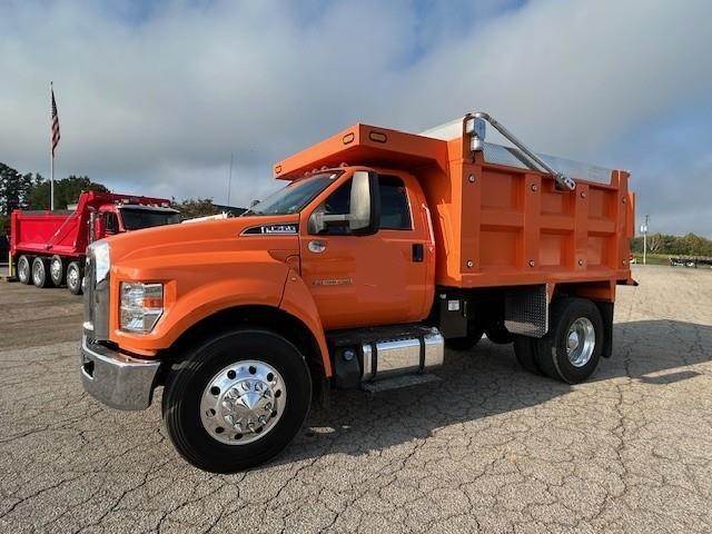 2021 FORD F750 --- Single Axle, 6.7 Power Stroke FORD 330 HP, Automatic, 5.29 Ratio, 12,000 Front Axle, 21,000 Rear Axle, 159" Wheelbase, 13' 3" Bridge, Spring, Air Brake, Differential Lock, 10.6' Steel Samco Dump Body, 48" Sides, Air Gate, 3 Chutes, Electric Tarp, All Aluminum, Engine Heater Plug, Aluminum Fuel Tank, High Level Interior, Cruise Control, Tilt & Telescopic Steering Wheel, AM/FM, Power Windows, P/L, P/S, AC.