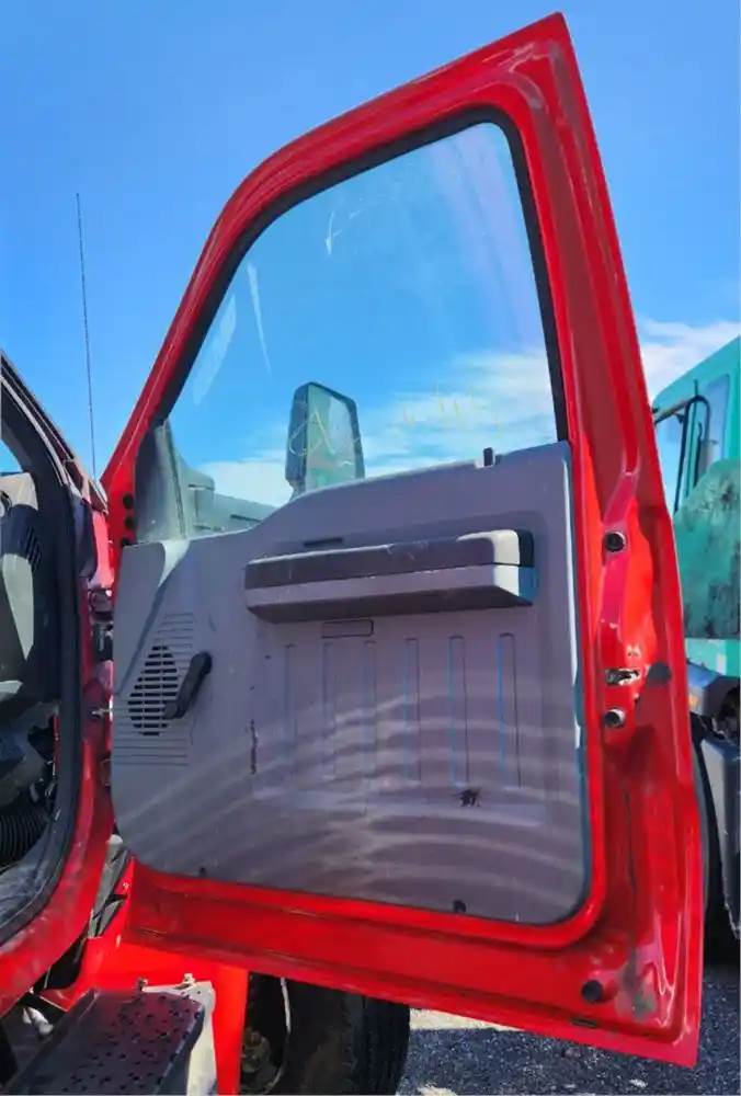 (Used) 2021 Ford F-750, DOOR- Side: Passenger Right Side, Color: Red, Window Controls: Manual, Less Interior Panel, Side View Mirror Sold Separately, Reference images for condition, For more information about this item, give us a call. We ship Worldwide! (CRG HEAVY TRUCK PARTS) 929 W PULASKI HWY ELKTON, MD 21921, Window Type: Manual