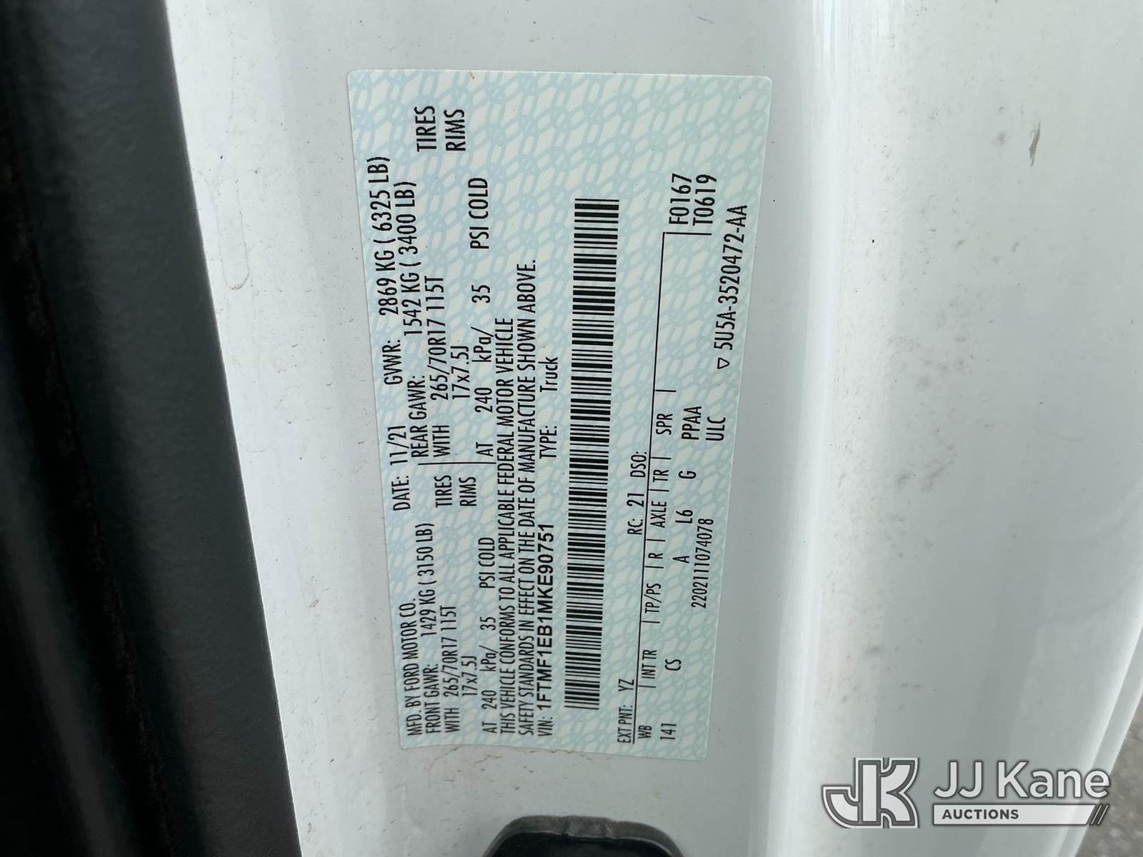2021 Ford F150 Pickup Truck, 6-cyl gas, Auto, A/C, (107,773 miles) (Runs & Moves) This is a Titled Item NOTE: This unit is being sold AS IS/WHERE IS via Timed Auction and is located in China Grove, NC. Inspection & preview days for this unit are the 2 business days prior to the first day of items closing for this auction, item is located at 820 E NC Hwy 152 China Grove, NC 28023 and hours of operations are 8a-4p. For pre-sale questions, please contact Office Staff @ (704) 674-1113. (Buyer is responsible for removal. Assistance by consignor or JJ Kane Auctions is not assured.)