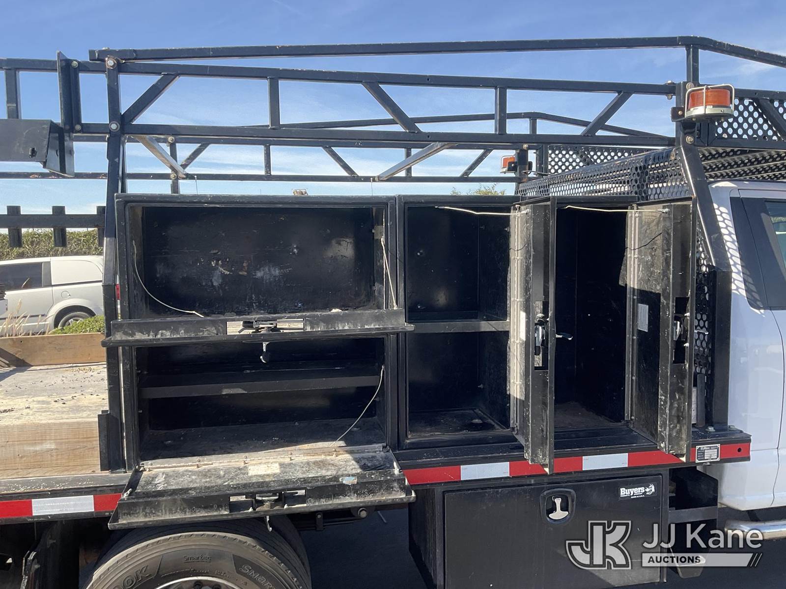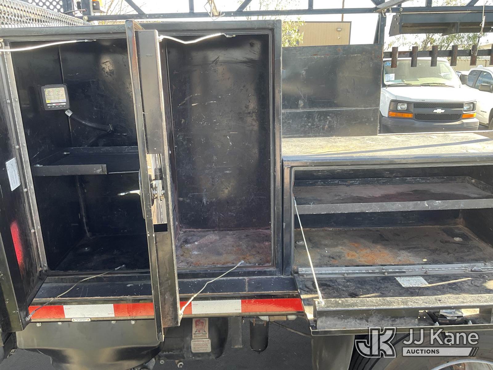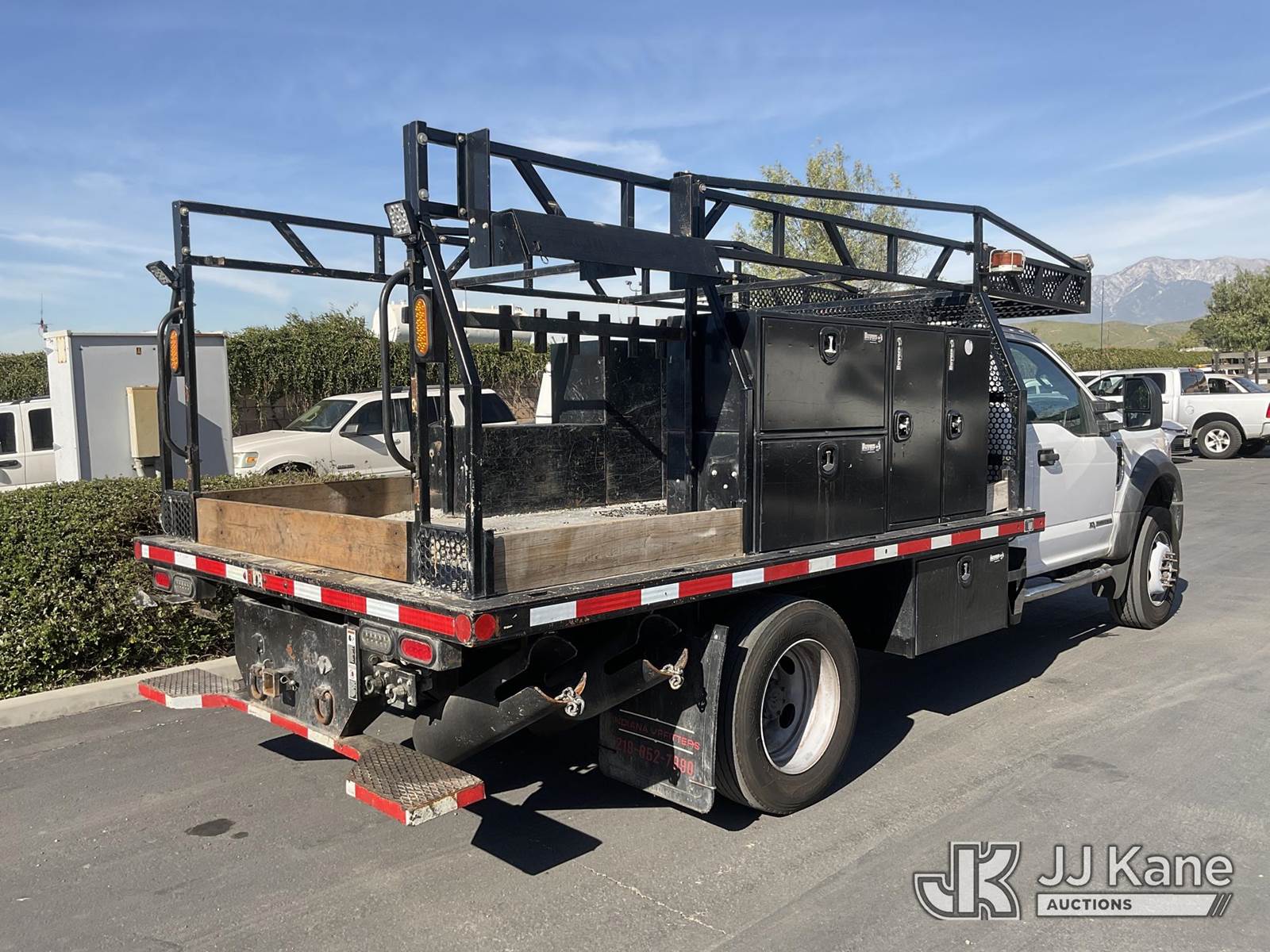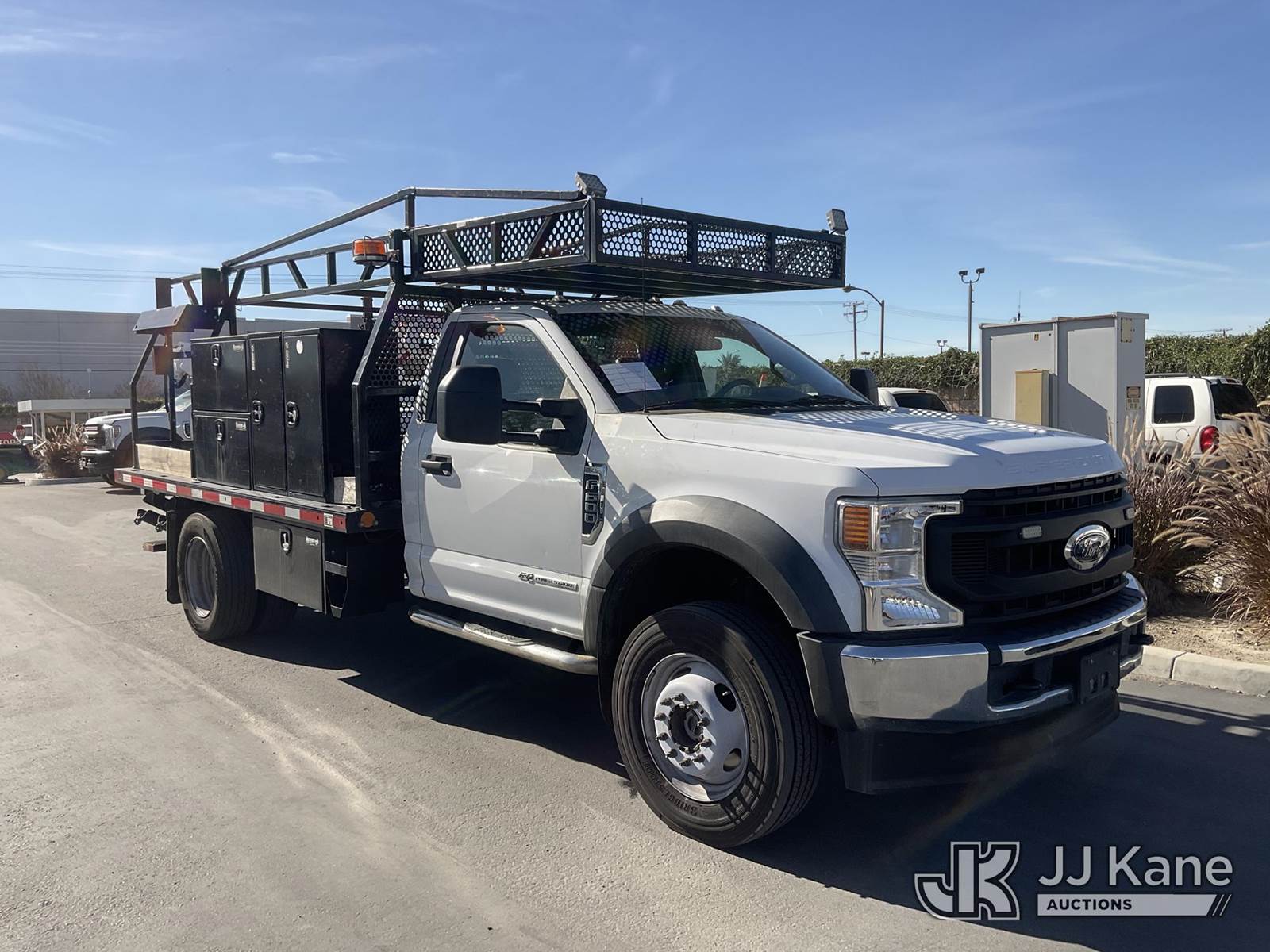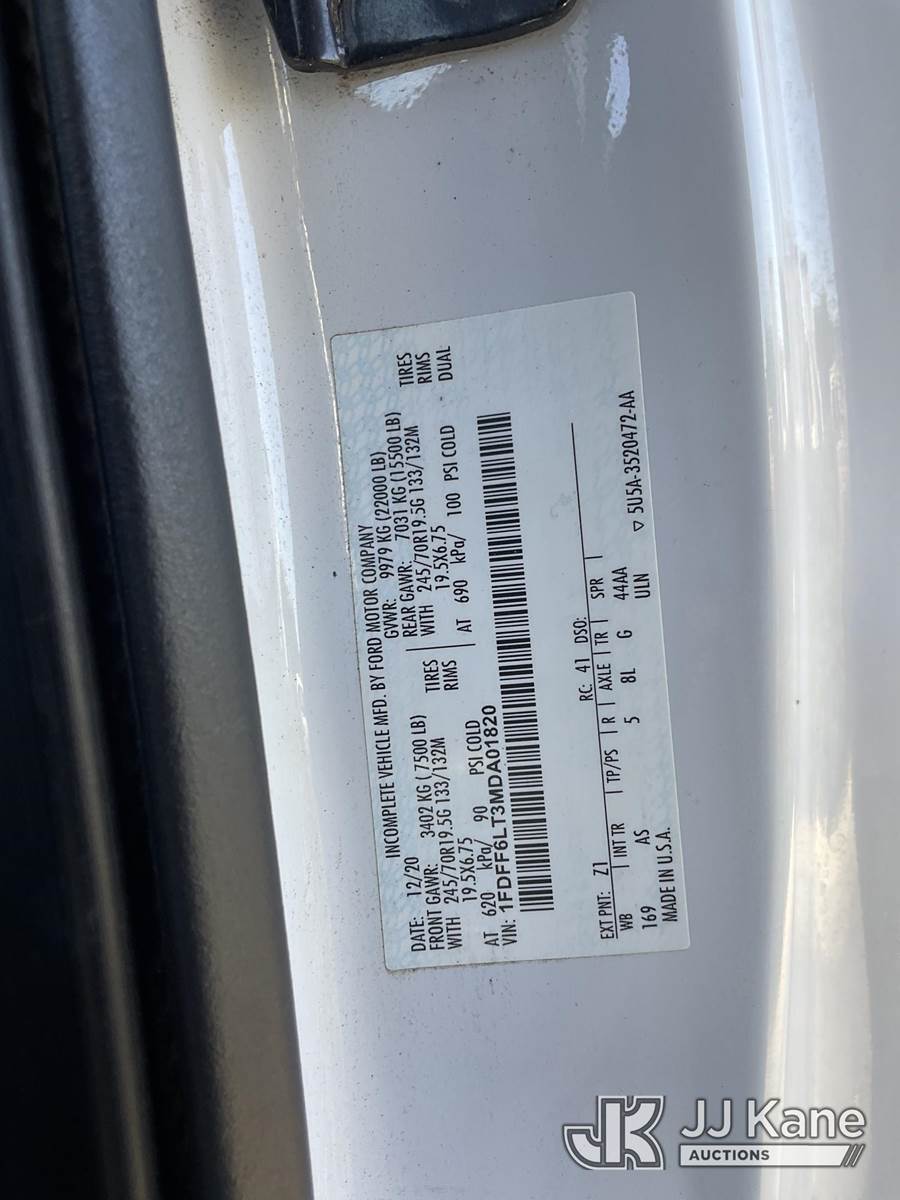 2021 Ford F600 Flatbed/Service Truck, 6.7L V8 DIESEL Auto, 4X4, A/C, with Tow Package, Rack, (45,055 miles) (Runs, Does Not Move) (Engine Light On, Transmission Barely Engages, Low Engine Power, Open Recall, Remedy Not Yet Available, ON YOUR VEHICLE, IT MAY BE POSSIBLE FOR AGED BIODIESEL DEPOSITS TO ACCUMULATE IN THE HIGH PRESSURE FUEL PUMP. THIS MAY RESULT IN EXTENDED CRANKING WITHOUT STARTING WHILE THE VEHICLE IS PARKED, OR LOSS OF MOTIVE POWER WHILE DRIVING.) (Bidding Restricted to Licensed Vehicle Dealers Only), May be subject to ARB Regulations This is a Titled Item NOTE: This unit is being sold AS IS/WHERE IS via Timed Auction and is located in Jurupa Valley, CA. Inspection & preview days for this unit are the 2 business days prior to the first day of items closing for this auction, item is located at 4510 Muth Way Jurupa Valley, CA 92509 and hours of operations are 8a-4p. For pre-sale questions, please contact please contact Office Staff @ (310) 353-7140. Dealer License Number 45696. (Buyer is responsible for removal. Assistance by consignor or JJ Kane Auctions is not assured.)