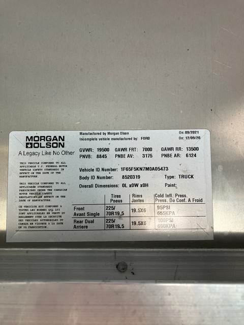 2021 Ford P1000 F59 Step Van, 7.3L 2V Gas Engine, Automatic Transmission, Odometer Reads: 58,816 (Unverified), VIN: 1F65F5KN7M0A05473