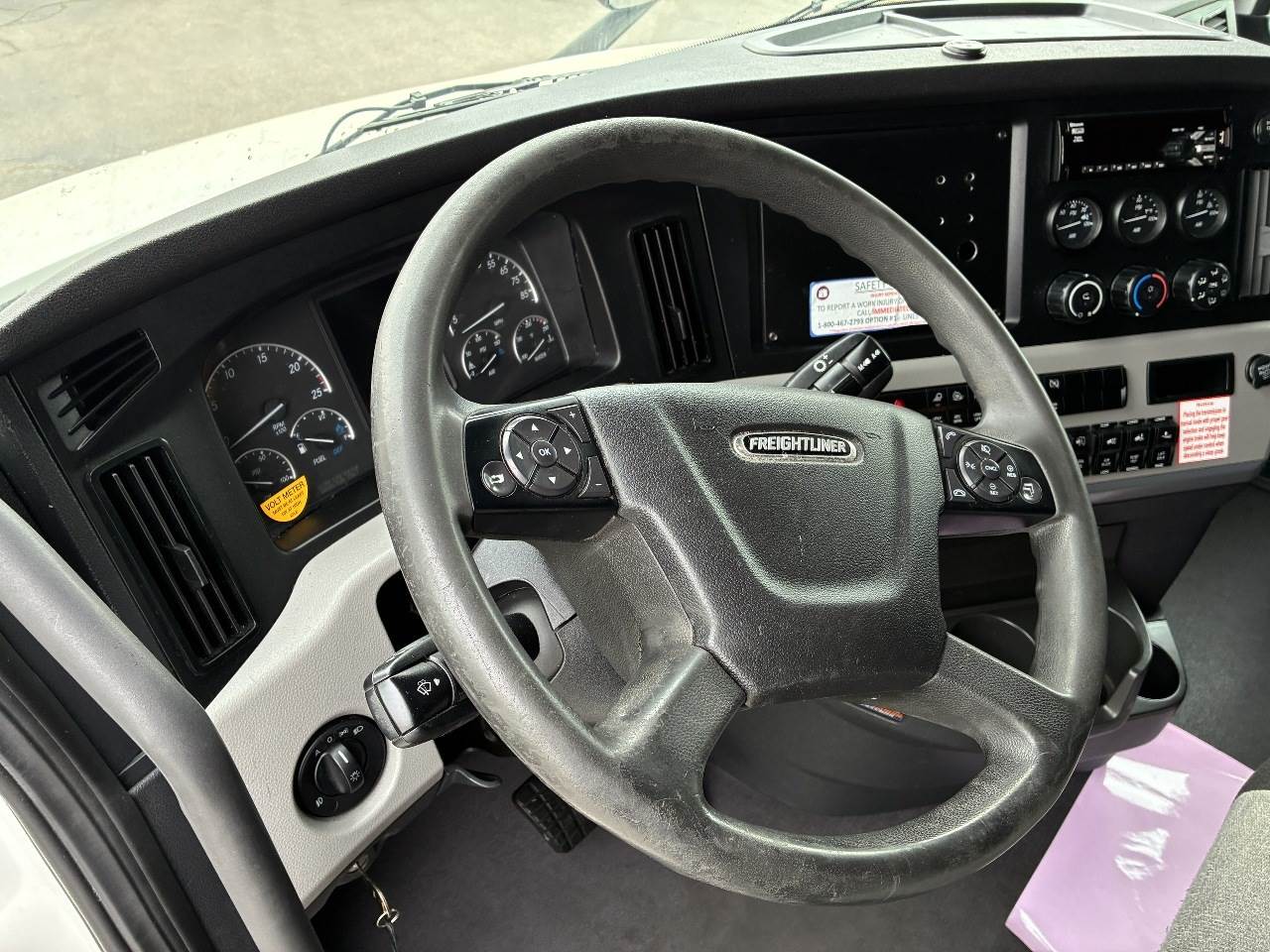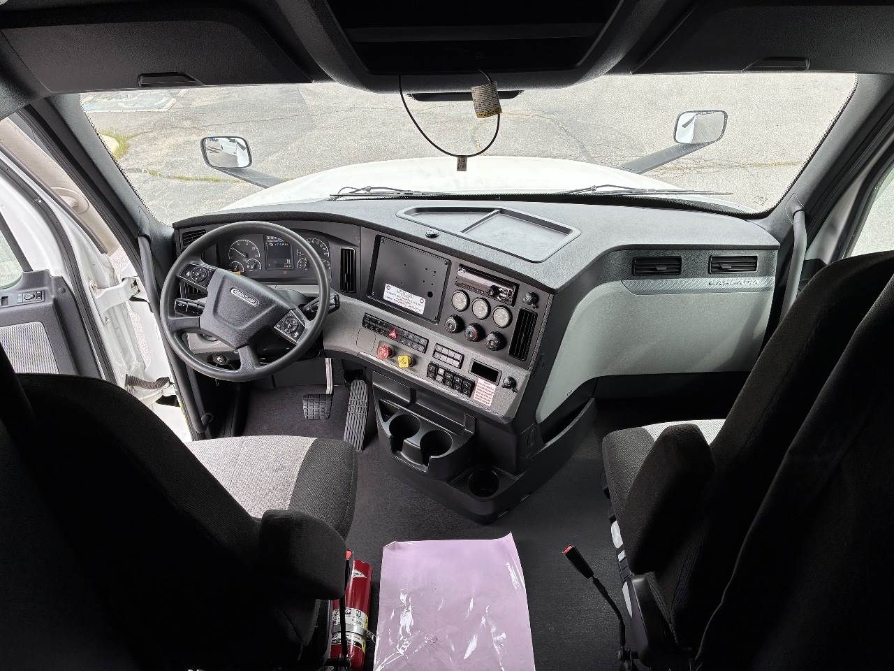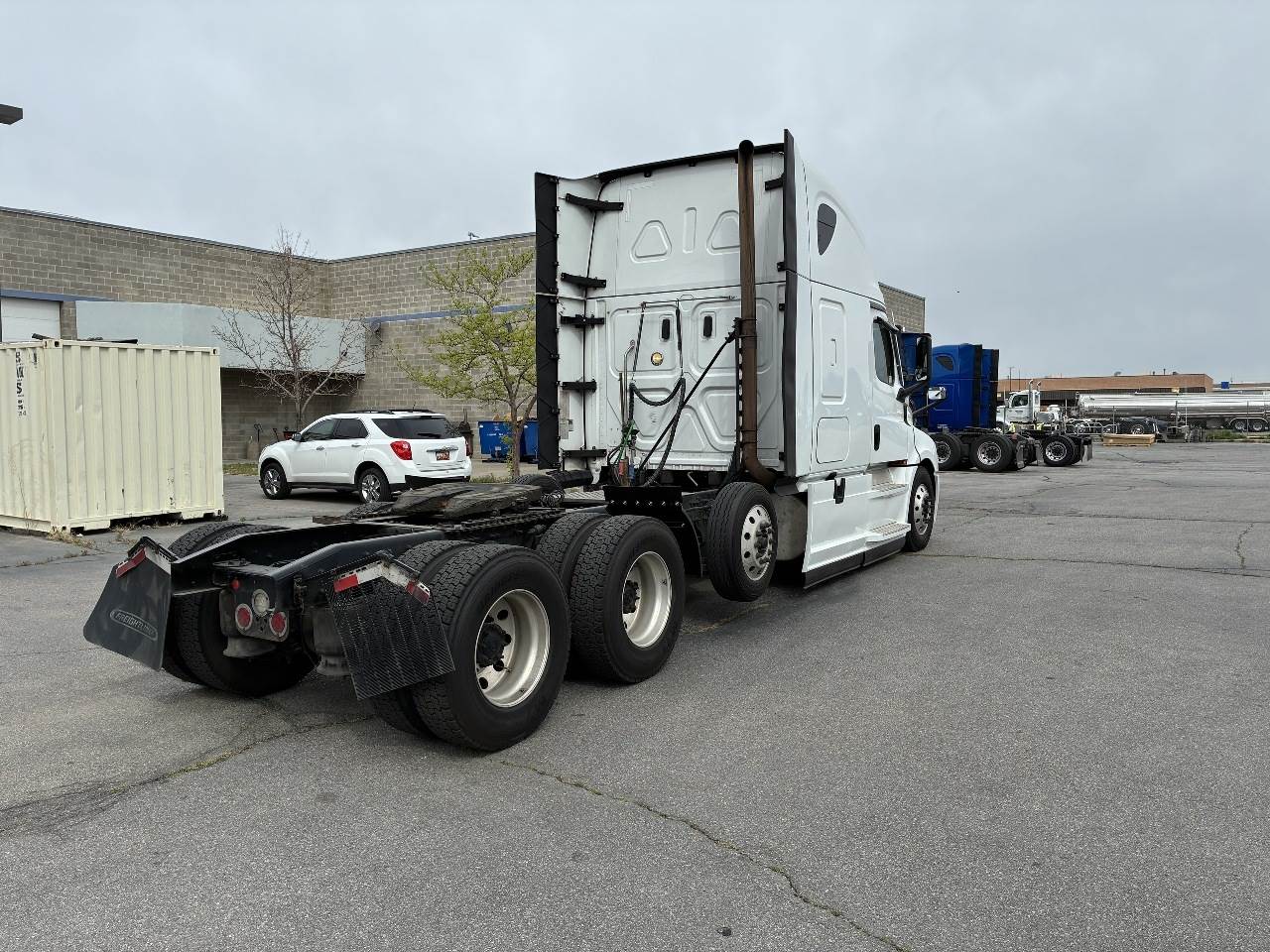 2021 Freightliner Cascadia 126 double bunk sleeper with drop axle - multiple units available, all equipped with a Detroit DD15 14.8 L 455 HP engine with engine brake paired with a Detroit DT12 1750 OH1 HD 12 speed automatic transmission and a Meritor 3.25 rear axle ratio. These trucks feature a tri axle configuration with a pusher drop axle. Steer axle is rated at 13,300 pounds on the front axle and 40,000 pounds on the rear axles with a 64,320 pound GVWR. Each unit includes dual aluminum fuel tanks totaling 200 gallons, a vertical exhaust, a steel frame, air ride suspension, and a 269 inch wheelbase. They are equipped with aluminum wheels and 295 75R22.5 tires along with an air slide fifth wheel. The 72 inch sleeper includes dual bunks, gray and black interior, dual high back seats with an air ride passenger seat, dual power mirrors, operational air conditioning, an AM FM Bluetooth radio, and Espar bunk heaters. Additional equipment includes heated mirrors, full fairings, and collision avoidance. The exterior is white with a painted bumper