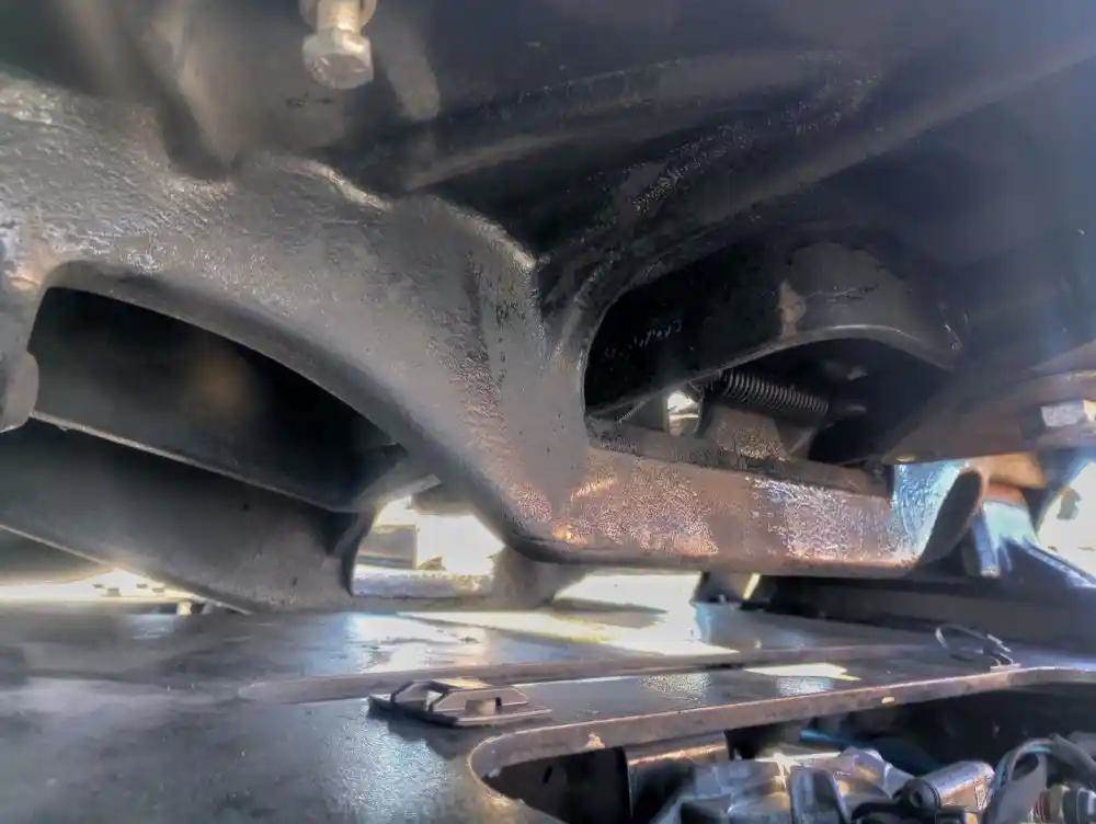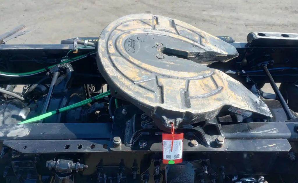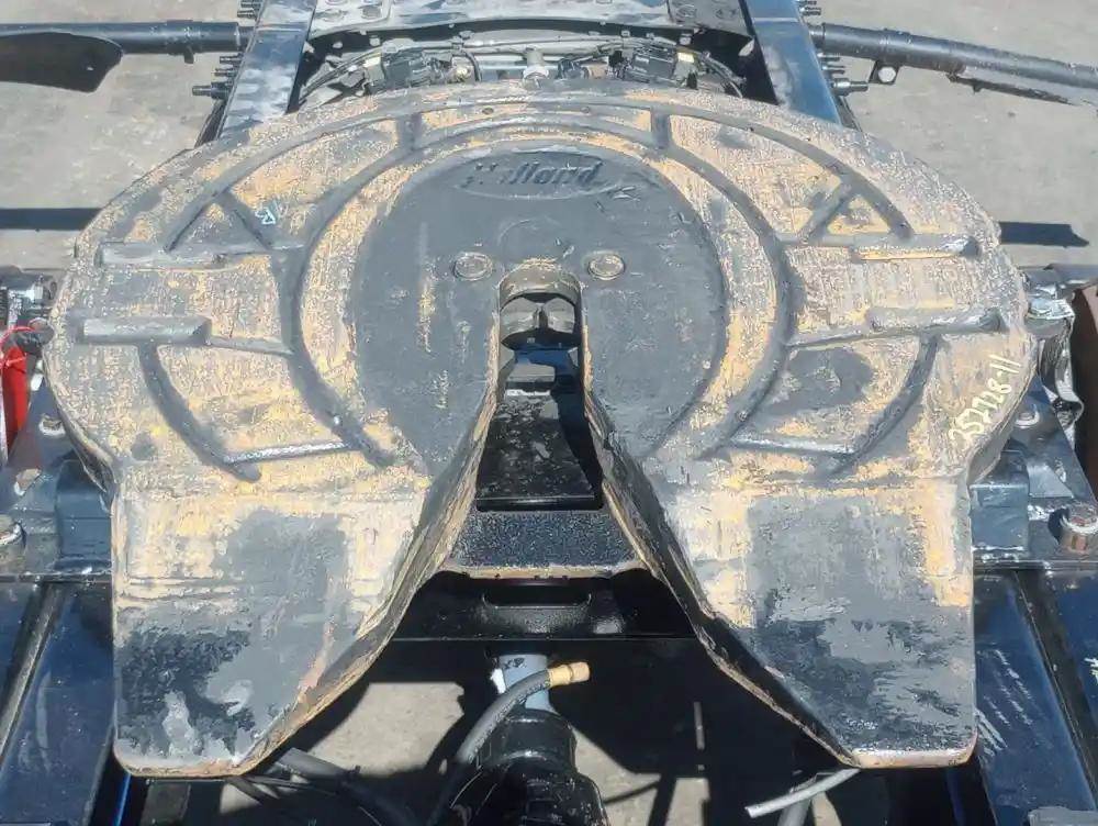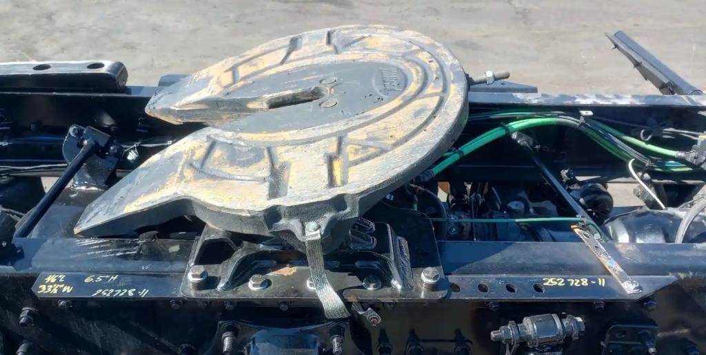 Holland FW35 Stationary Fifth Wheel, 33.5" Frame Width, 46" Rail Length, 6.5" Deck Height, Diver Side Plate Pin Missing, Release Handle Missing.