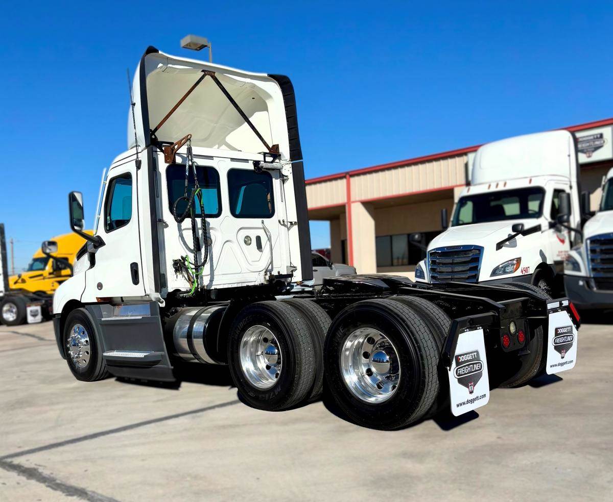 2021 Freightliner Cascadia 126 Day Cab Powered by a DD13 Engine Paired with a DT12-12 Speed Automatic Transmission for Optimum Fuel Efficiency. 130 Gallon Fuel Diesel Fuel Tank. Power Windows Power Locks & Mirrors. Gray Cloth Interior with a Smart Wheel and Parking Assist.