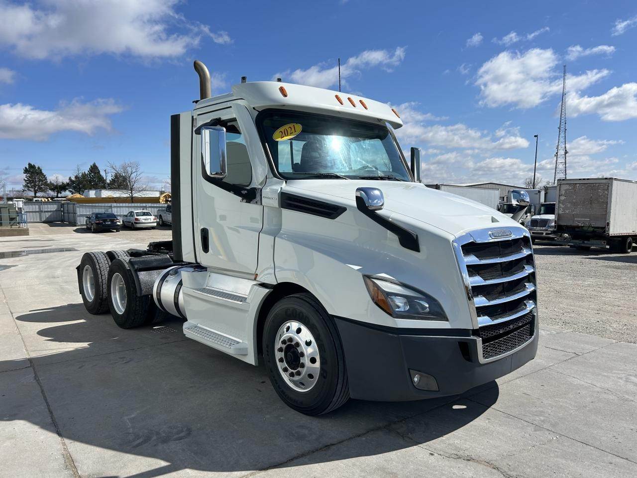 2021 Freightliner Cascadia 126 Tandem Axle Day Cab, Detroit DD15 455HP Engine, DT12 12 Spd Detroit DT12-OC Transmission, Air Ride Suspension, 52,000 GVW, 12,000# MFS-12 Front Axle, 40,000# Meritor MD2014X Rear Axle, 2.85 Ratio, 180" Wheelbase (CA/CT-103" EOF-160"), 295/75R22.5 Wheels, (Front: 14/32 - Rear: 16/32), Aluminum Wheels, Aluminum 80 / 80 Fuel Tanks, Air Brakes 50%, AC, Cruise, Engine Brake, 5th-Wheel Air-Slide, Power Locks, Power Windows, Power Steering, Tilting & Telescoping, Air Ride/Fixed Seats, Heted/Power Mirrors