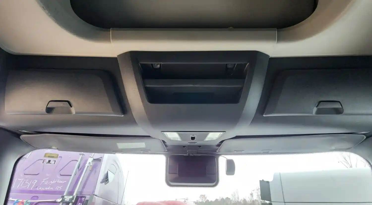 (Used) 2021 Freightliner Cascadia 126, OVERHEAD STORAGE CONSOLE- Color: Black, Material: Plastic, Less Sun Visors Sold Separately, Reference images for condition, For more information about this item, give us a call. We ship Worldwide! (CRG HEAVY TRUCK PARTS) 929 W PULASKI HWY ELKTON, MD 21921, Material: Plastic
