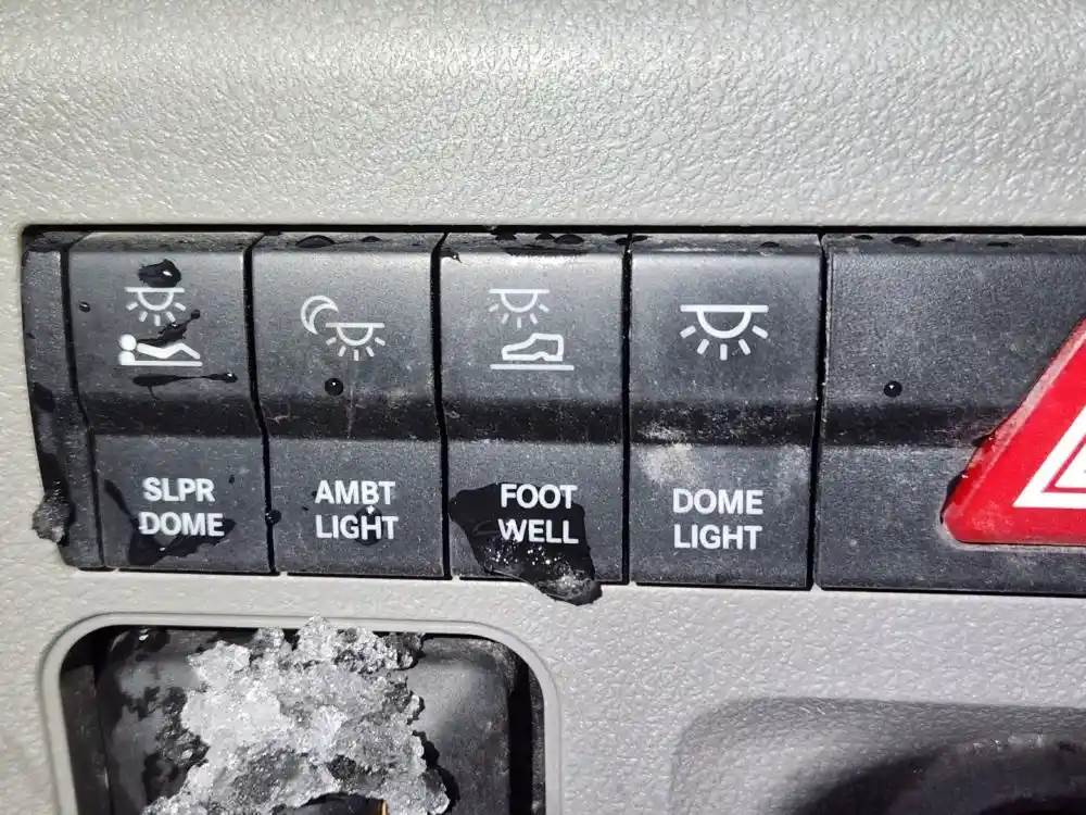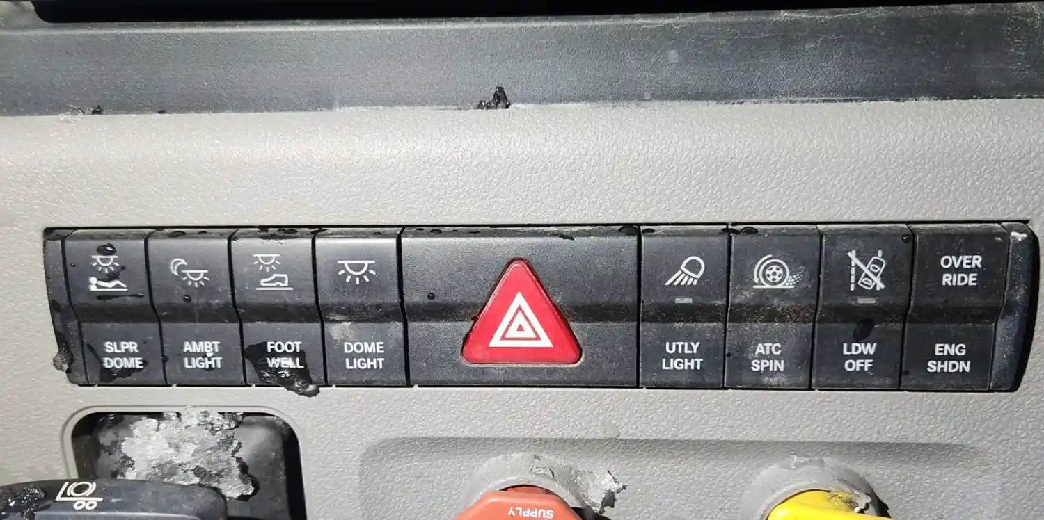 (Used) 2021 Freightliner Cascadia 126, MISCELLANEOUS DASH SWITCHES- Controls:Slpr Dome, Ambt light, Foot Well, Dome Light, Utly light, Atc Spin, Ldw Off, Over Ride-Eng Shdn, For more information about this item, give us a call. We ship Worldwide! (CRG HEAVY TRUCK PARTS) 929 W PULASKI HWY ELKTON, MD 21921, Material: Plastic