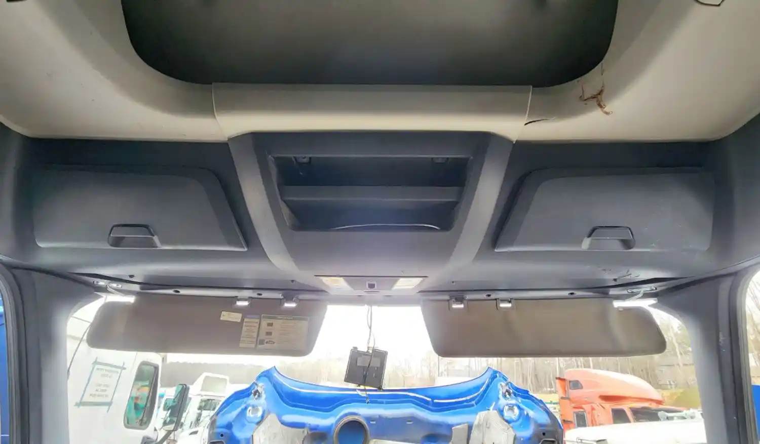 (Used) 2021 Freightliner Cascadia 126, OVERHEAD STORAGE CONSOLE- Color: Black, Material: Plastic, Less Sun Visors Sold Separately, Has Some scratches!! Reference images for condition, For more information about this item, give us a call. We ship Worldwide! (CRG HEAVY TRUCK PARTS) 929 W PULASKI HWY ELKTON, MD 21921, Material: Plastic