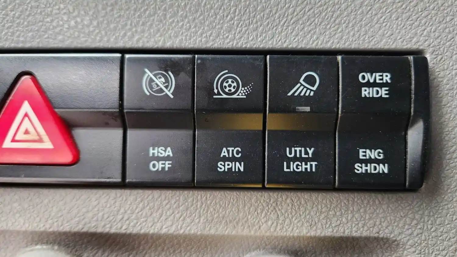 (Used) 2021 Freightliner Cascadia 126, MISCELLANEOUS DASH SWITCHES- Controls: Sleeper Dome, Ambt Light, Light Test, Dome Light, Hazard Lights, HSA Off, Atc Spin, Utly Light, Override Eng Shdn, Material: Plastic, Reference images for condition, For more information about this item, give us a call. We ship Worldwide! (CRG HEAVY TRUCK PARTS) 929 W PULASKI HWY ELKTON, MD 21921, Material: Plastic