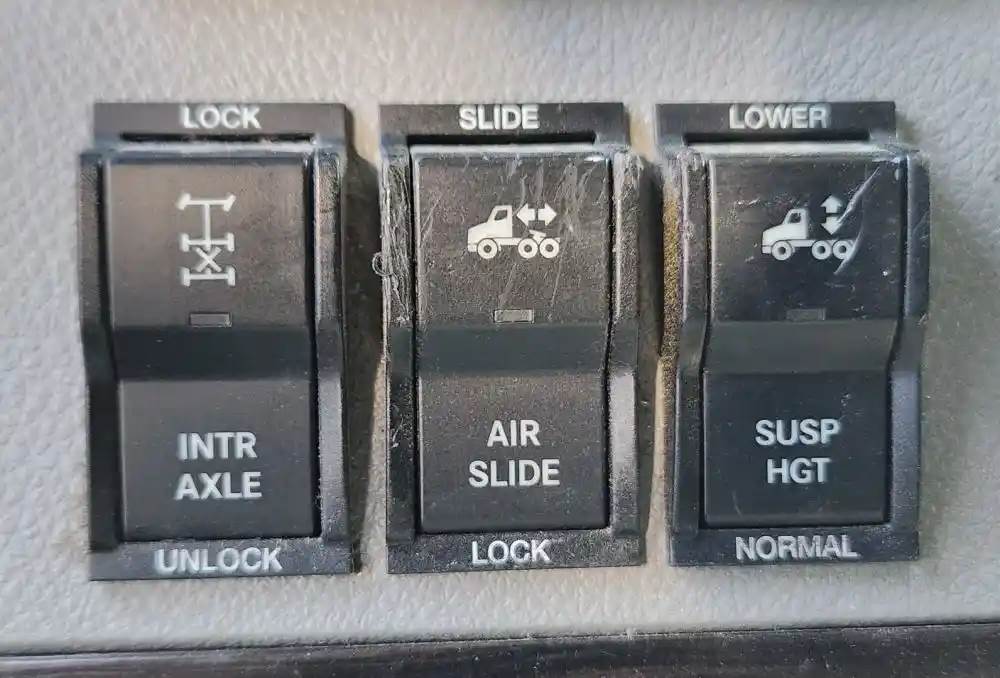 (Used) 2021 Freightliner Cascadia 126, MISCELLANEOUS DASH SWITCHES- Controls: Inter Axle Diff Lock, Air Slide, Susp Hgt, Material: Plastic, Reference images for condition, For more information about this item, give us a call. We ship Worldwide! (CRG HEAVY TRUCK PARTS) 929 W PULASKI HWY ELKTON, MD 21921, Material: Plastic
