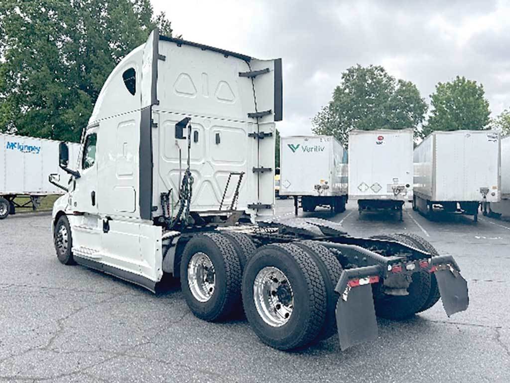 2021 FREIGHTLINER Cascadia126 Conventional, 72 Inch Raised Roof Sleeper, Upper Bunk, Detroit DD15 Engine, 455 H.P., Engine Brake, DT12 Transmission, (Automatic), 40,000 Lb. Rear Ends, 3.08 Ratio, Air Ride Suspension, Hydraulic Power Steering, Air Conditioned, Dual Aluminum Fuel Tanks, Horizontal Exhaust, Roof And Side Air Fairings, Cab Extenders, Quarter Fenders, Custom Interior, Tilt And Telescoping Steering Wheel, Cruise Control, Power Windows, Collision Mitigation System, Air Slide 5th, 229 Inch Wheel Base, Disc Brakes, 11R22.5 Aluminum Disc Wheels.