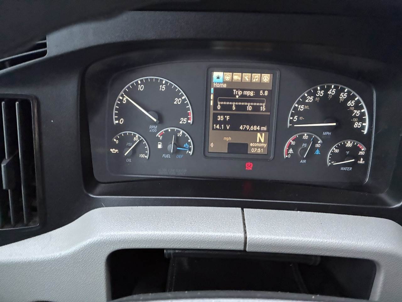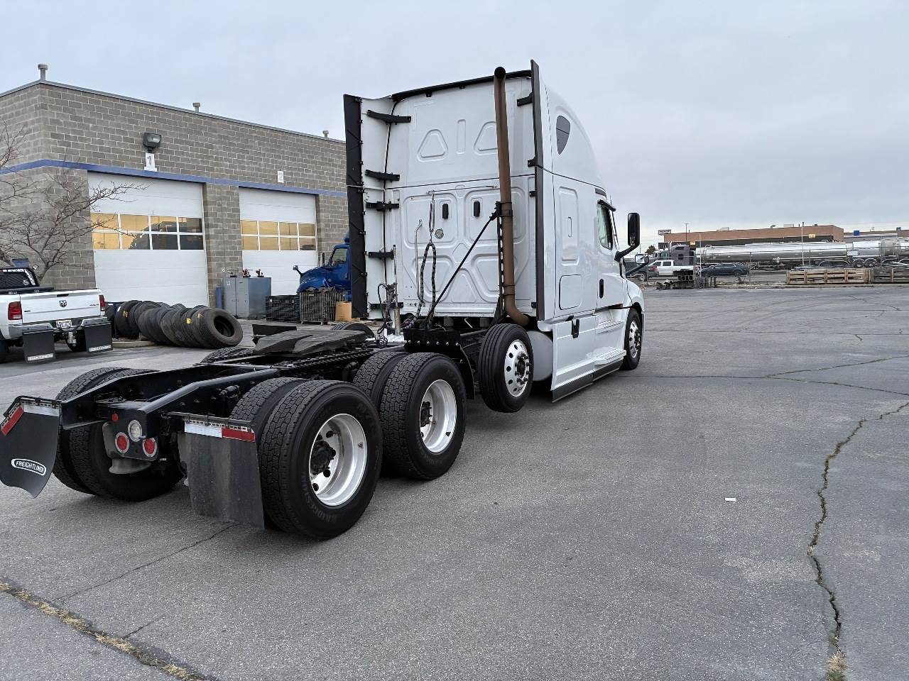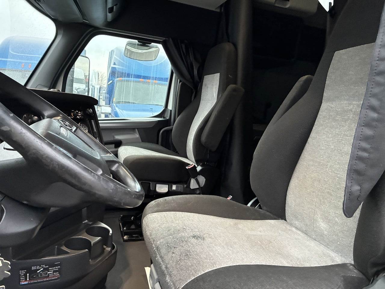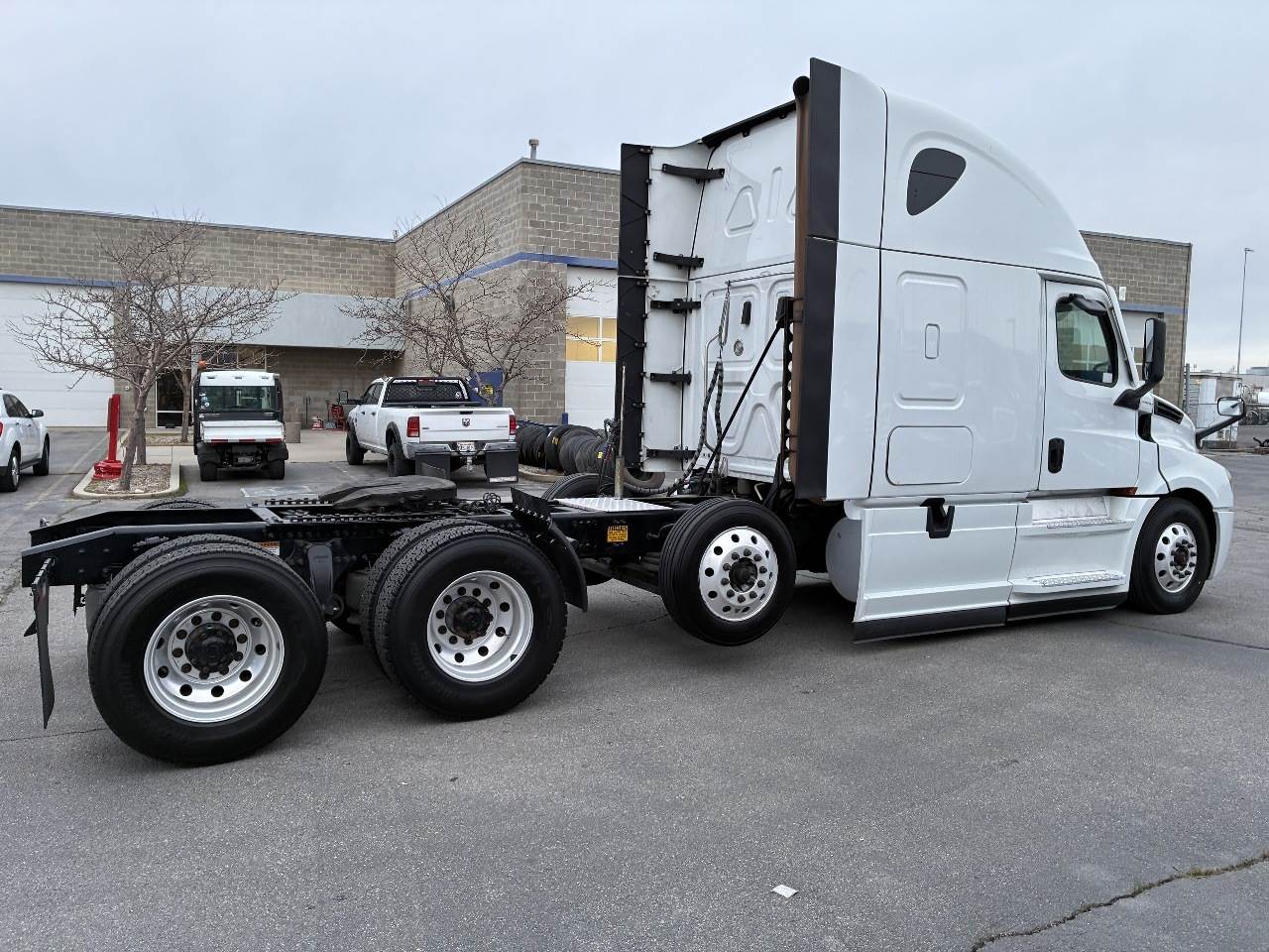 West Valley City, UT - This 2021 Freightliner Cascadia 126 is equipped with a Detroit DD15 14.8 L 455 HP engine with engine brake and shows 479,684 miles along with 14,919 engine hours. It has a Detroit DT12 1750 OH 12 speed automatic transmission, a Meritor 3.25 rear axle ratio, and a tri axle configuration rated at 13,300 pounds on the front axle and 51,020 pounds on the rear axle with a 64,320 pound GVWR. The truck includes dual aluminum fuel tanks with a total capacity of 200 gallons, a horizontal exhaust, a steel frame, air ride suspension, and a 269 inch wheelbase. It runs on aluminum wheels with 11R22.5 tires and is equipped with an air slide fifth wheel. The 72 inch sleeper includes dual bunks, black and gray interior, dual high back seats with an air ride passenger seat, dual power mirrors, operational air conditioning, and an AM FM Bluetooth radio. Additional features include heated mirrors, full fairings, and collision avoidance.