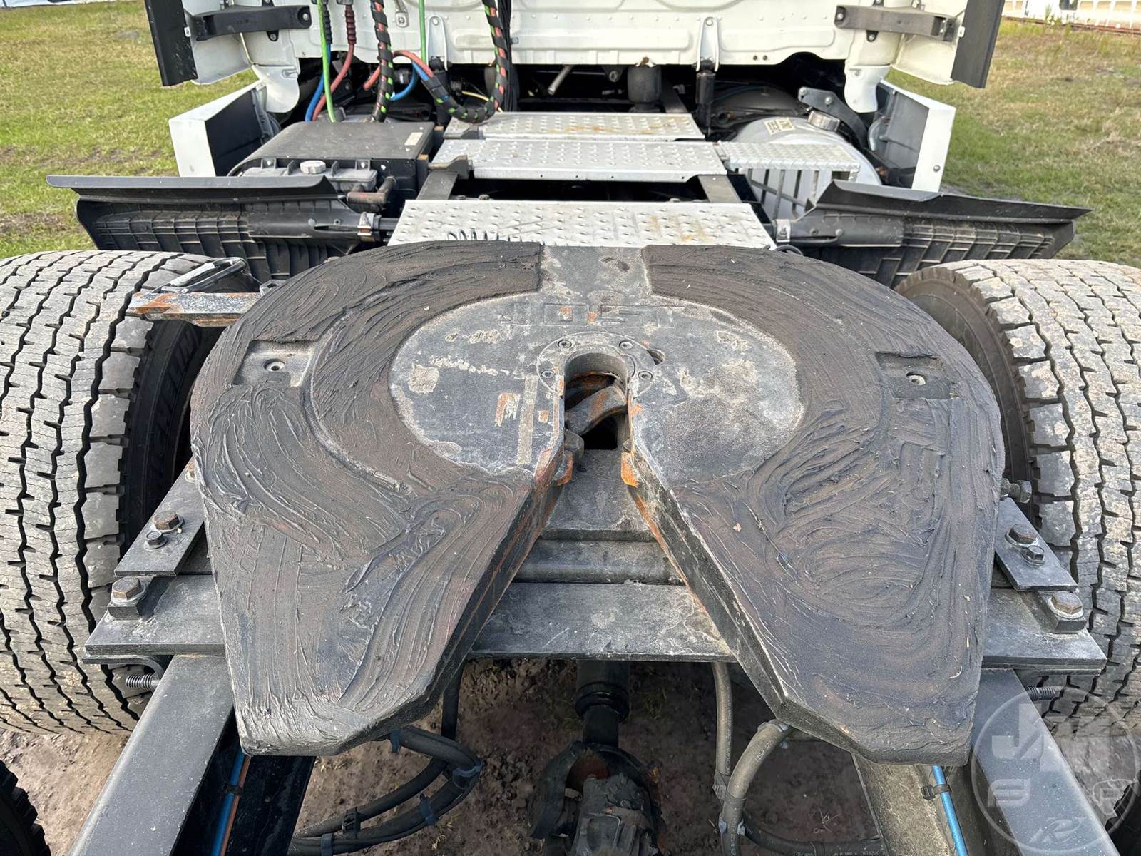 TANDEM AXLE TRUCK TRACTOR, DETROIT, AUTO SHIFT, DISC, 237 " WB, C/A: 68, 12.5K FRONTS, 40K REARS, 52500 GVWR, A/C, DUAL AIR SEATS, CRUISE CONTROL, POWER WINDOWS, POWER DOOR LOCKS, POWER MIRRORS, DIFF LOCK, SLEEPER SIZE 60", UPPER BUNK, REFRIGERATOR, DISC WHEELS, 11R22.5 TIRES, HOUR METER READS: 5960, ODOMETER READS: 262118