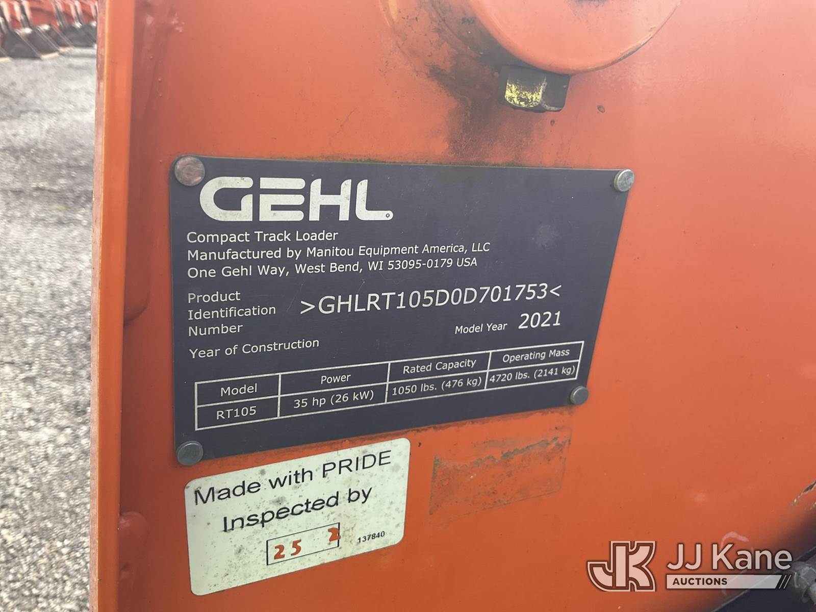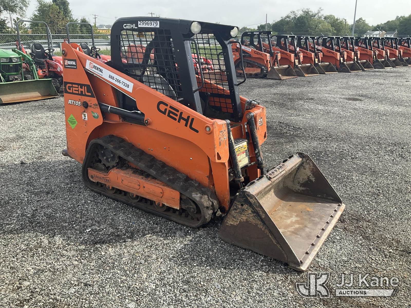 2021 Gehl RT105 Crawler Skid Steer Loader, s/n GHLRT105D0D701753, Yanmar Hydraulic Drive, diesel, with Rubber Tracks, QD Loader Bucket, Aux. Hyd. Outlet & ROPS, (Runs) (Reads 697 hours) NOTE: This unit is being sold AS IS/WHERE IS via Timed Auction and is located in Plymouth Meeting, PA. Inspection & preview days for this unit are the 2 business days prior to the first day of items closing for this auction, item is located at 1402 Conshohocken Rd Plymouth Meeting, PA 19462 and hours of operations are 8a-4p. For pre-sale questions, please contact Bruce Thomas @ (267)-887--0392 or bruce.thomas.jr@jjkane.com. (Buyer is responsible for removal. Assistance by consignor or JJ Kane Auctioneers is not assured.)